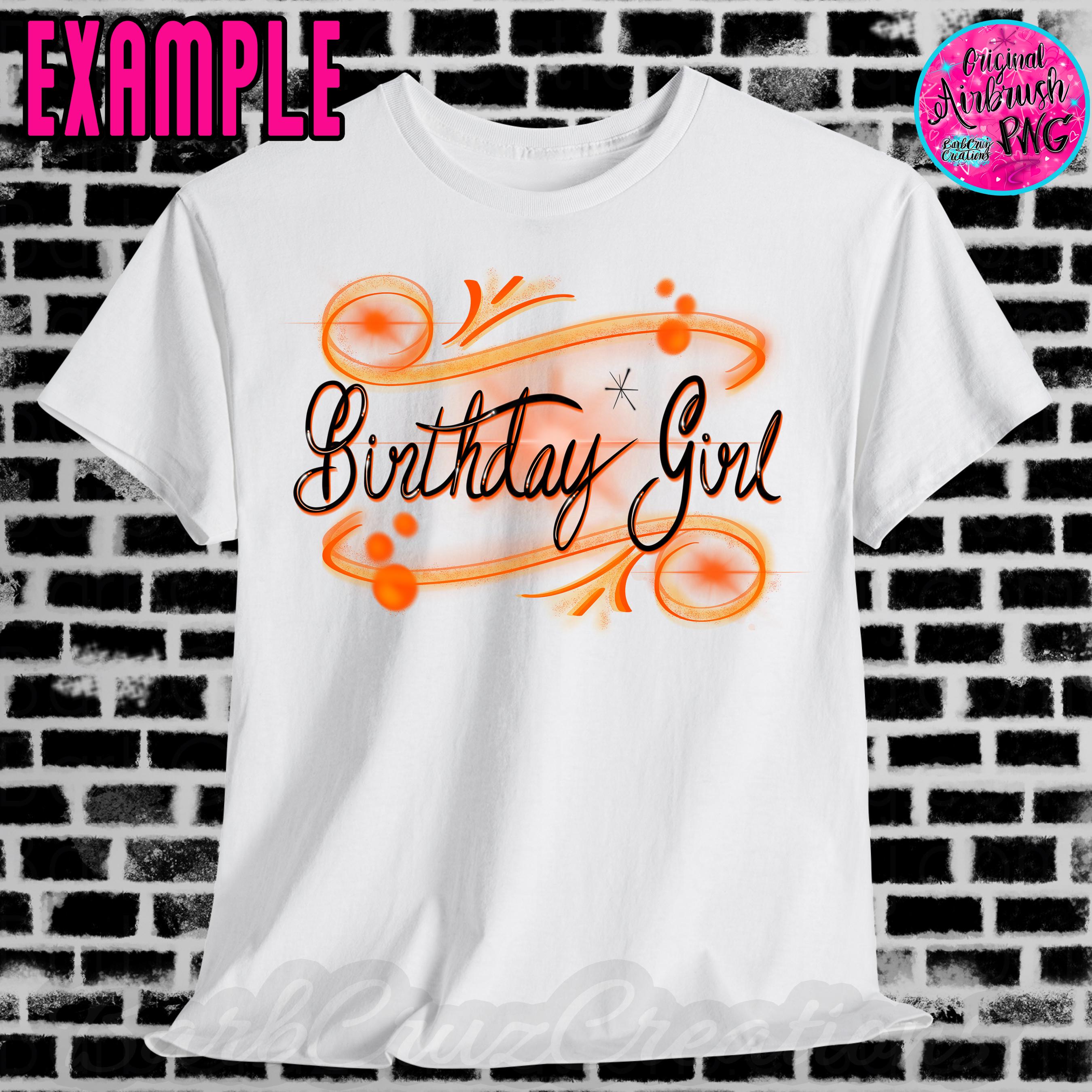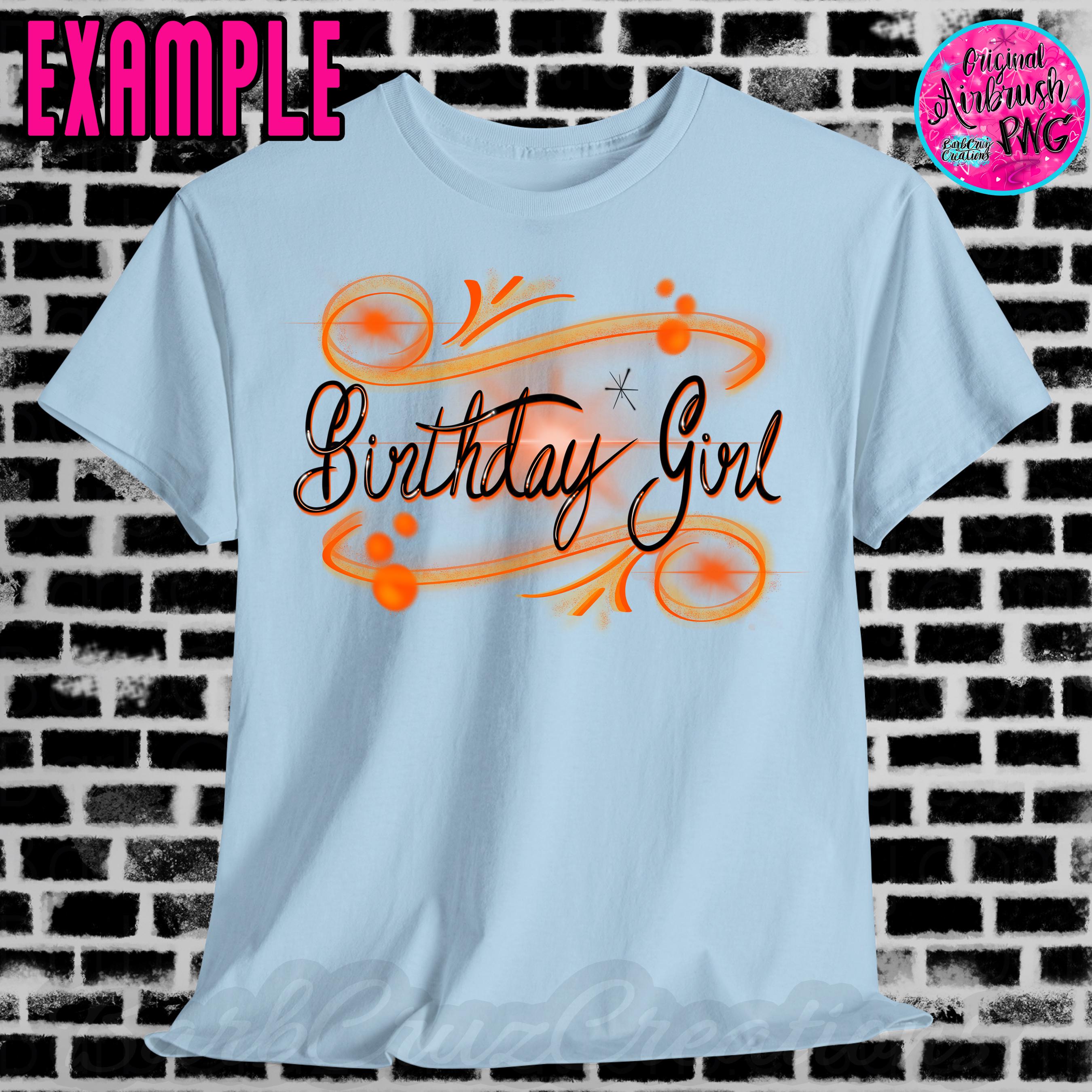 airbrush, orange, black, birthday, girl, birthday png, sublimation designs, digital image, digital downloads, clipart, birthday shirt png