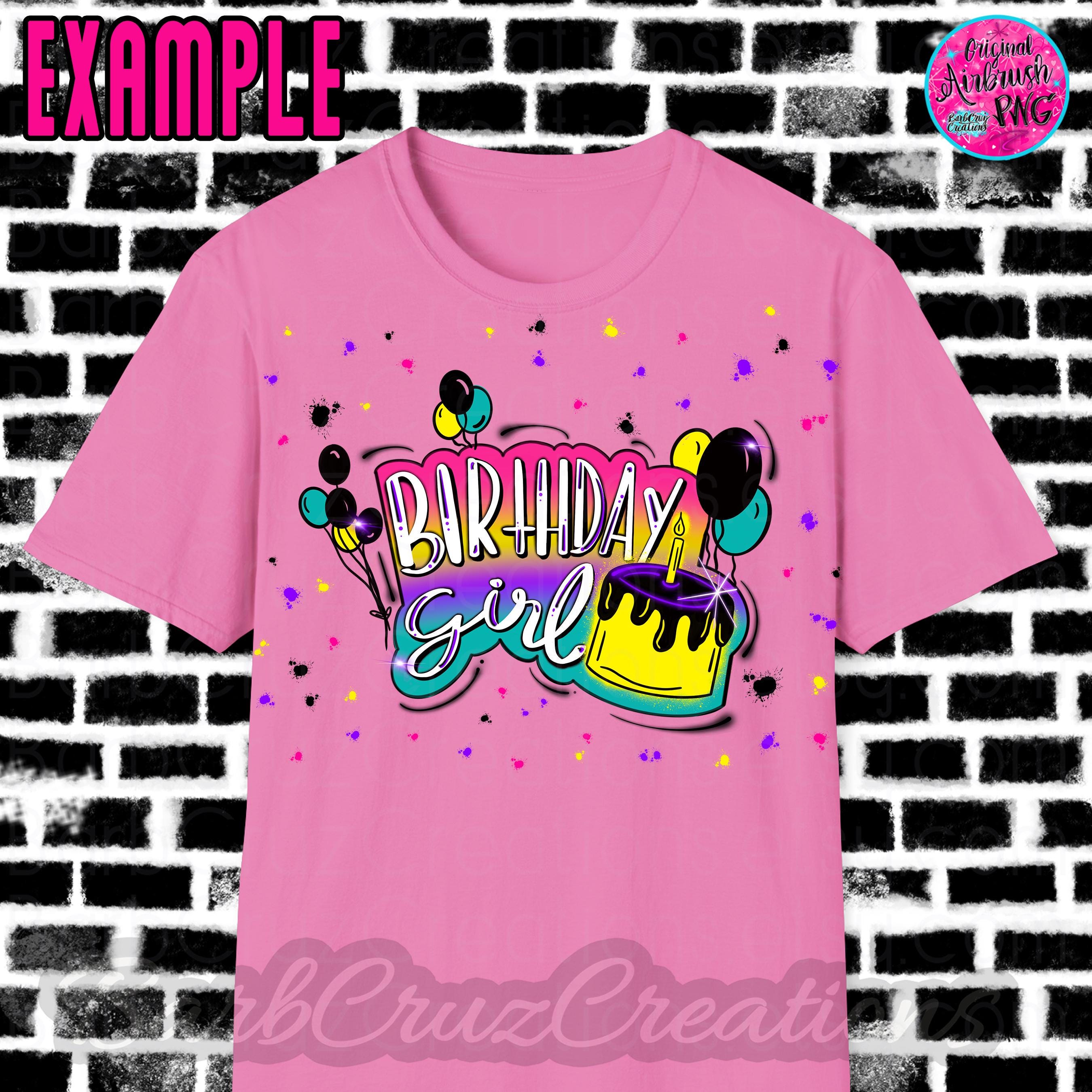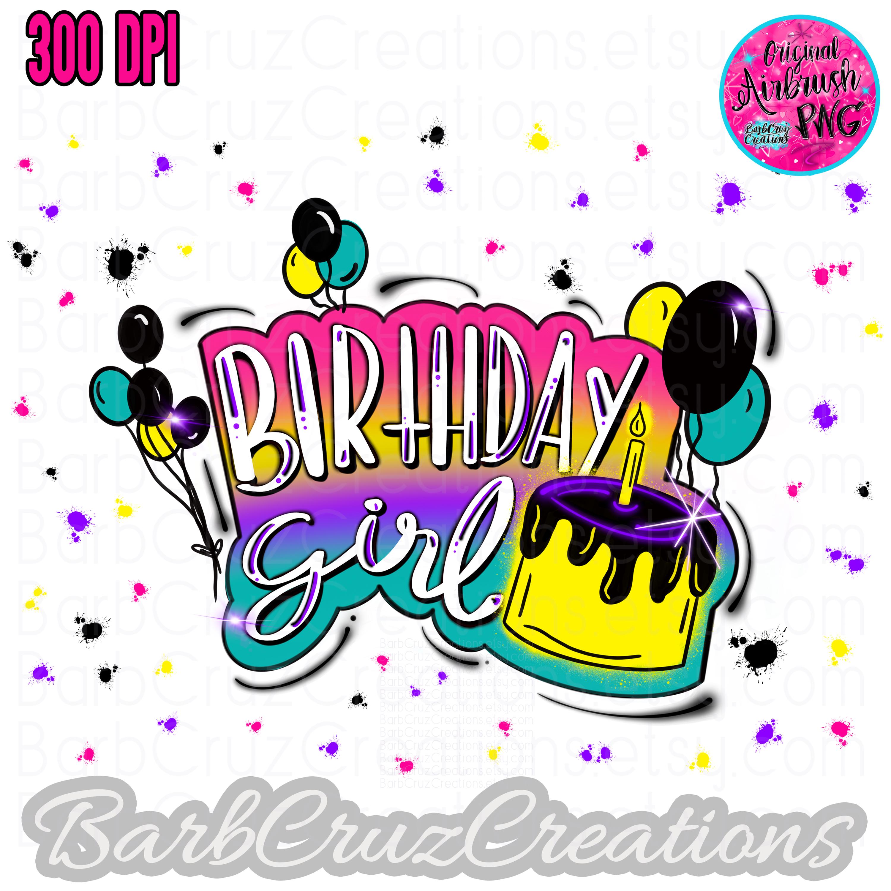 airbrush png, Birthday Girl, Colorful, Birthday Party Shirt Design, Sublimation Design, clipart, celebration, bday design for invitation