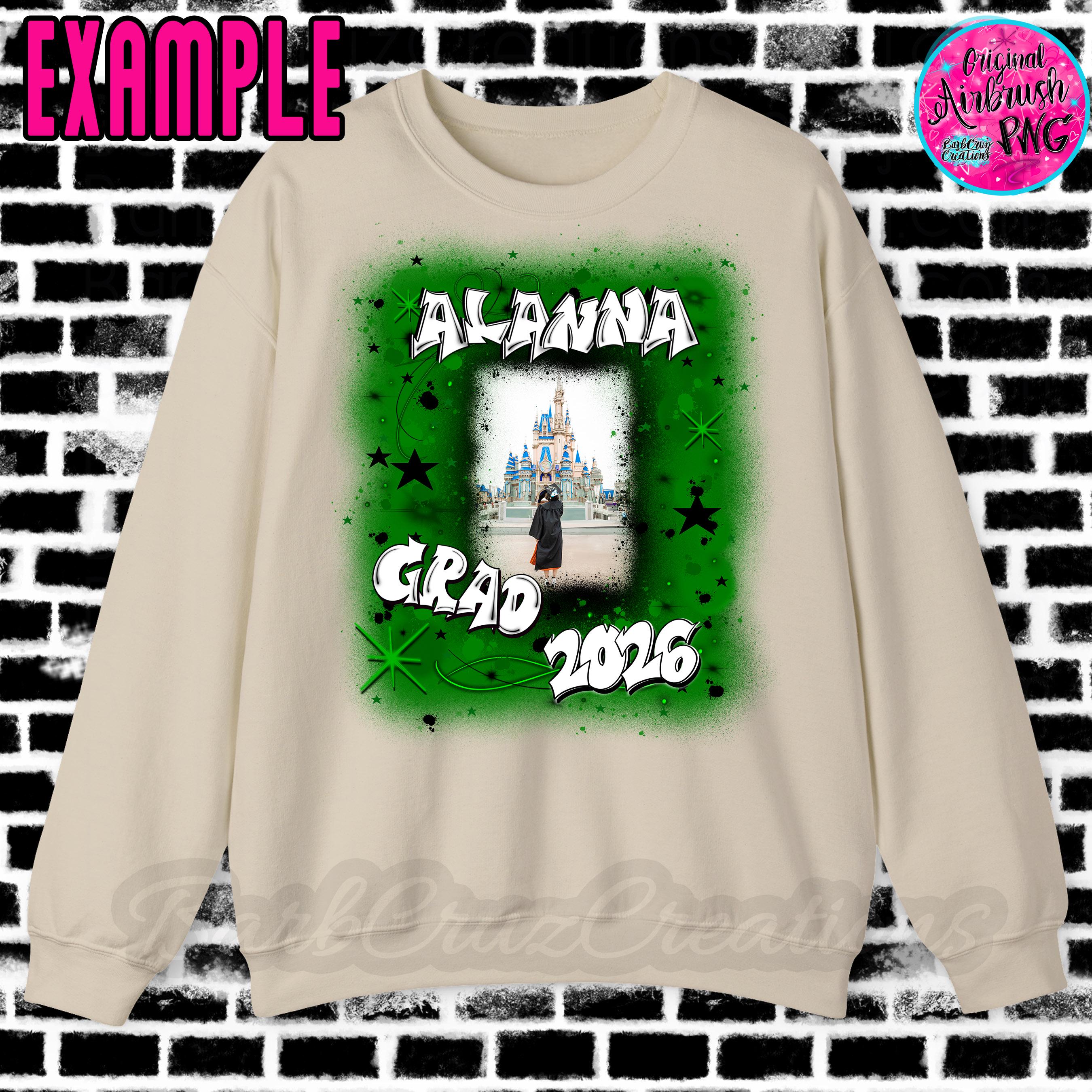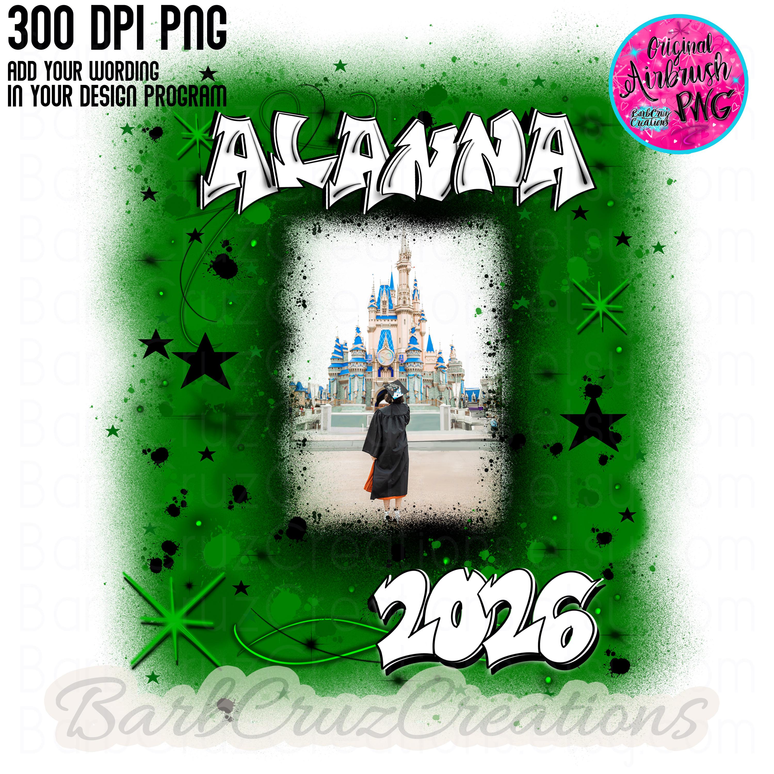 Airbrush png, Senior, Grad, 2026, 2025, 2024, 2023, Graduate, Digital Airbrush, Sublimation, Digital Download, Graffiti Art, Green, Frame