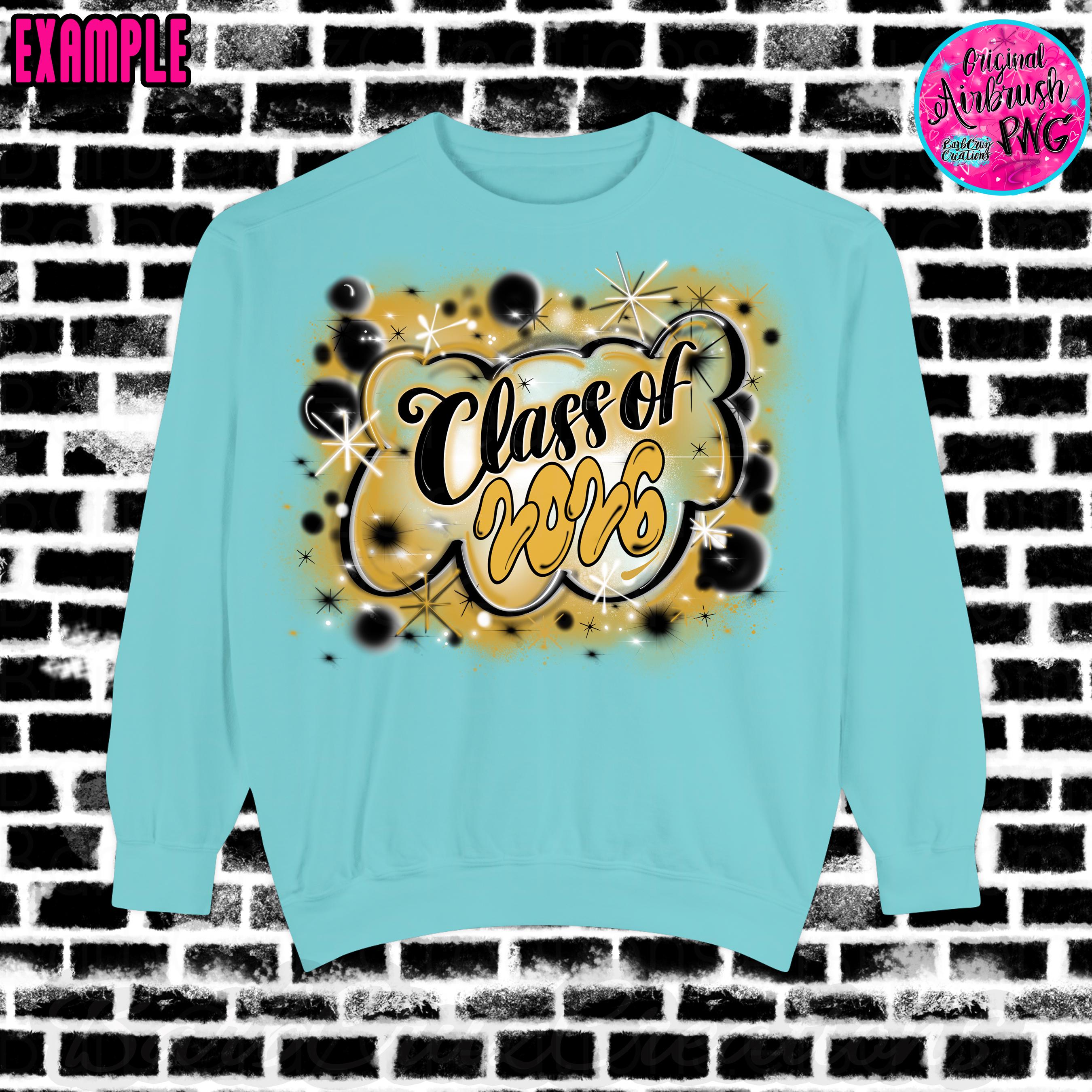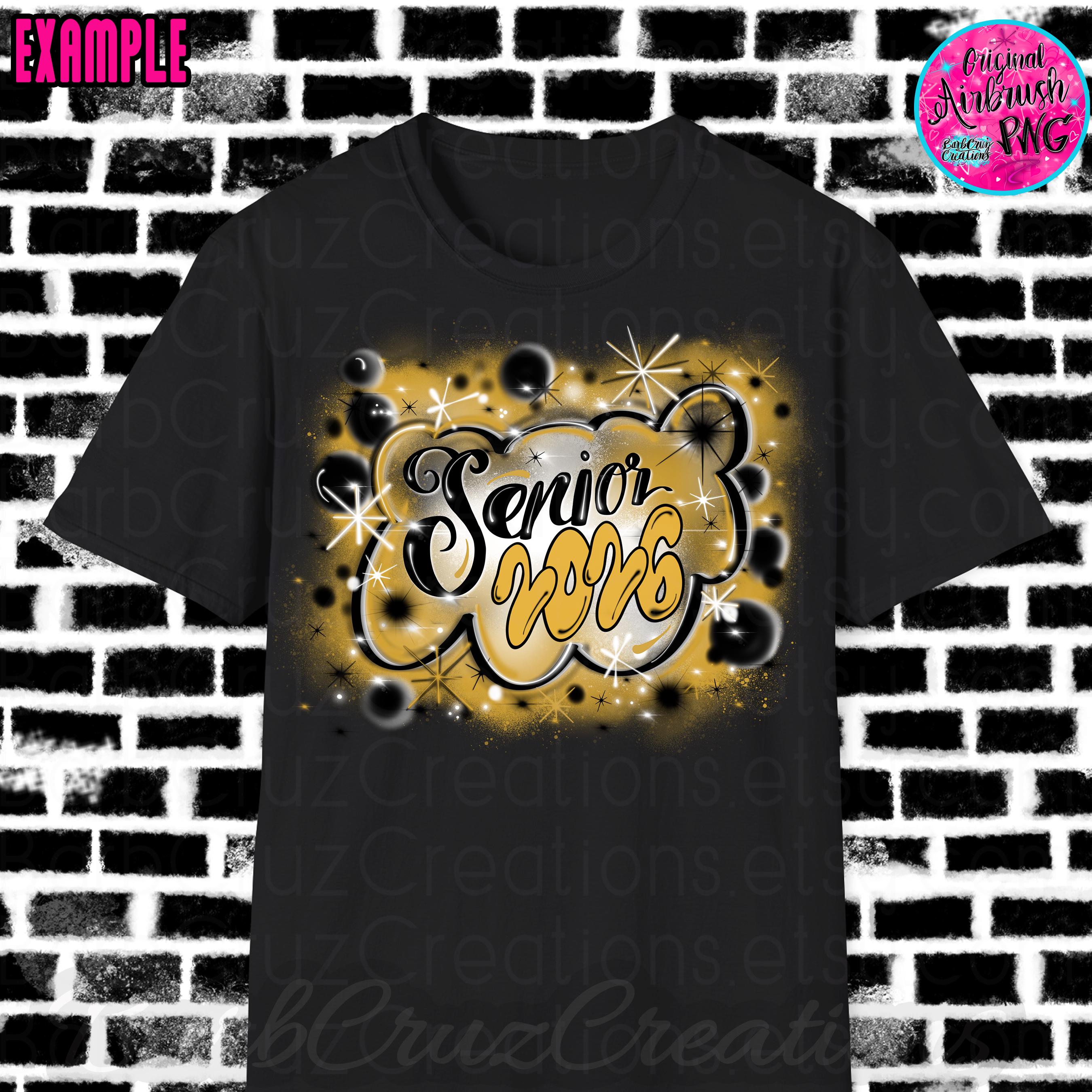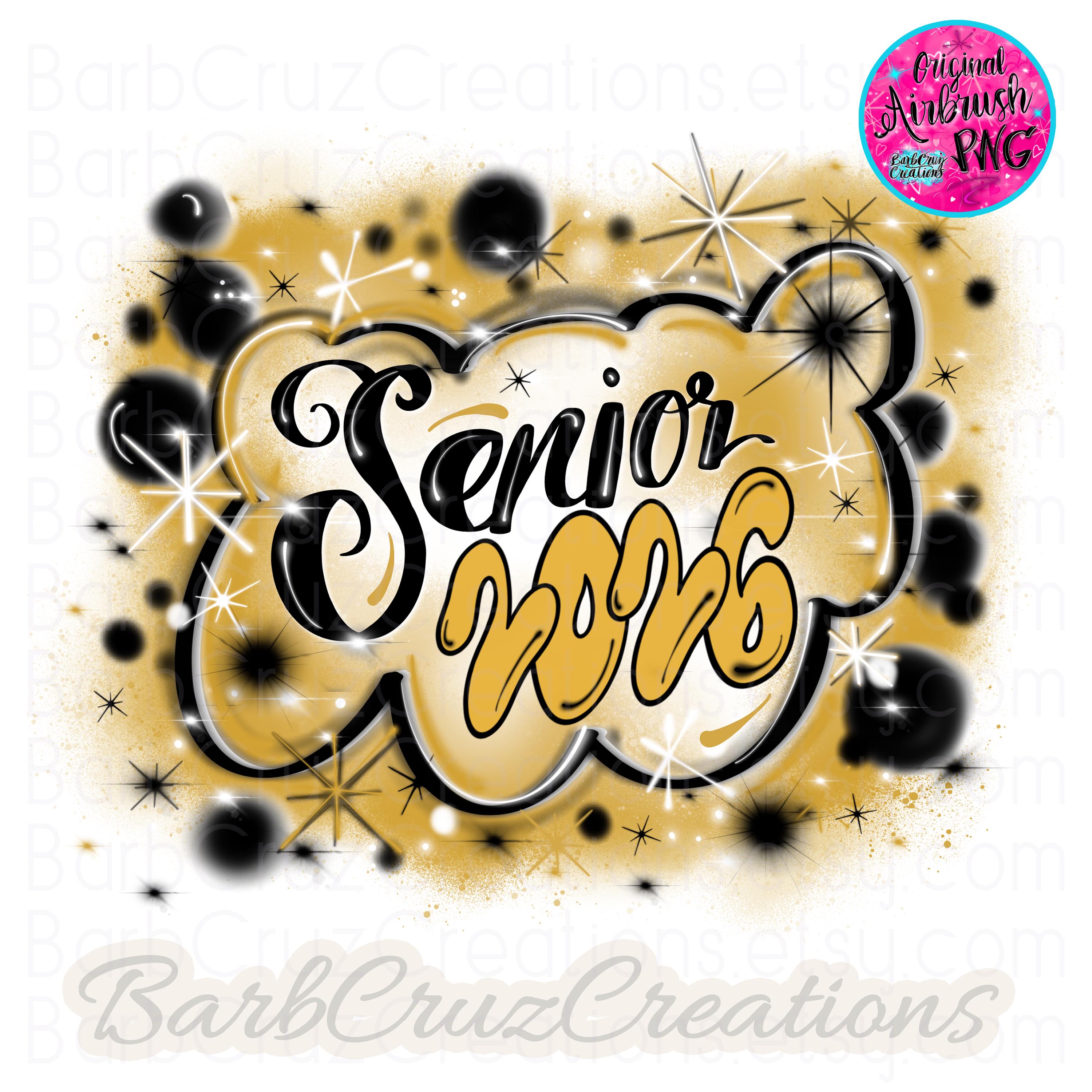 airbrush senior, class of, graduate png set in gold & black
