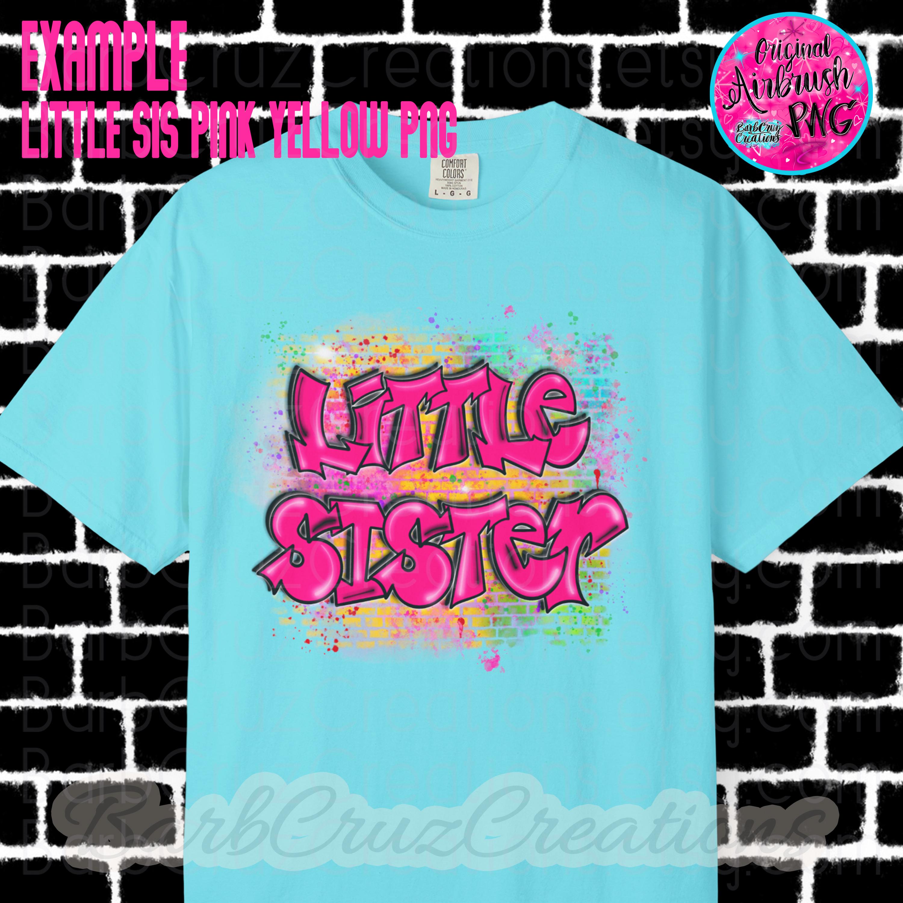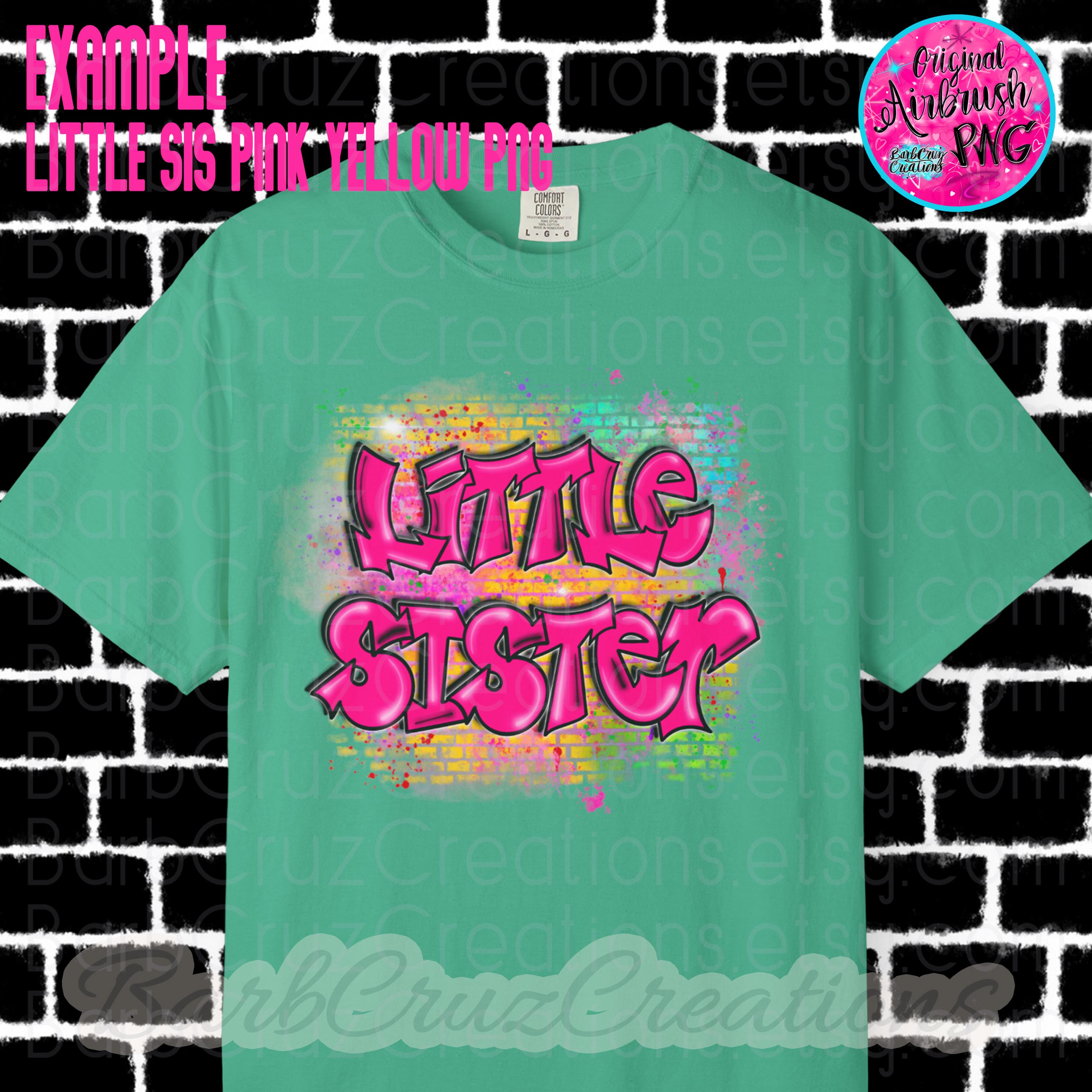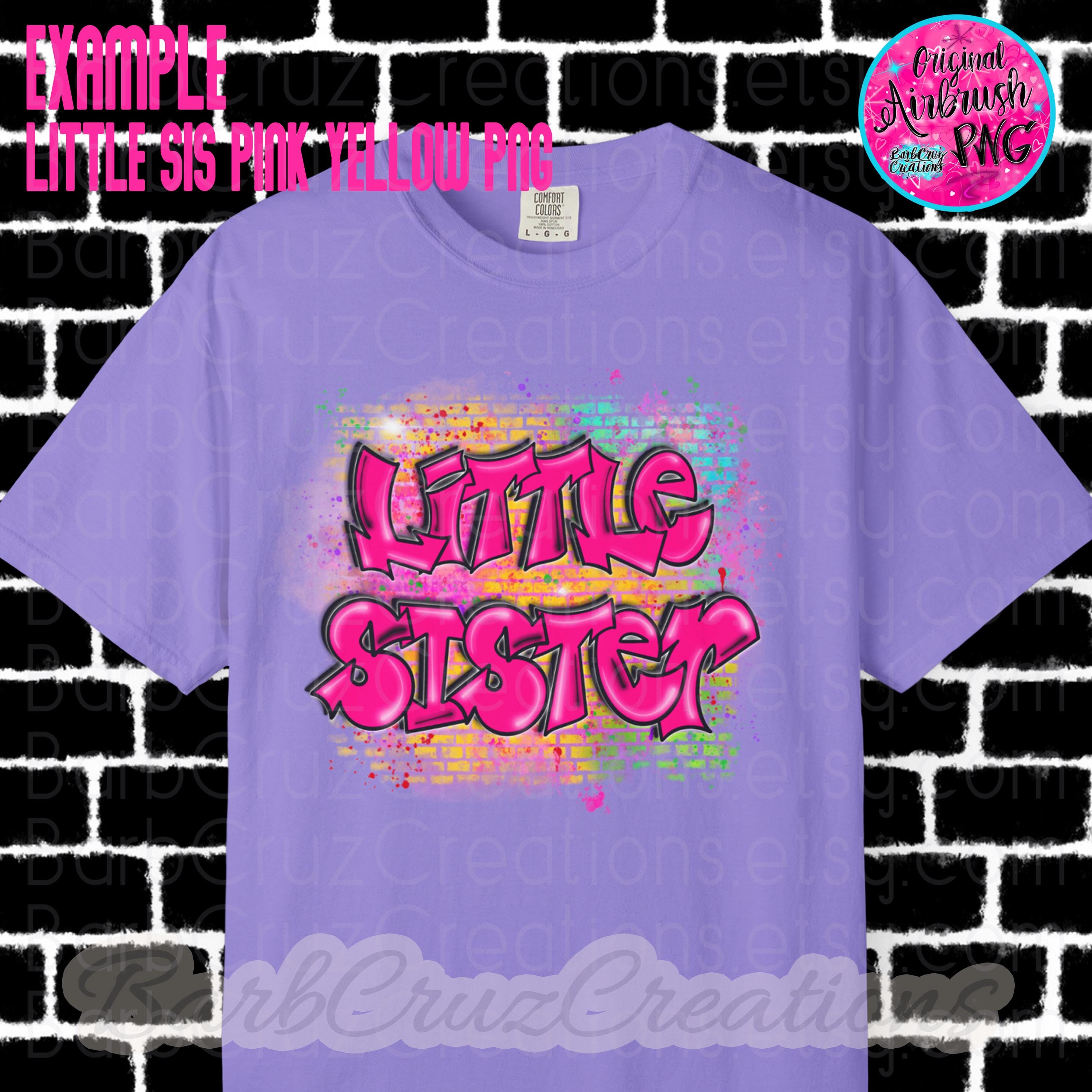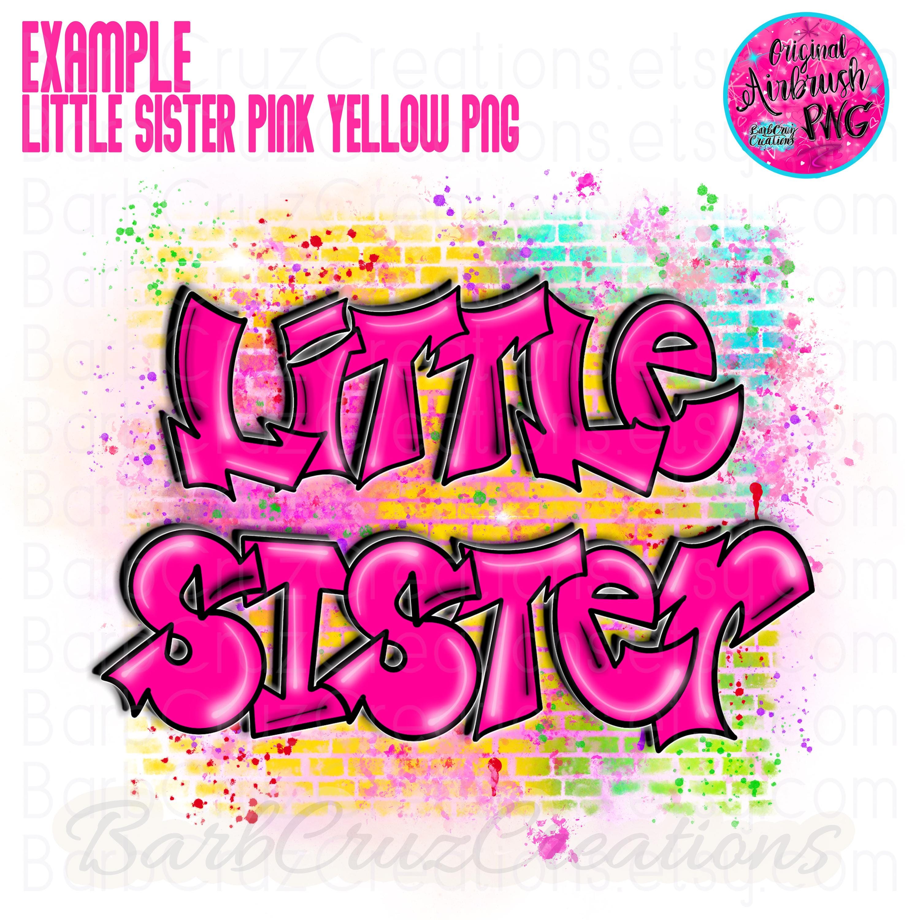 Airbrush png, Little Sister, Brick Wall, Sister, Pink, sublimation designs, hip hop, custom shirt, colorful, graffiti, children’s apparel
