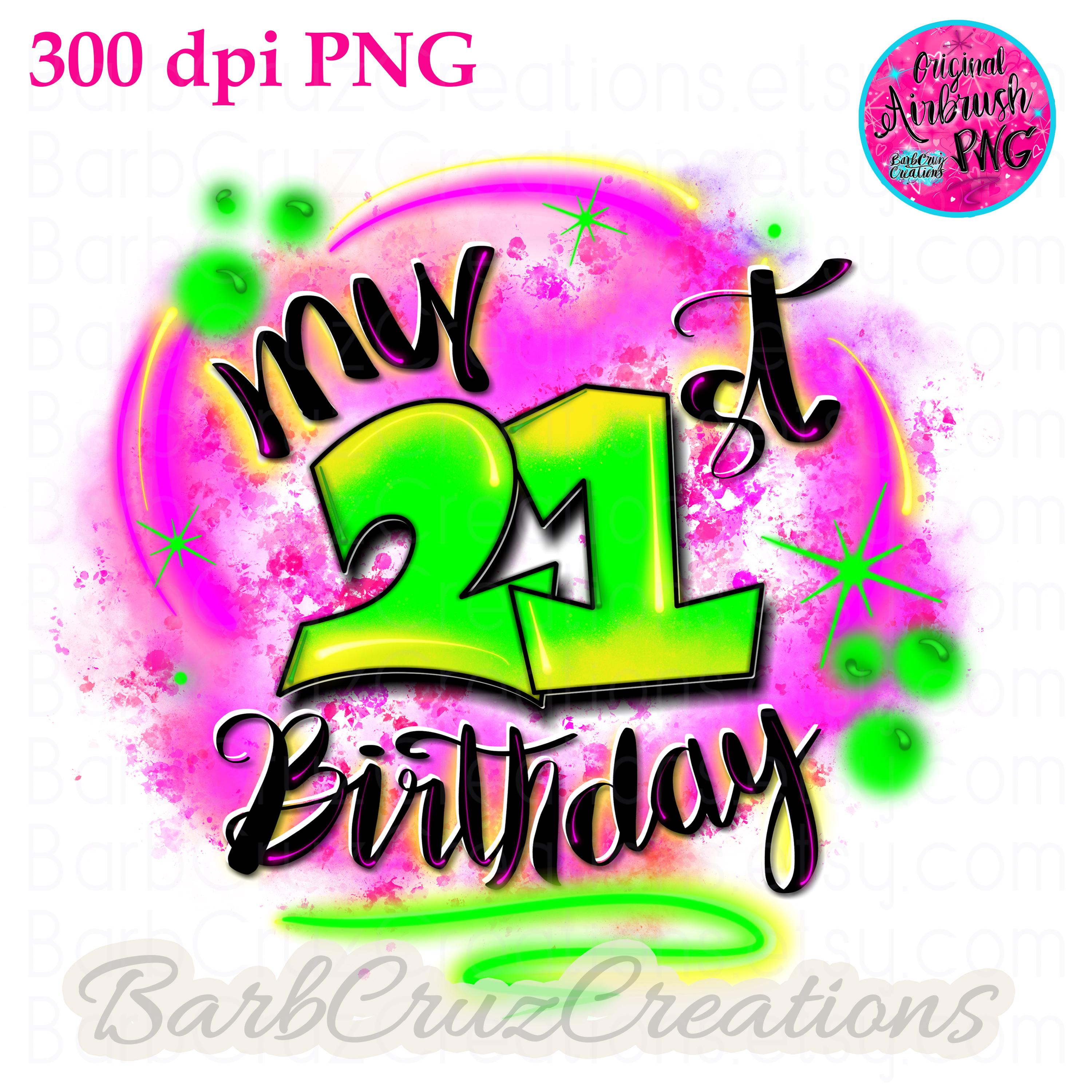 Airbrush, 21st Birthday, 21 years old, Birthday, Airbrush png, Sublimation Transfer, Digital Downloads, Sublimation Designs, clipart
