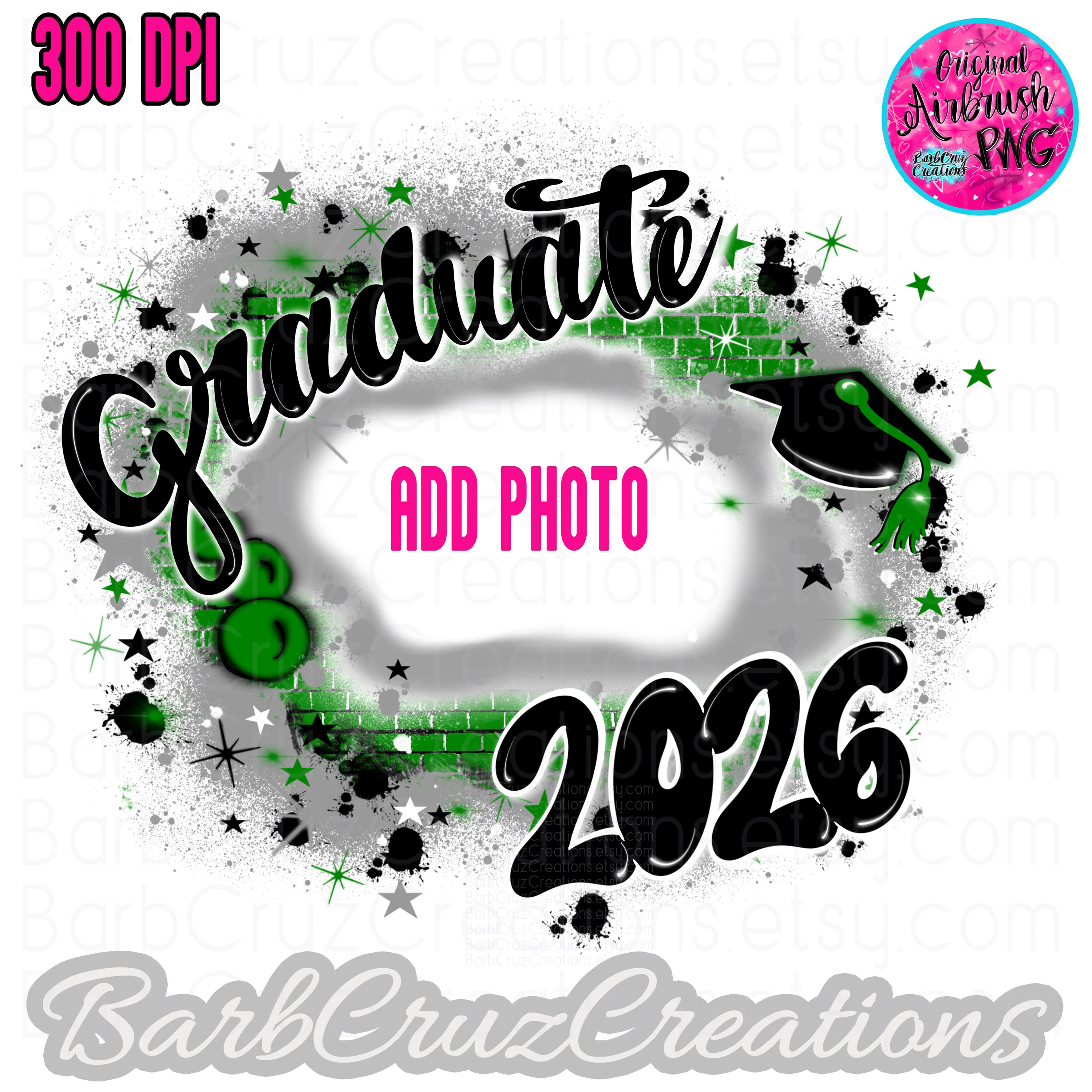 3 years included - Green & Gray Airbrush Frame - Graduate 2026, 2023 & 2024 Designs included - add your photo in the center