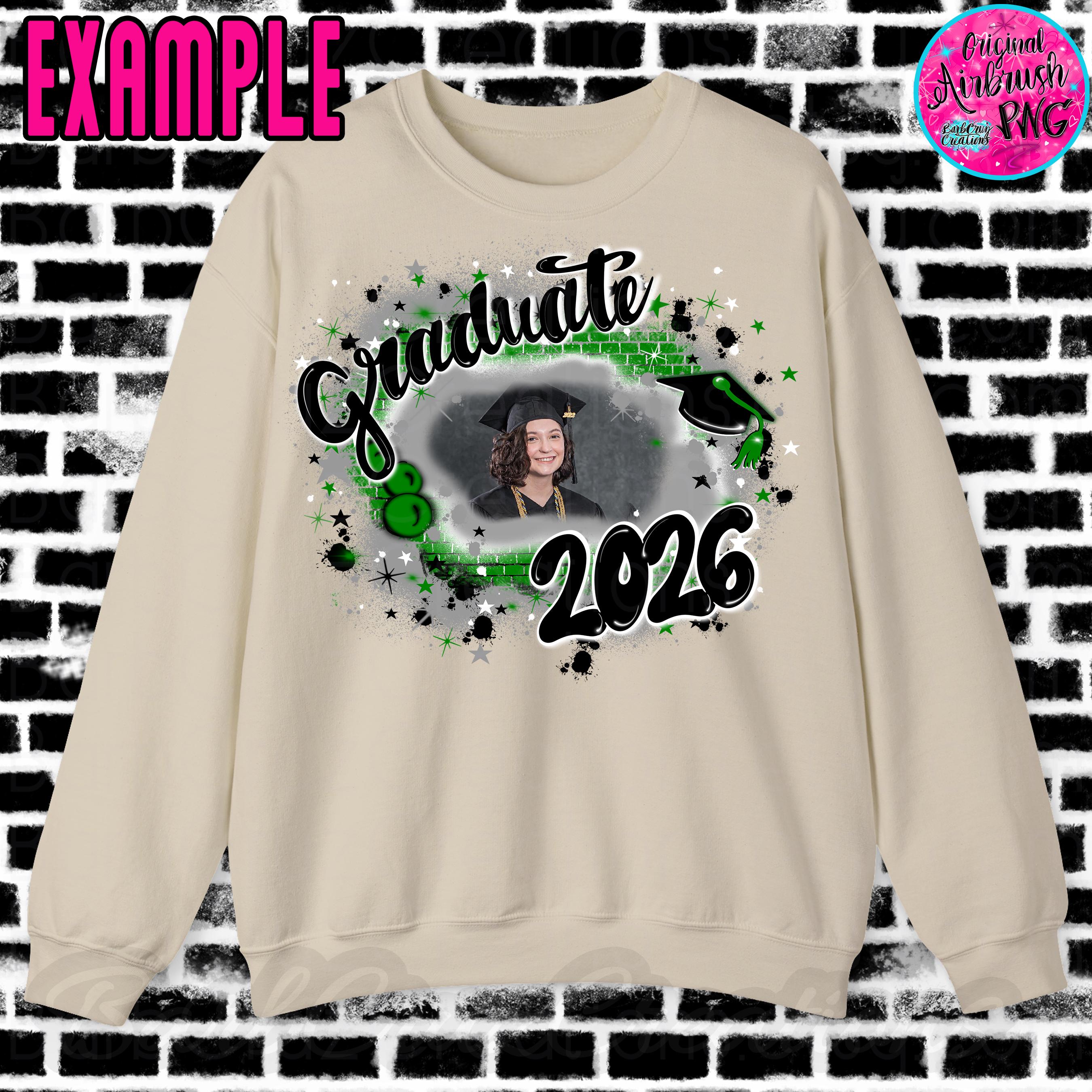 Airbrush Graduate 2026, 2024, 2023 Brick Wall, Grad, Senior, Add your photo, Class of Sublimation Designs, Graffiti Art, png, High School