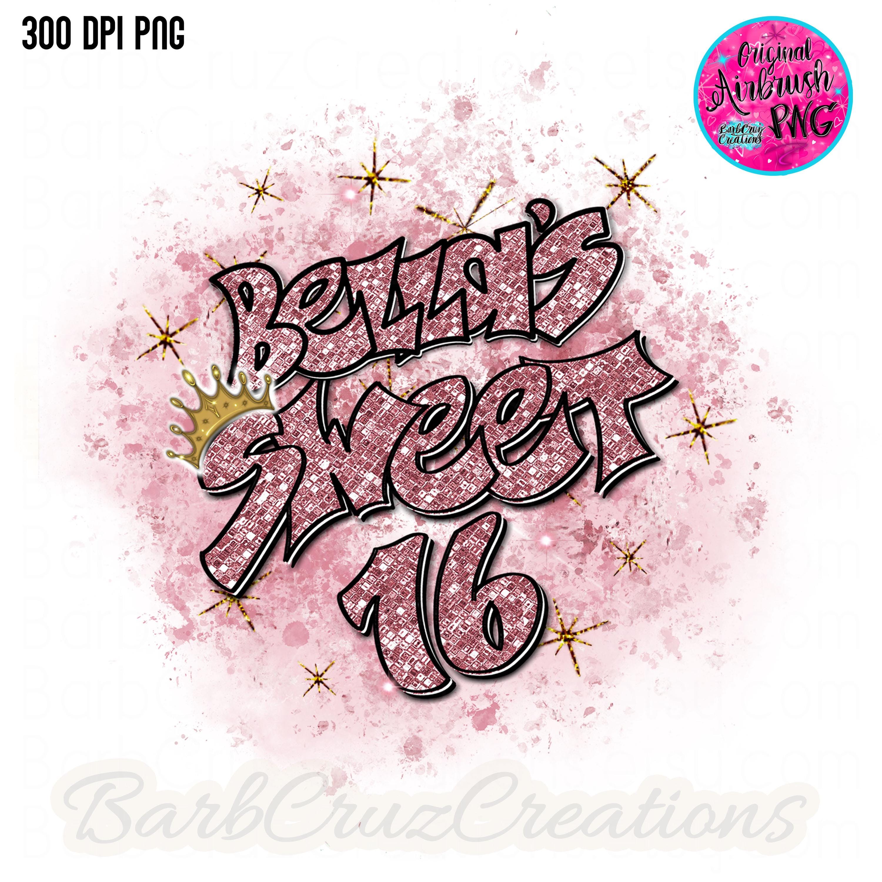 Bella's Sweet 16, glitter, Sixteen bday, crown, Birthday, Airbrush, Print Designs, Sublimation Designs, png, clipart, Digital Downloads