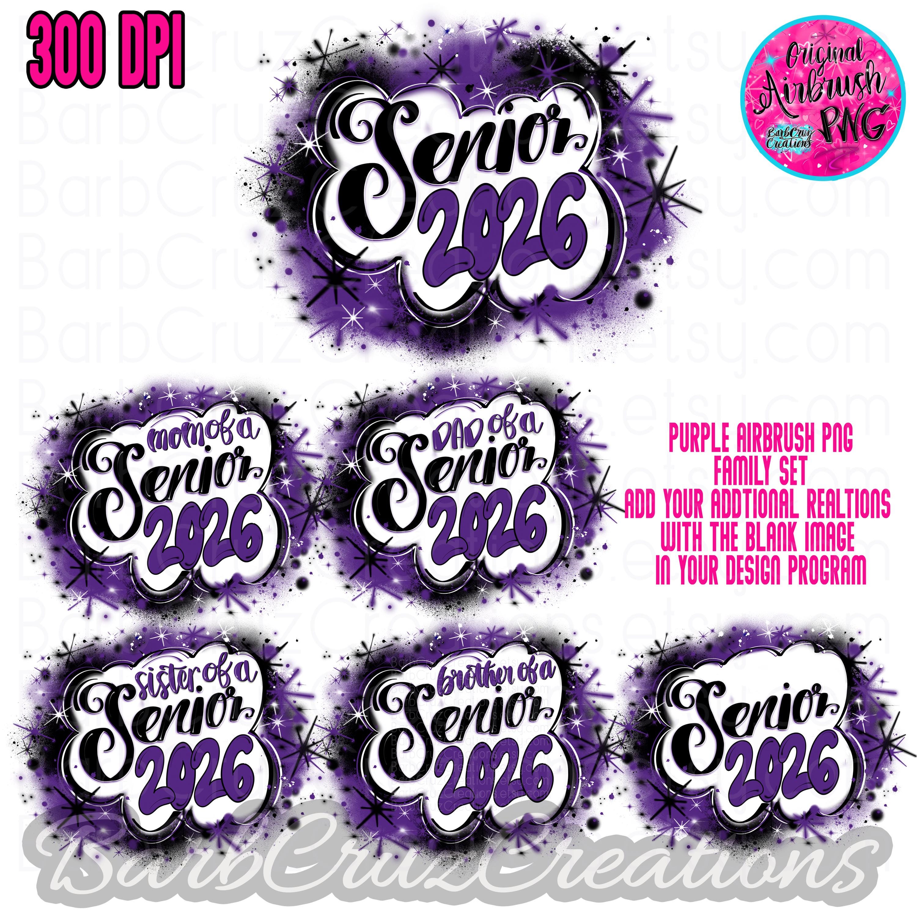 Airbrush Senior 2026 PNG, Family Graduate Set, Graffiti Sublimation Design (Digital Download) Airbrush png, High School, Class of, purple