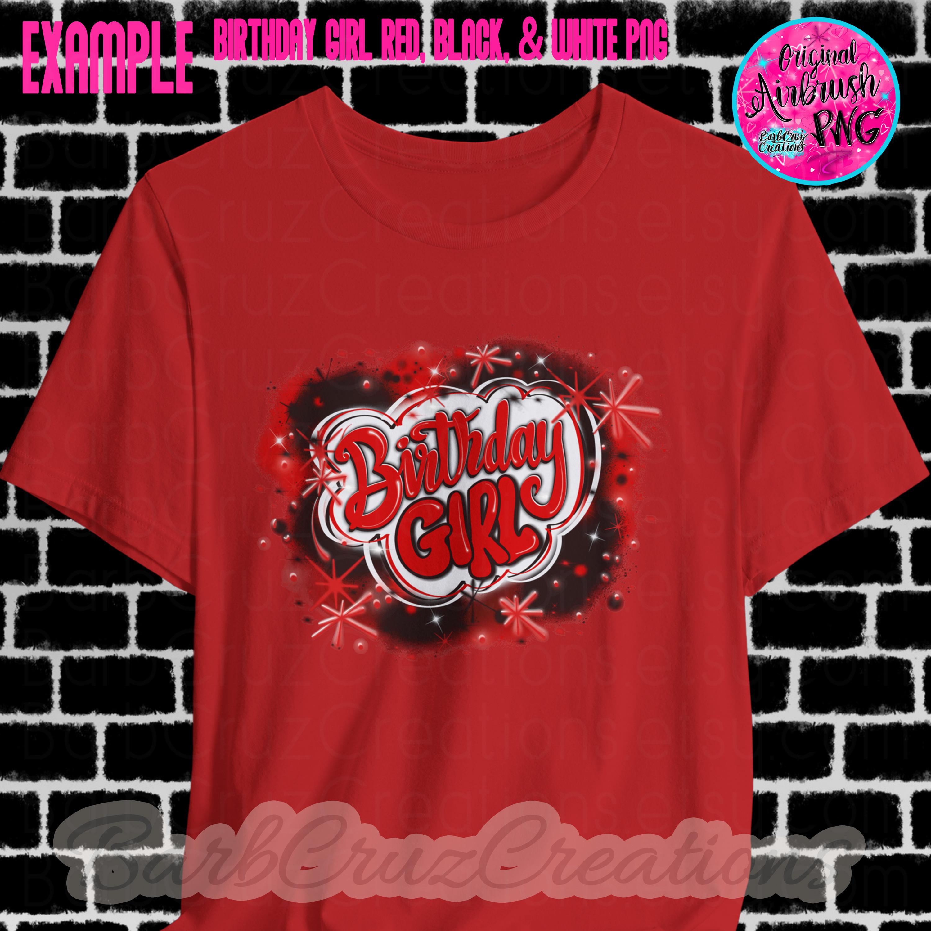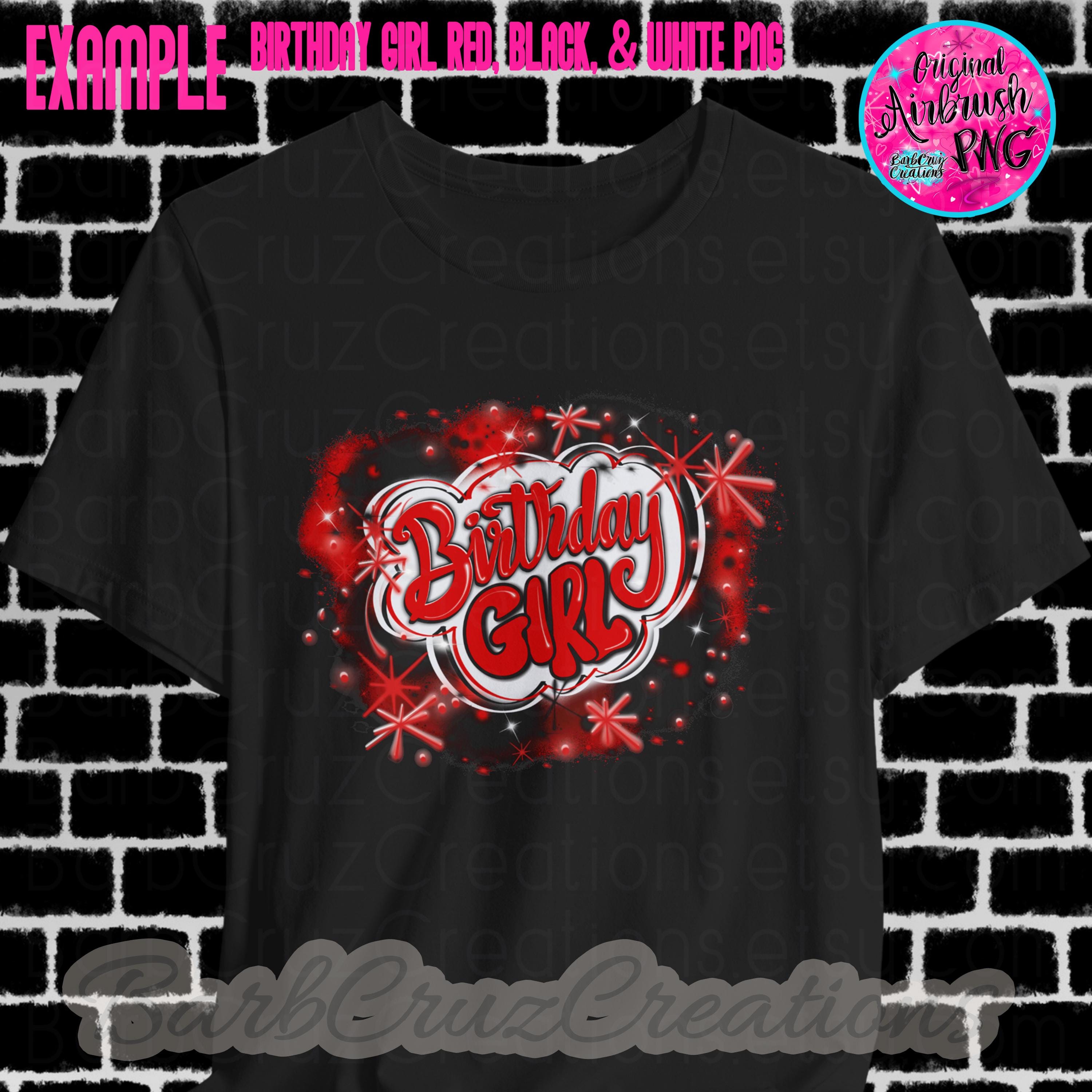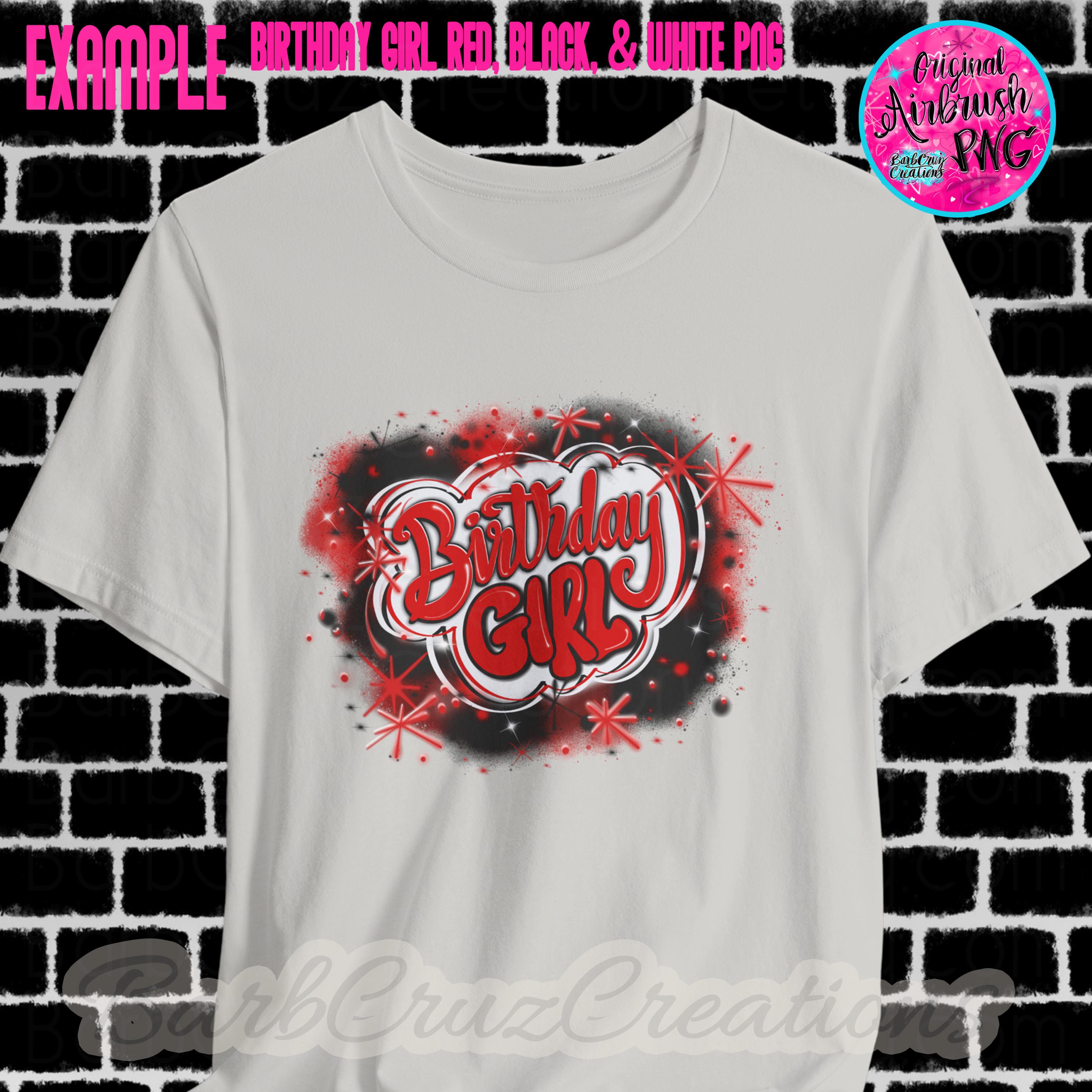 Airbrush png, Birthday Girl Red, Black, White Airbrush digital image, Sublimation Design, png, clipart, Digital Download, shirt, invitation