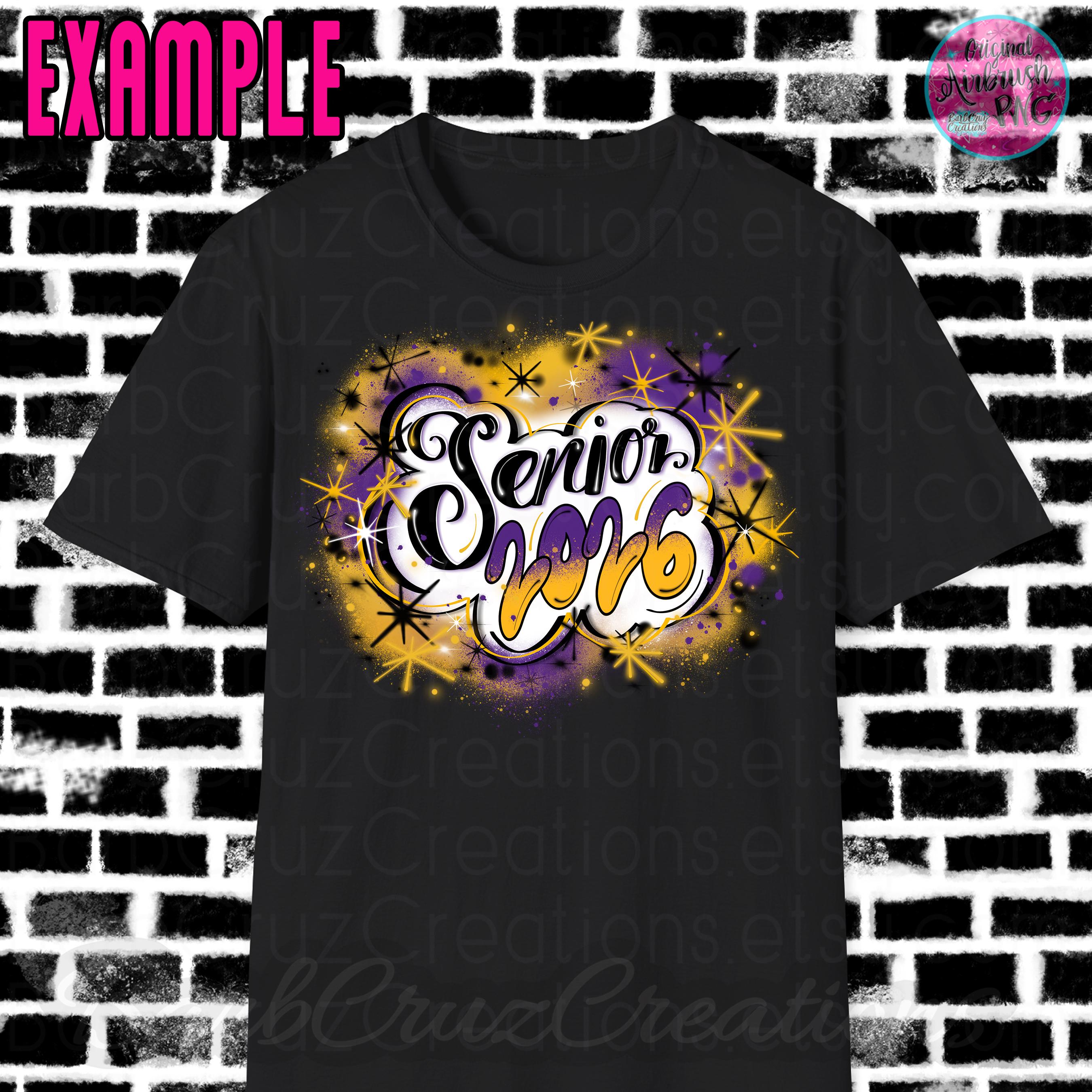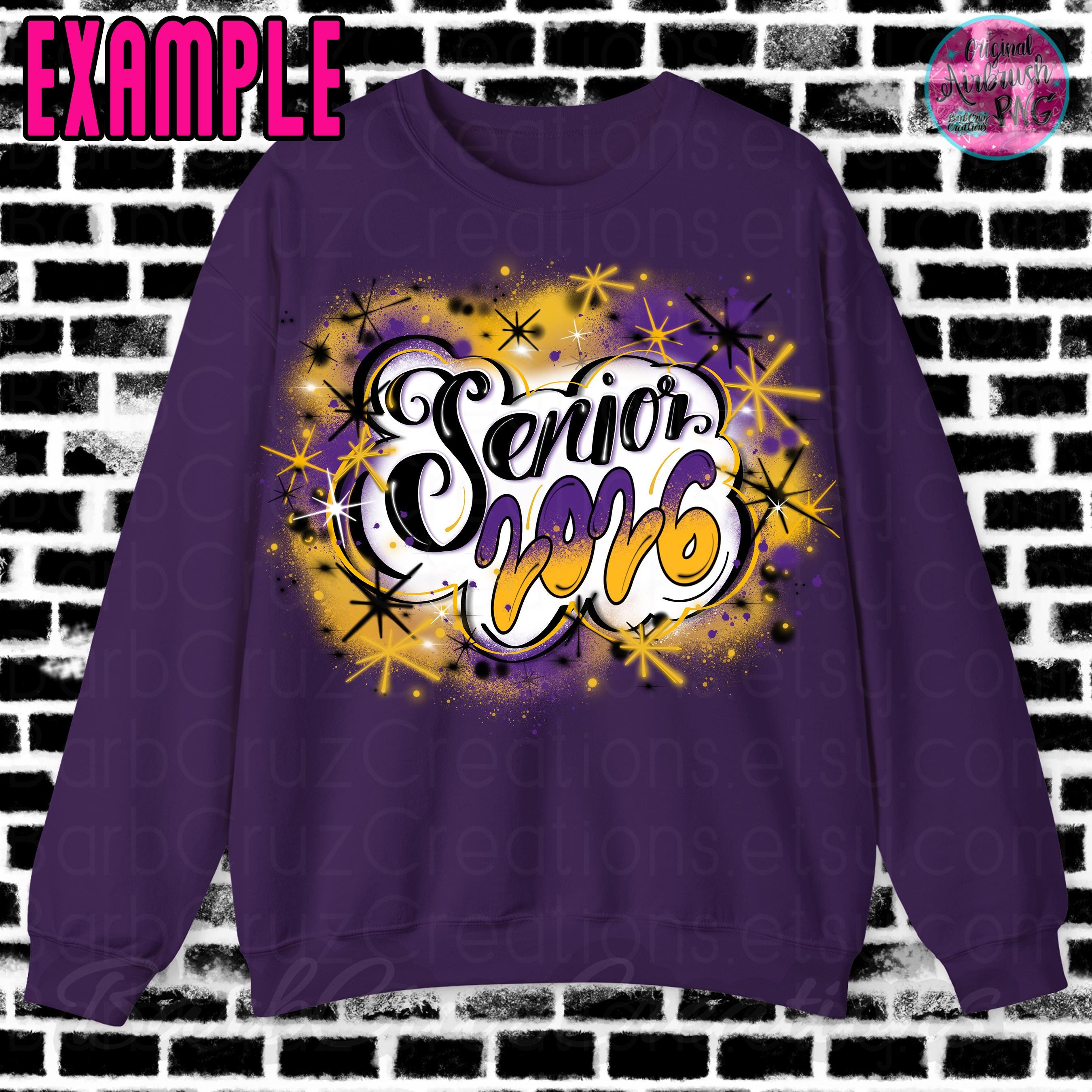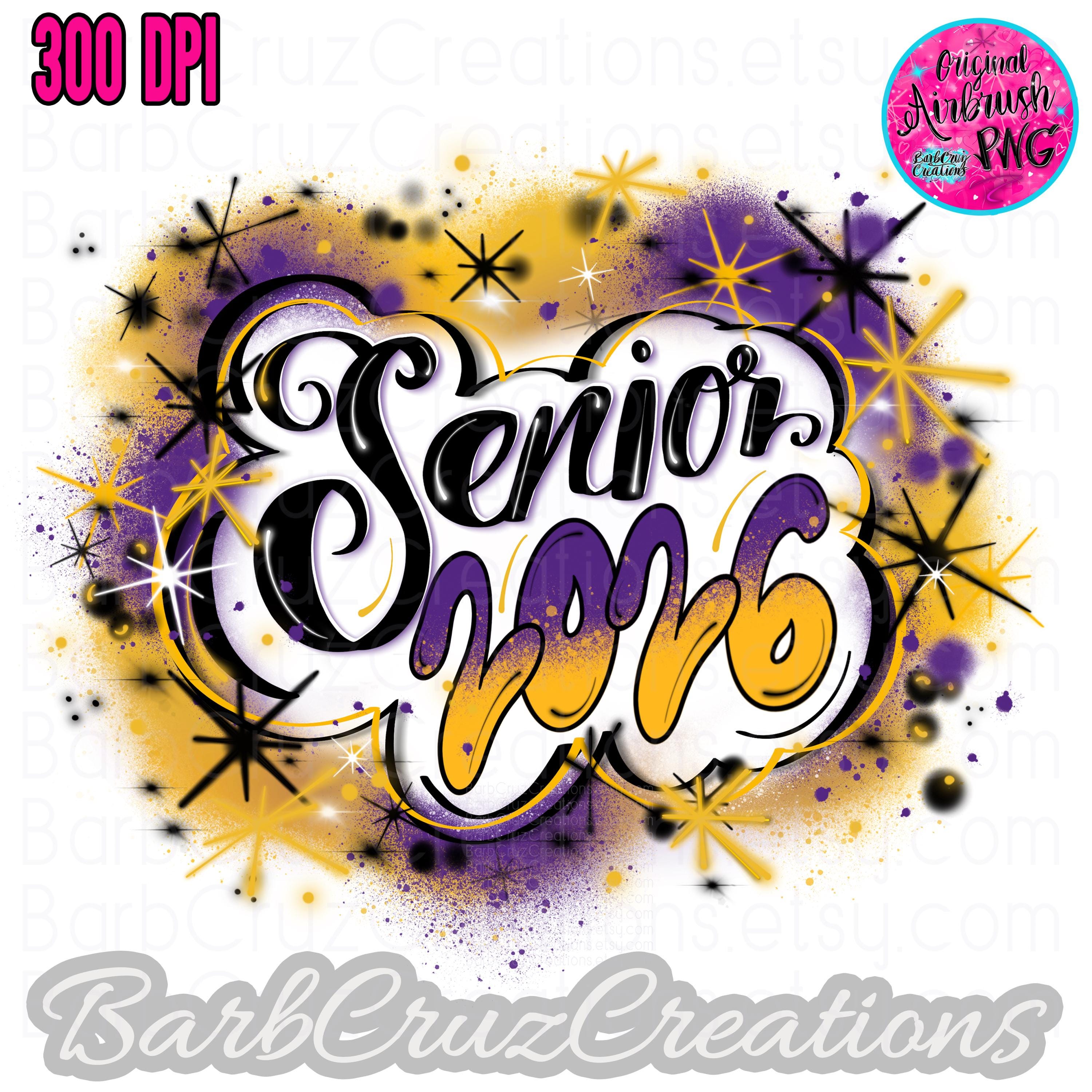 Airbrush png, Senior 2026, High School, Class of 2026, Graduate, Sublimation, Digital Airbrush, Graffiti, 12th grade, purple, gold, yellow