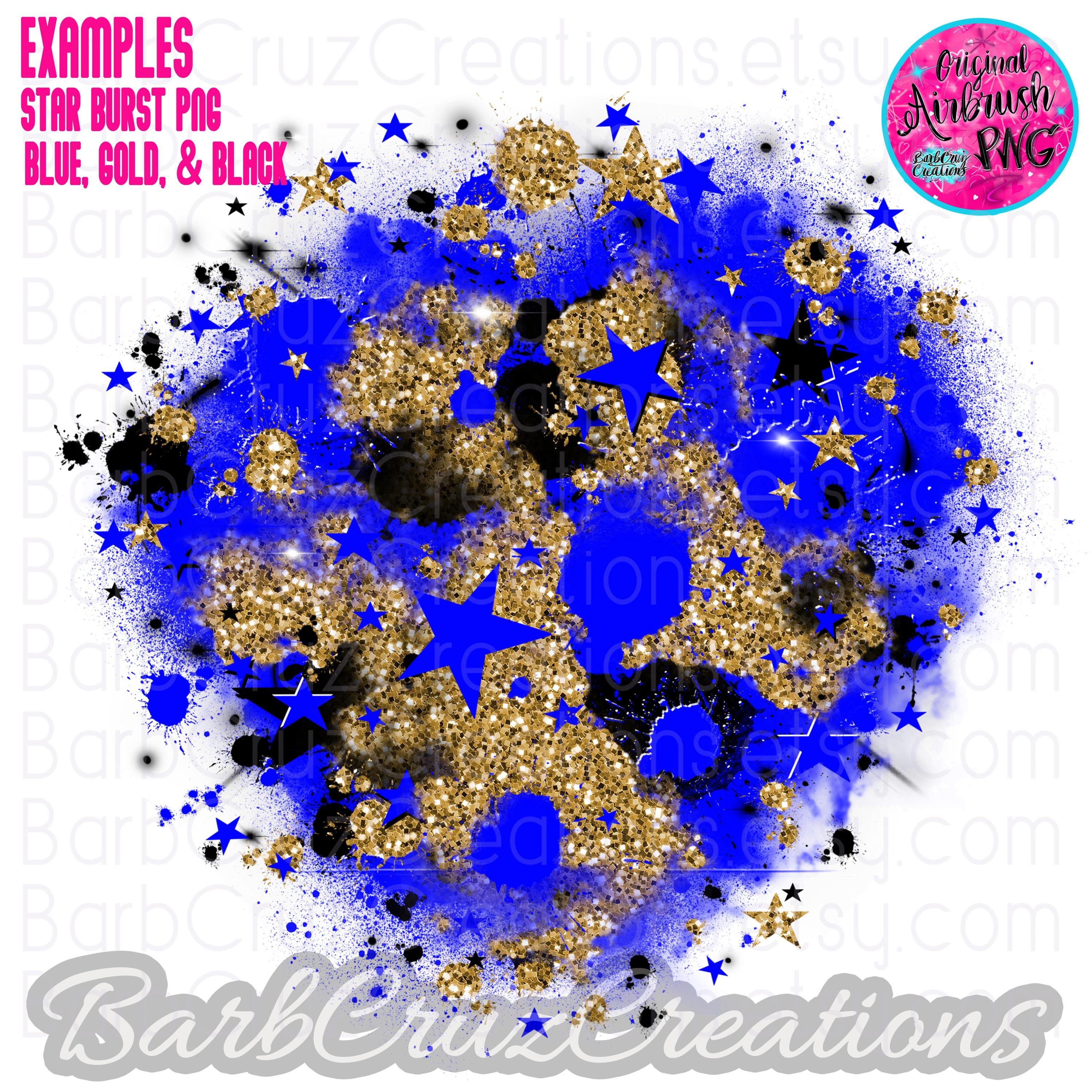 Airbrush digital image star burst background png sublimation designs, shirt transfer sports, team school spirit, backdrop, blue glitter gold
