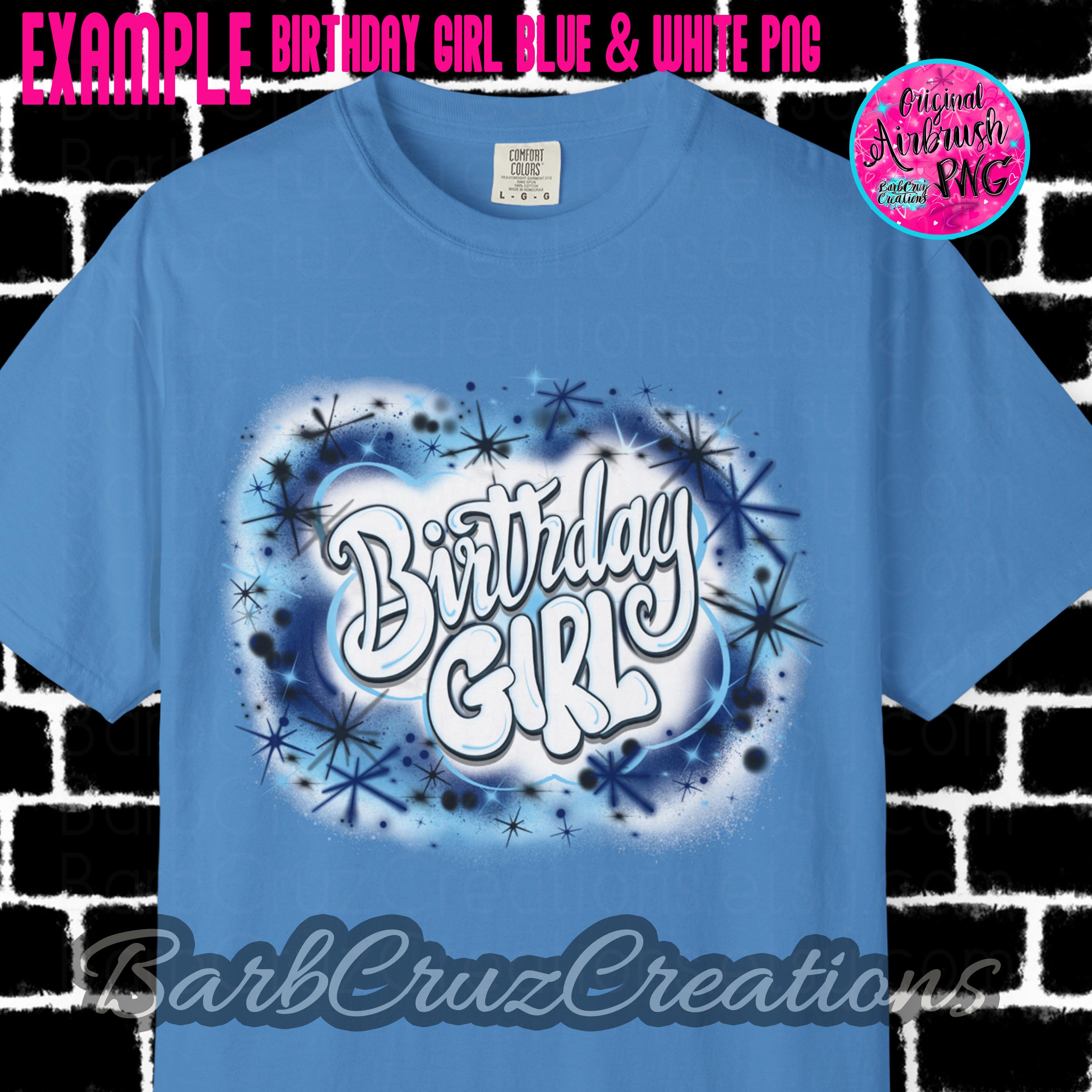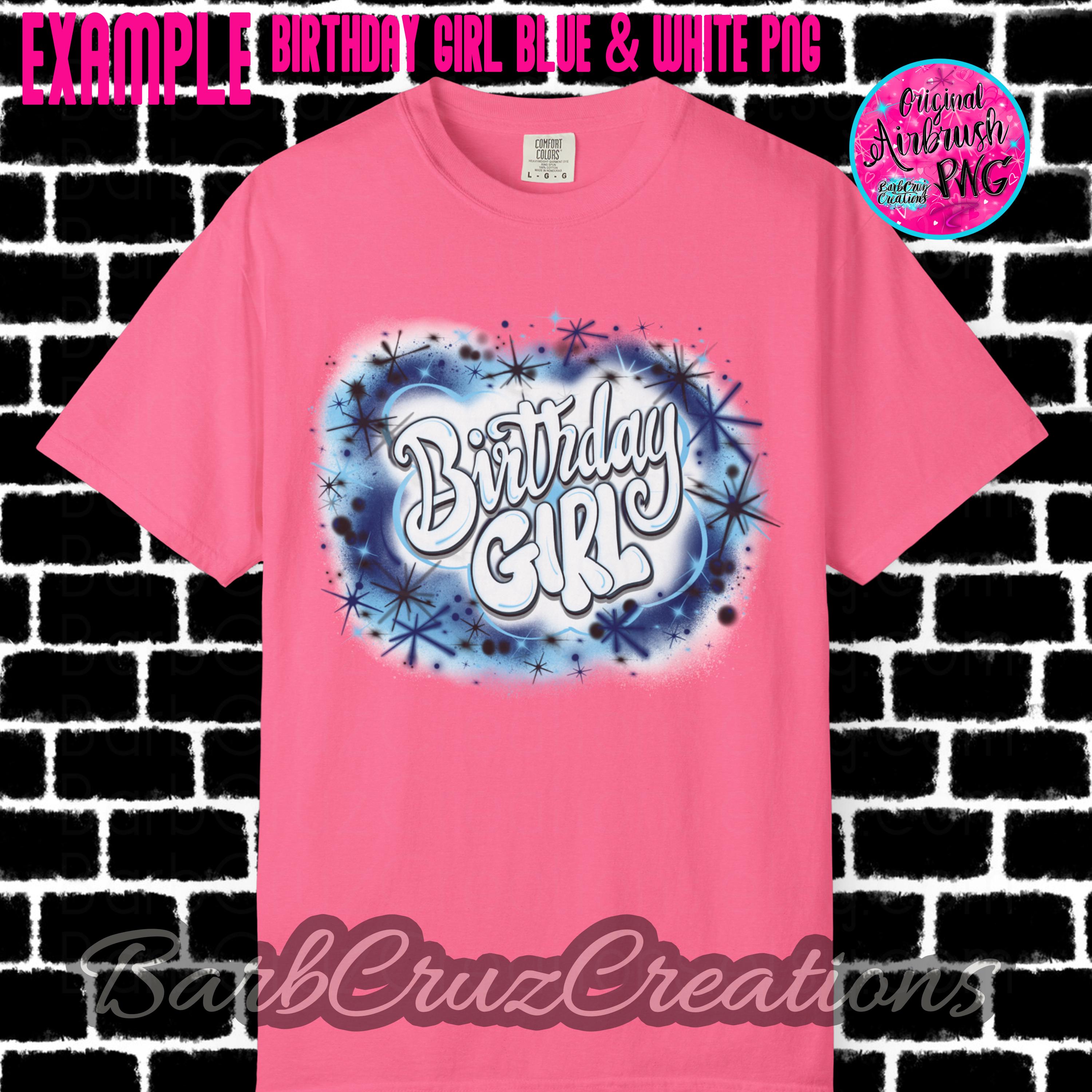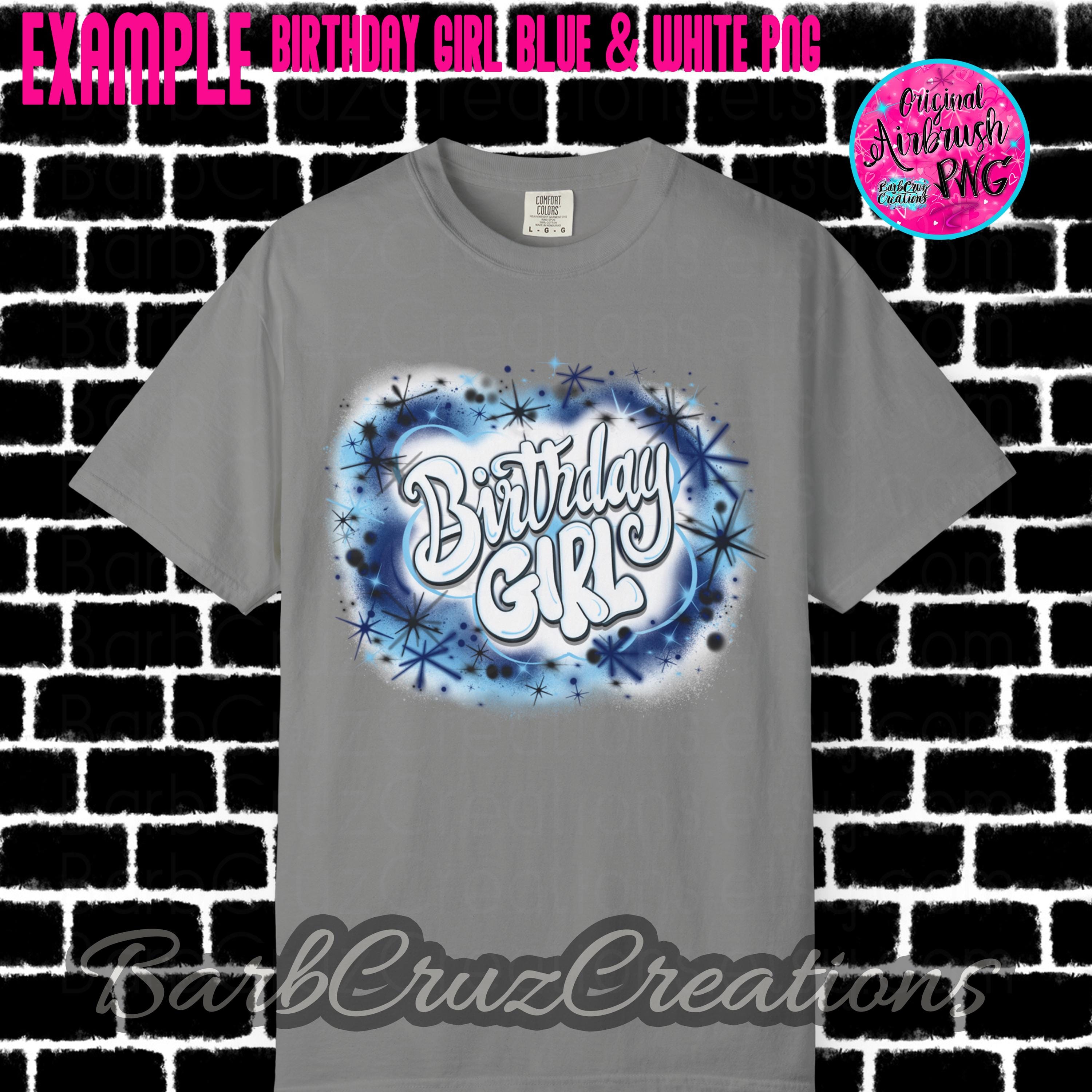 Airbrush png, Birthday Girl White, Blue, DTF, White Printing, Party Shirt, Birthday Gift, png, Dark Shirt, Party, Celebration Tee's