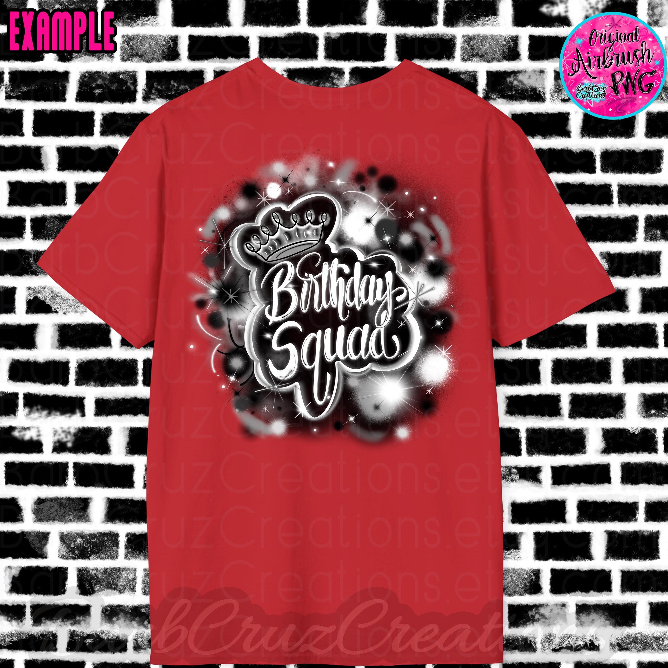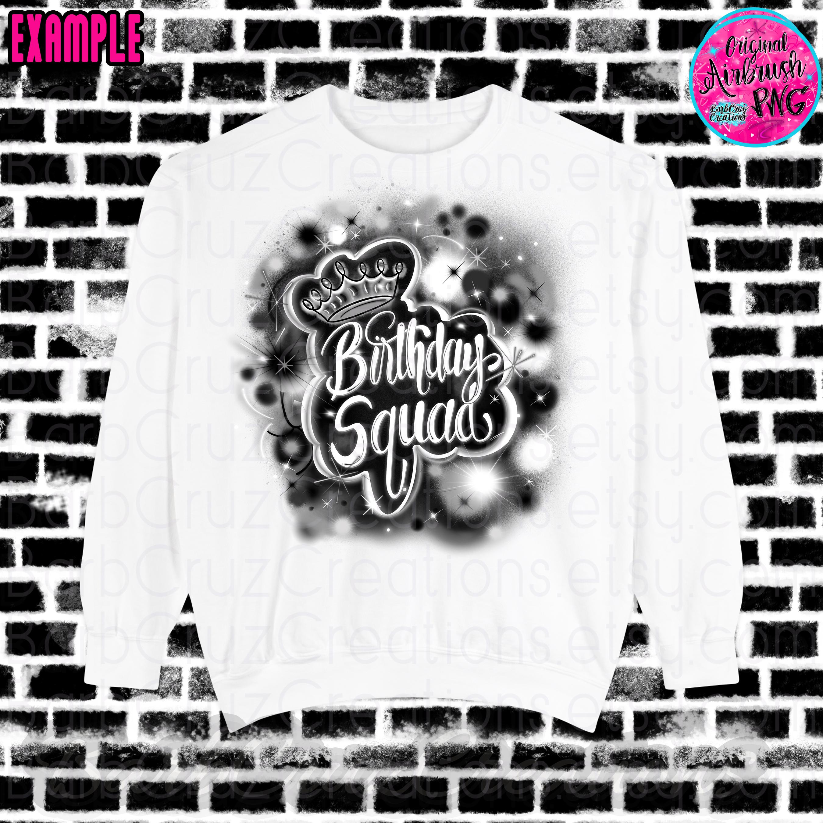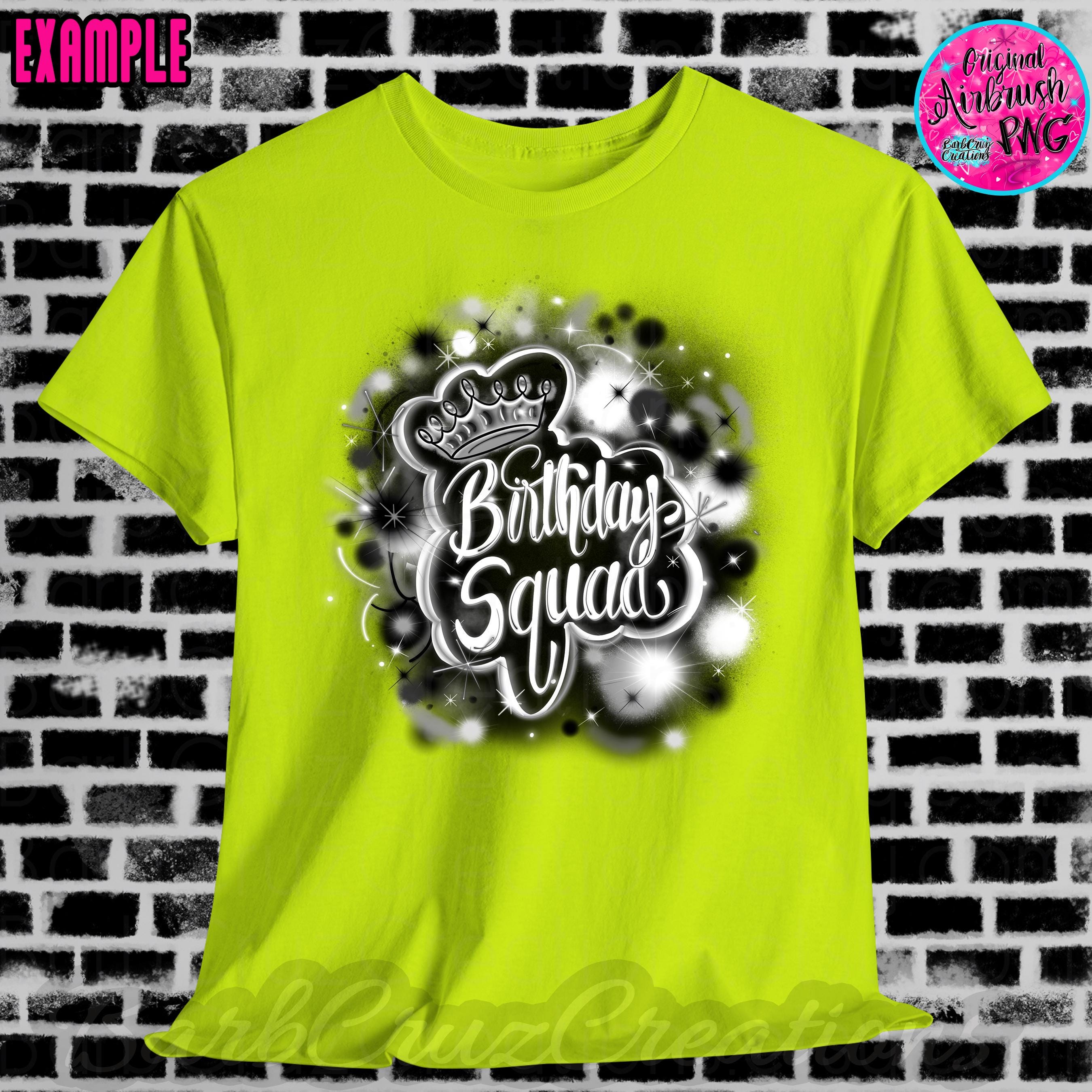 Airbrush png, Birthday Squad, Sublimation Designs, Digital Downloads, invitation, black, Graffiti, family birthday shirt, 90's, 2000's, crew