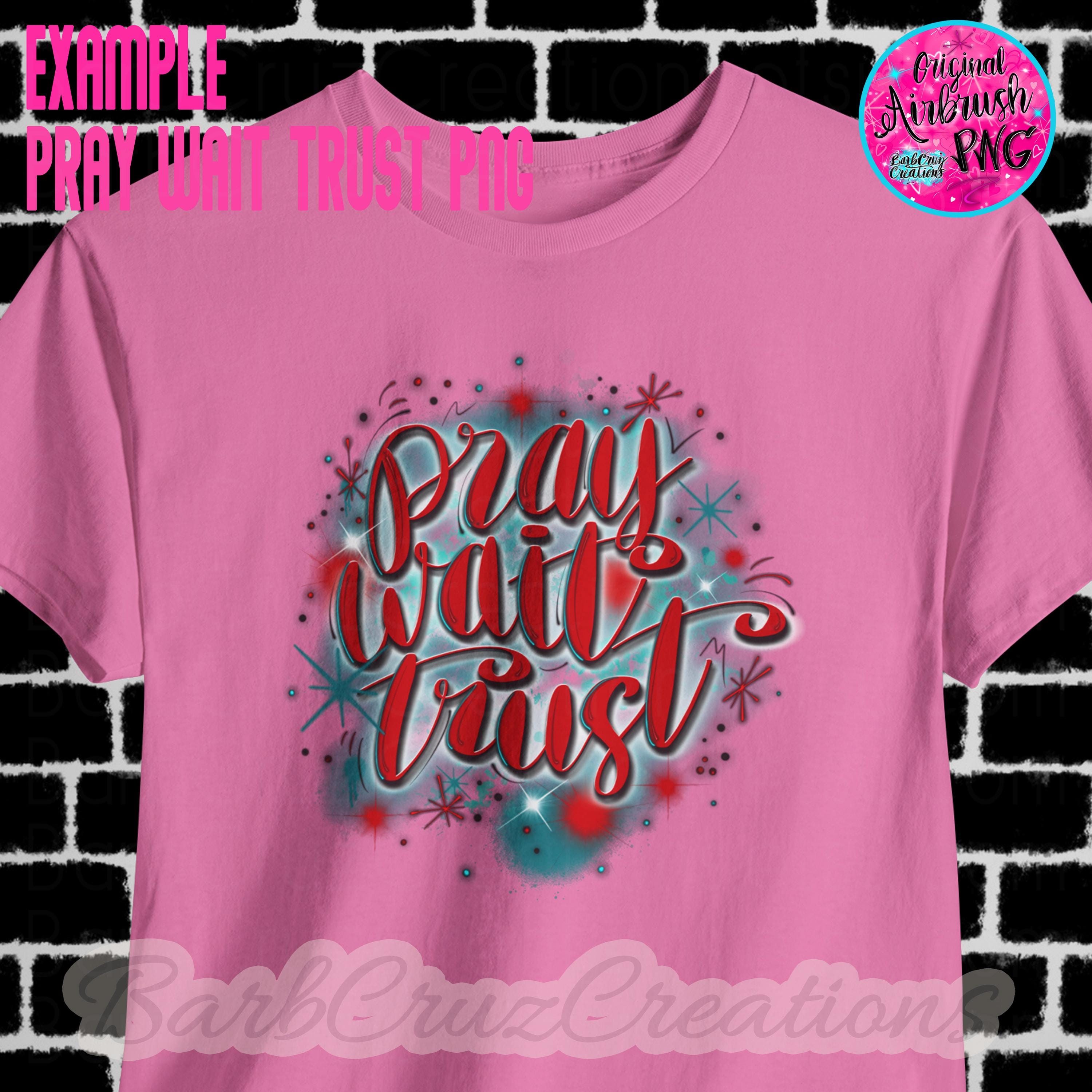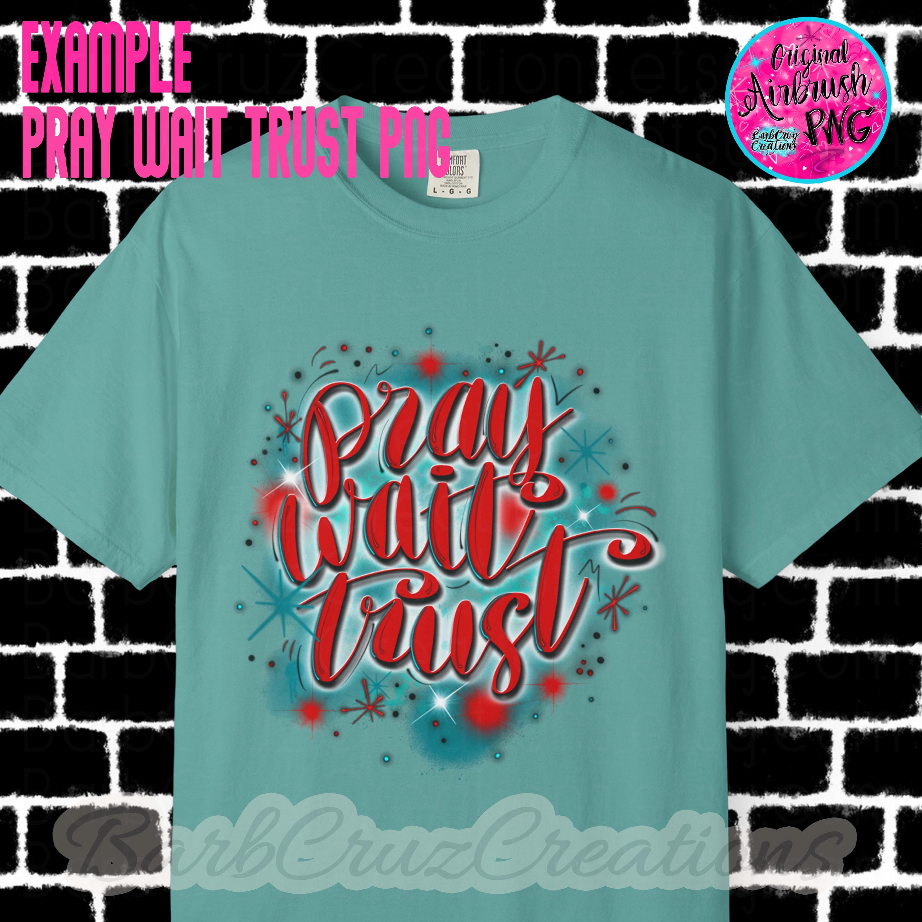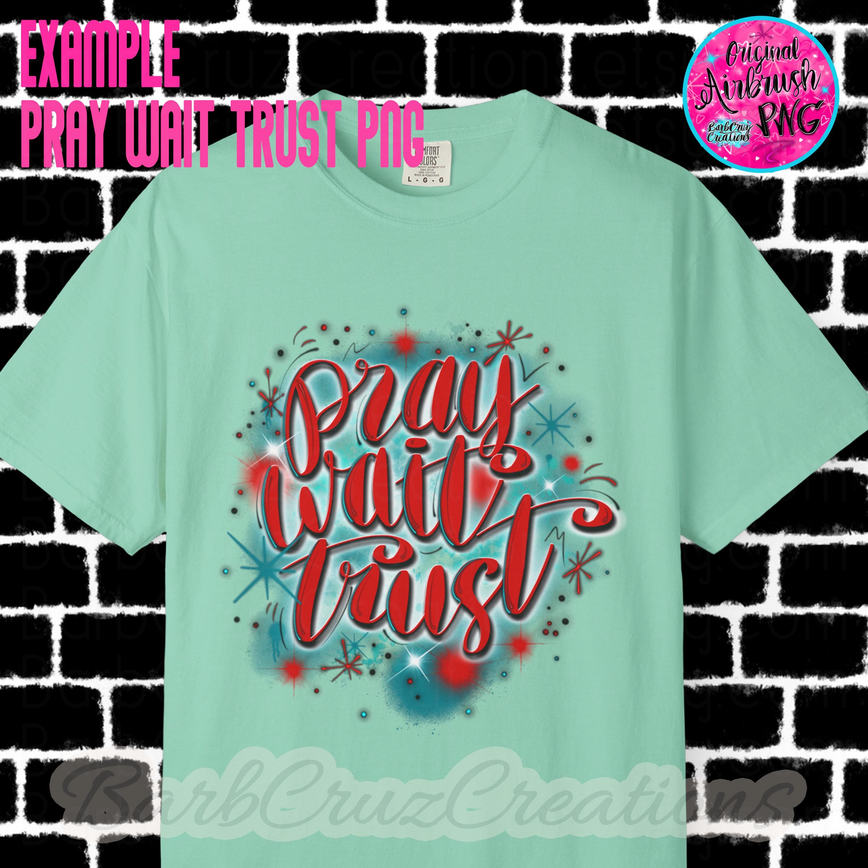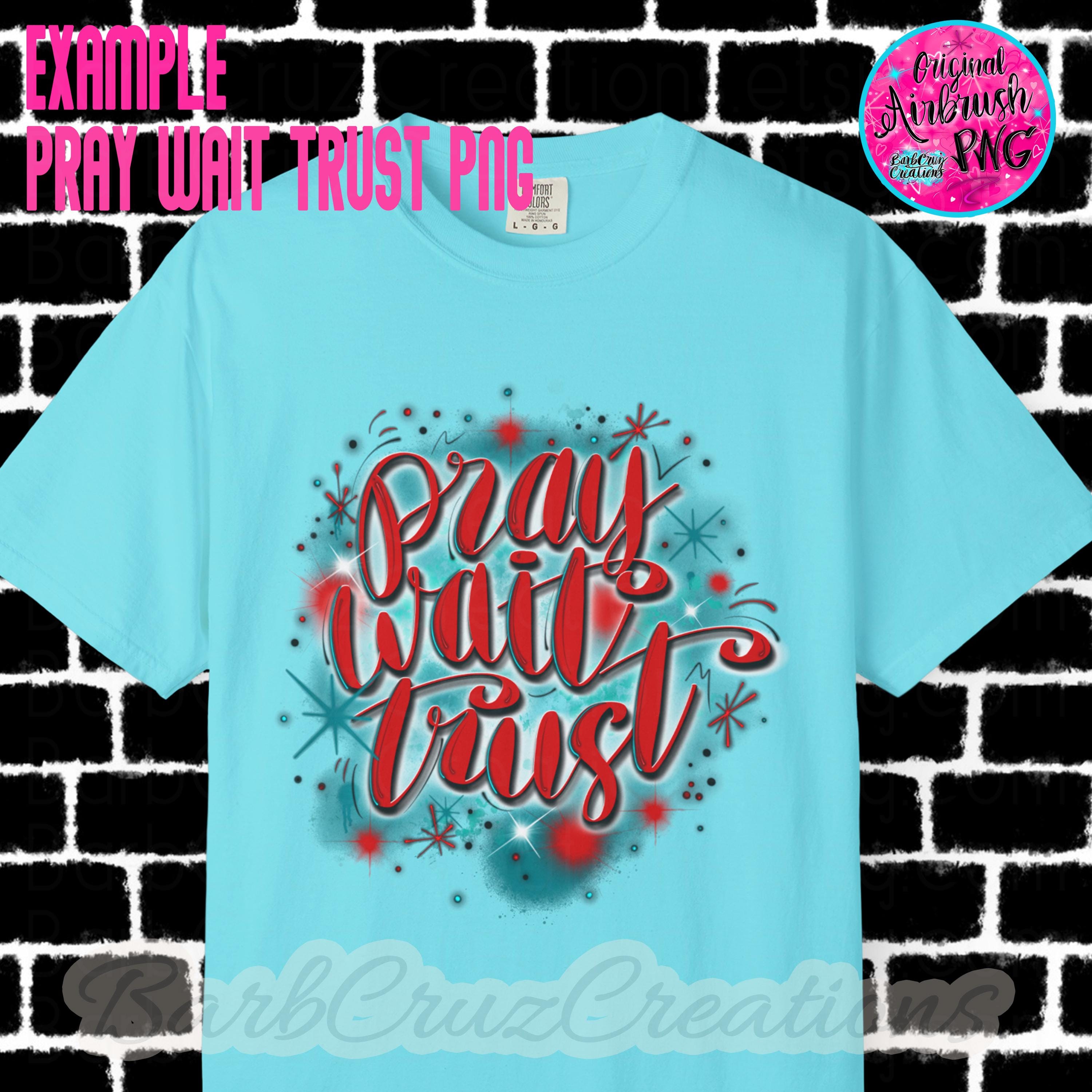 Airbrush png, Pray, Wait, Trust, Red, Teal, Background, Sublimation Design, DTF, Encouragement, Inspirational, Custom Shirts, Faith, Hope