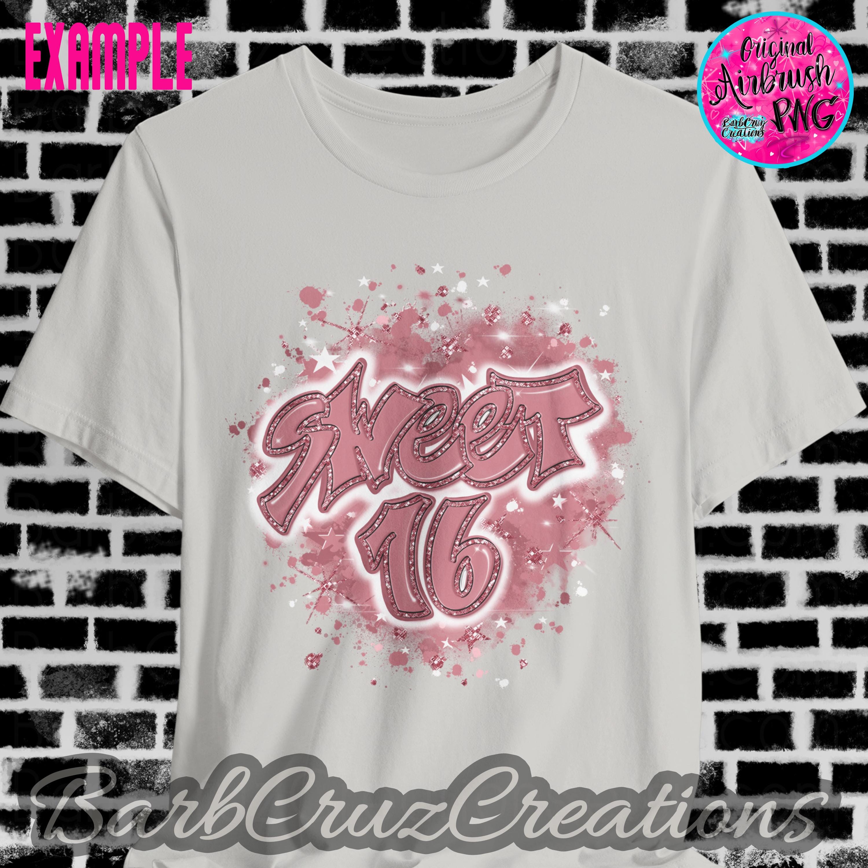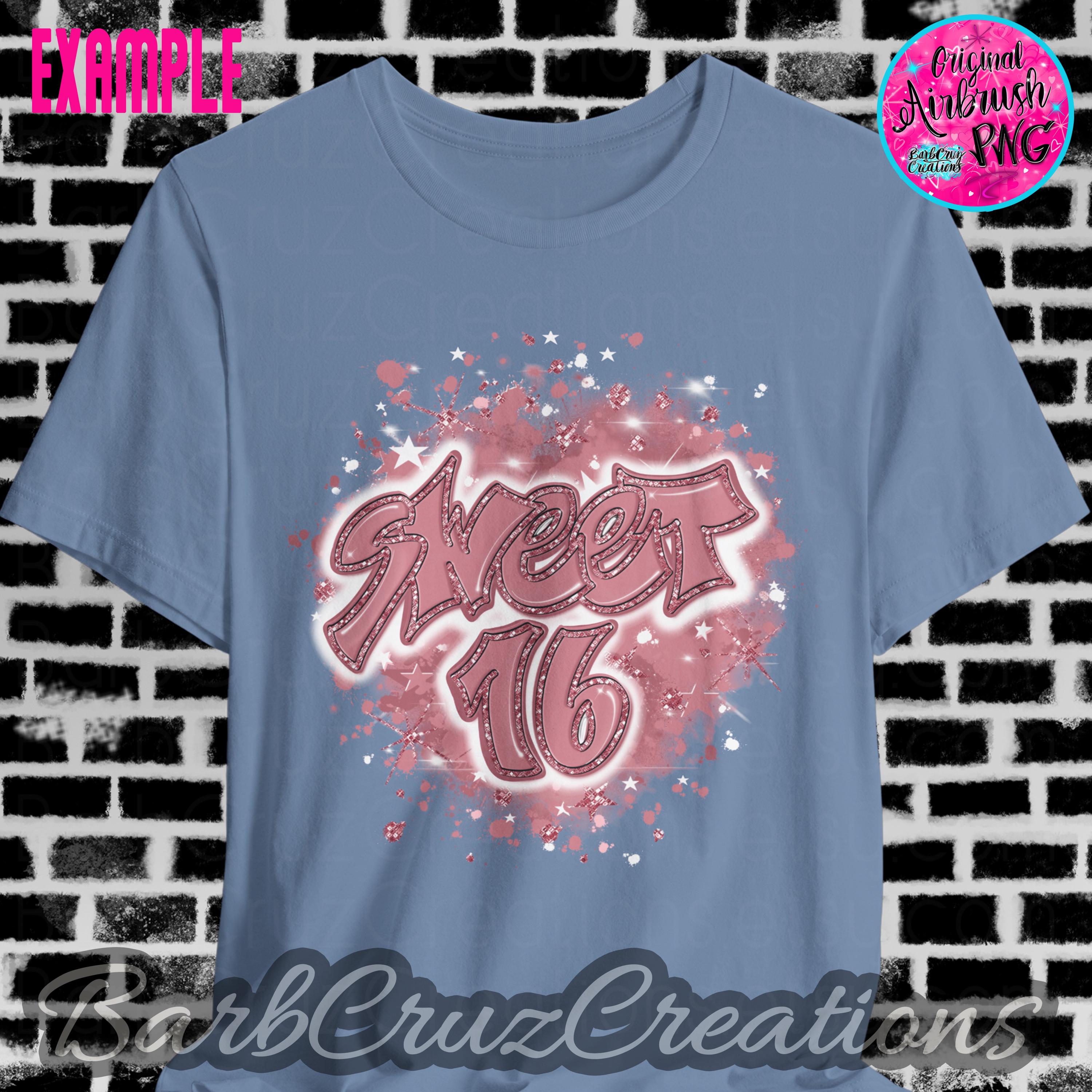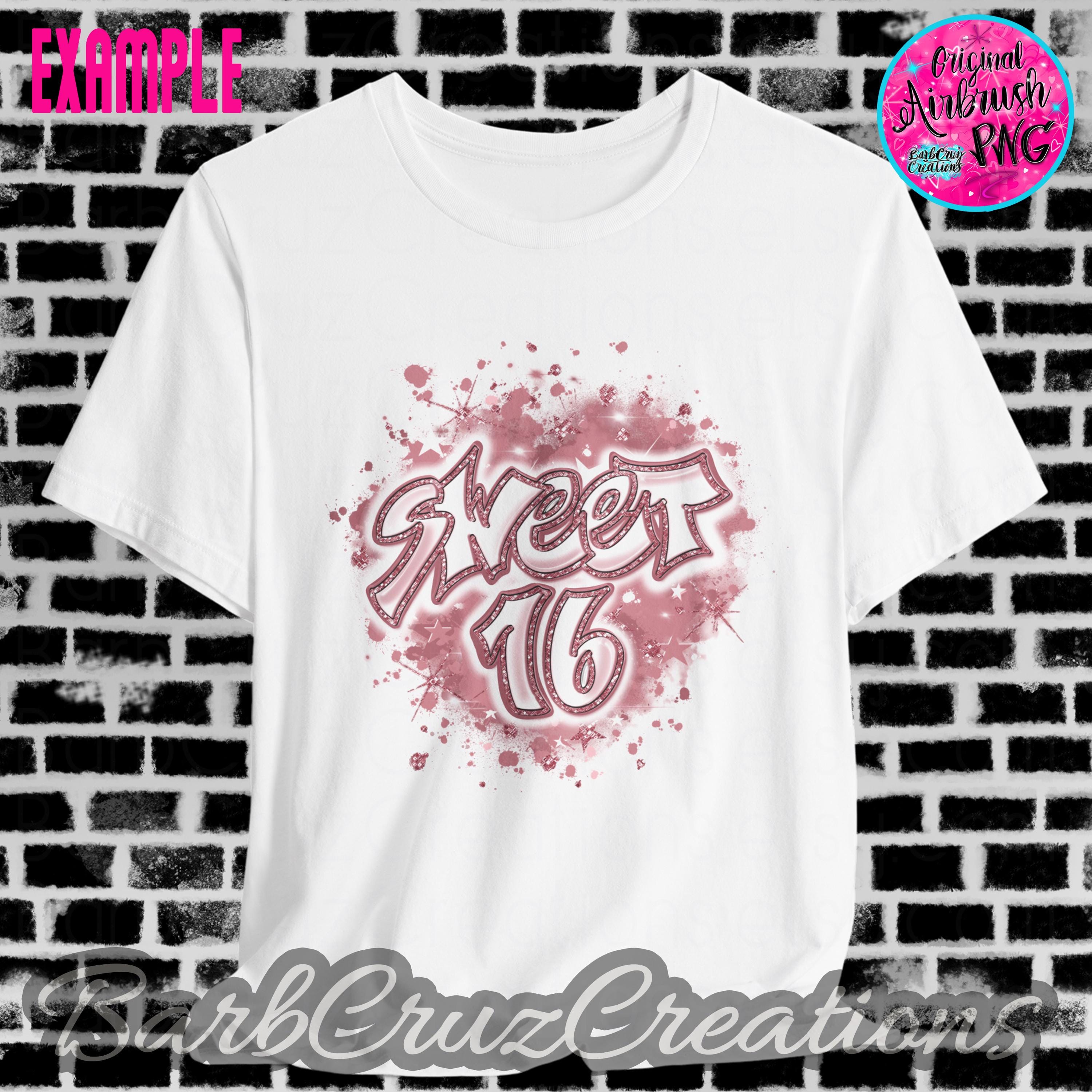 Sweet 16 Airbrush Birthday Rose Gold png, Sixteen bday, Print Designs, Sublimation Designs, clipart, Digital Downloads, pink, glitter