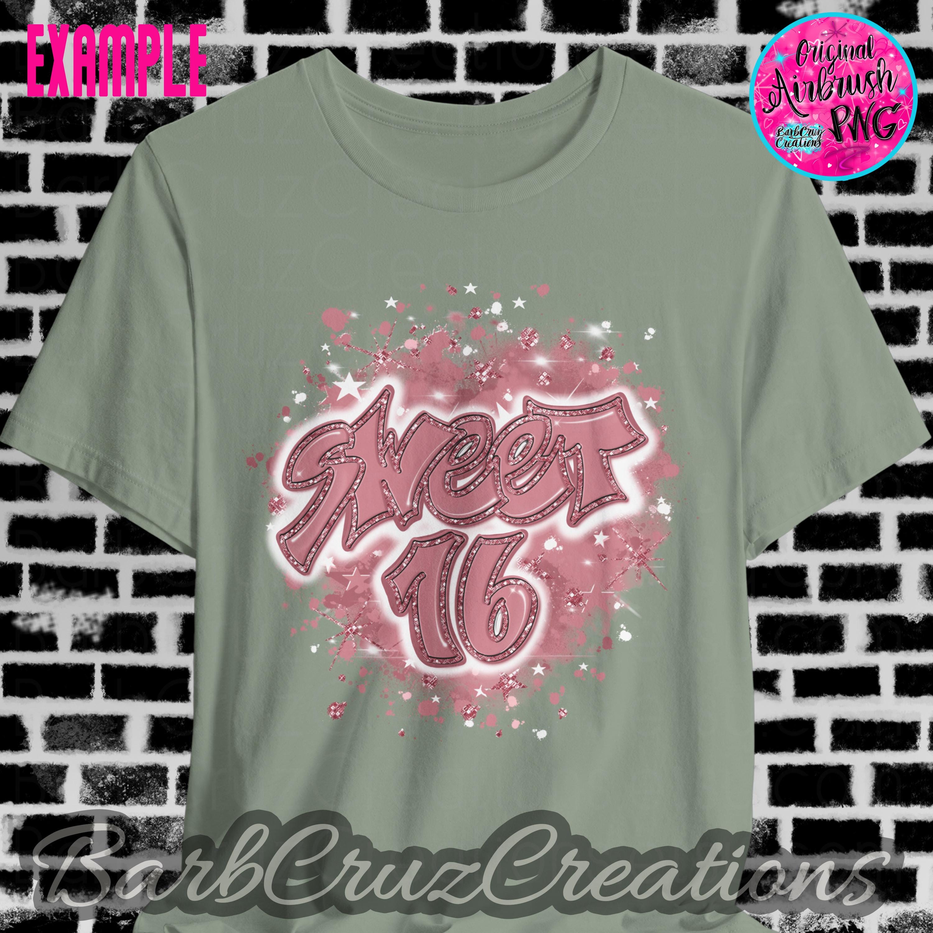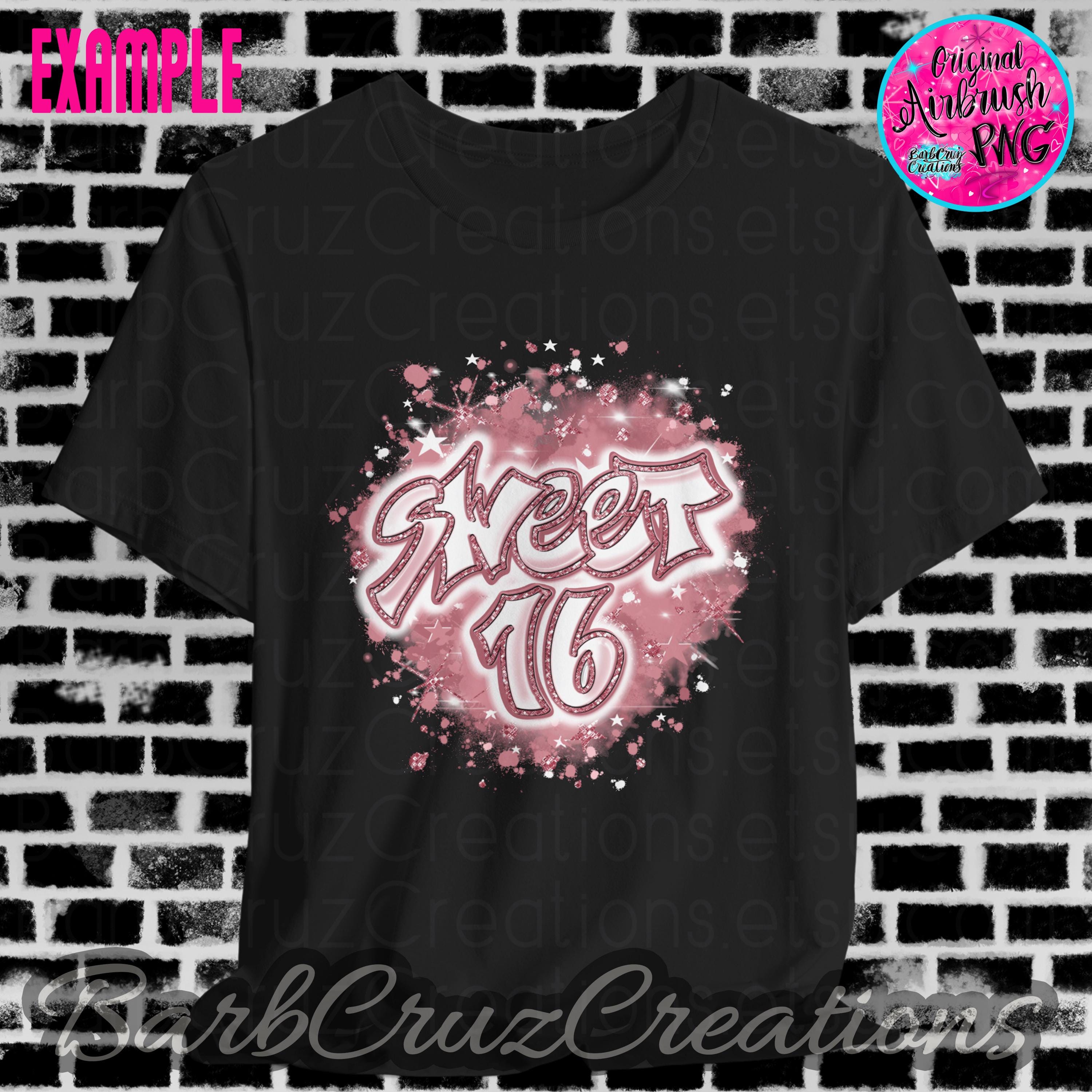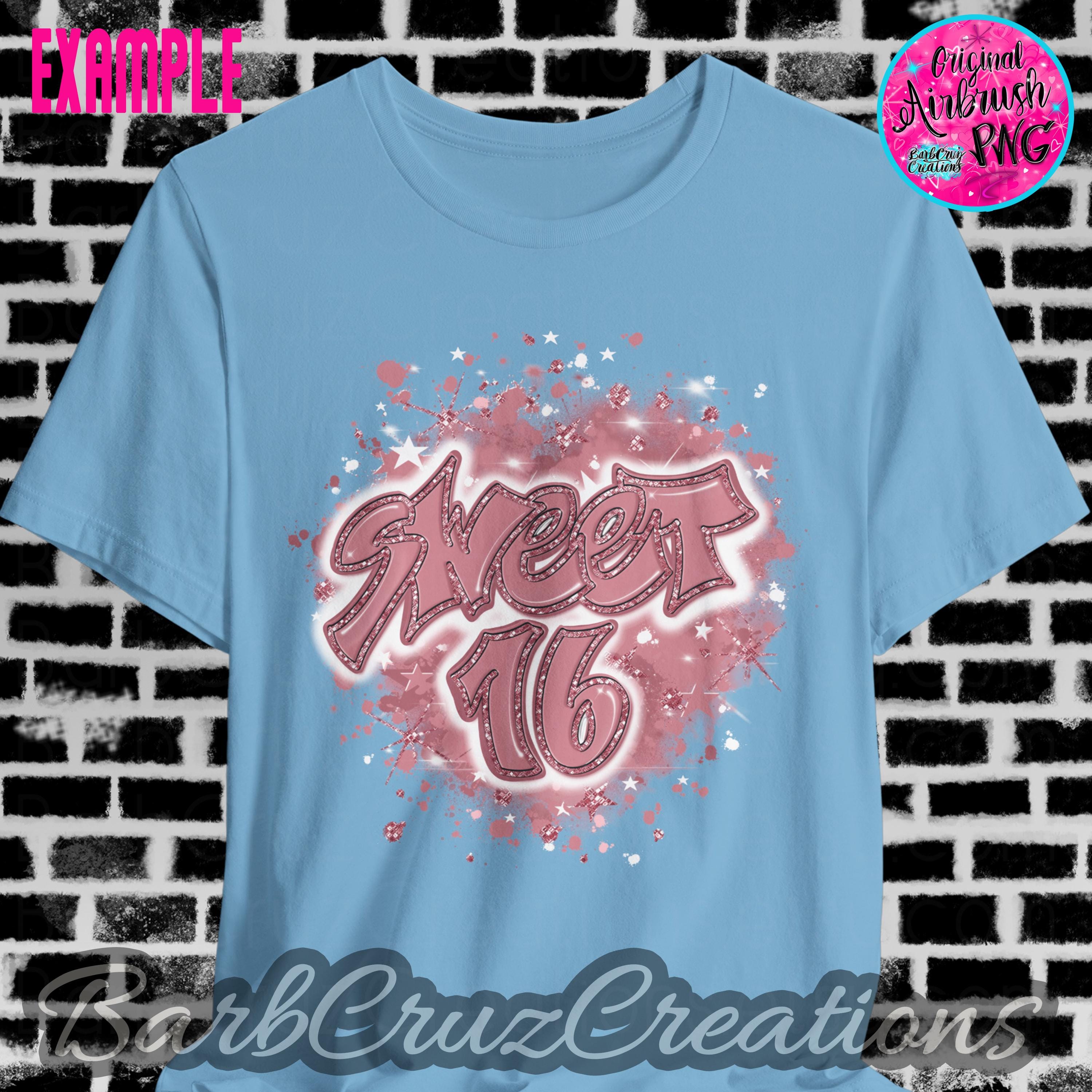 Sweet 16 Airbrush Birthday Rose Gold png, Sixteen bday, Print Designs, Sublimation Designs, clipart, Digital Downloads, pink, glitter