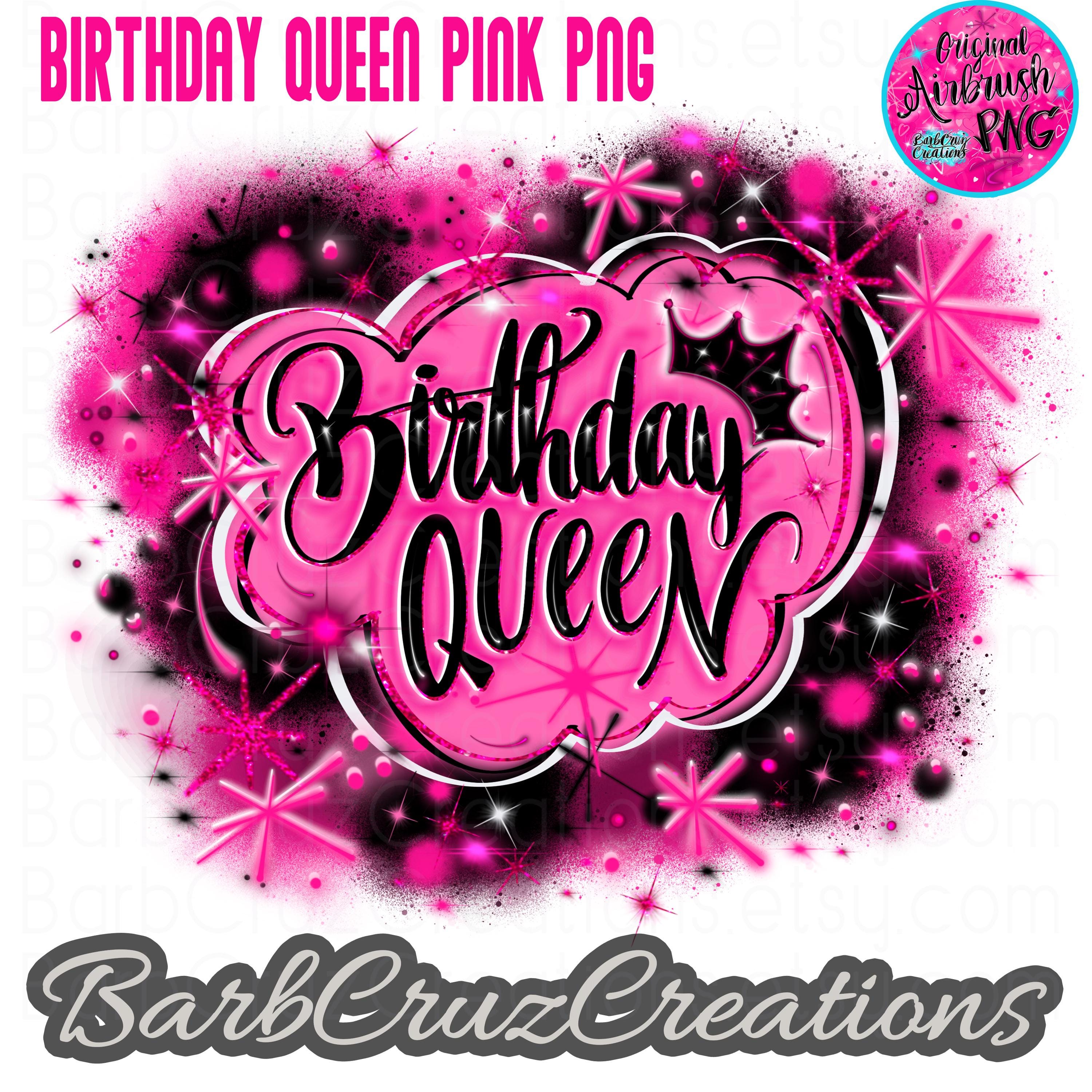 Birthday Queen in pink, black, and white airbrush png - examples not included