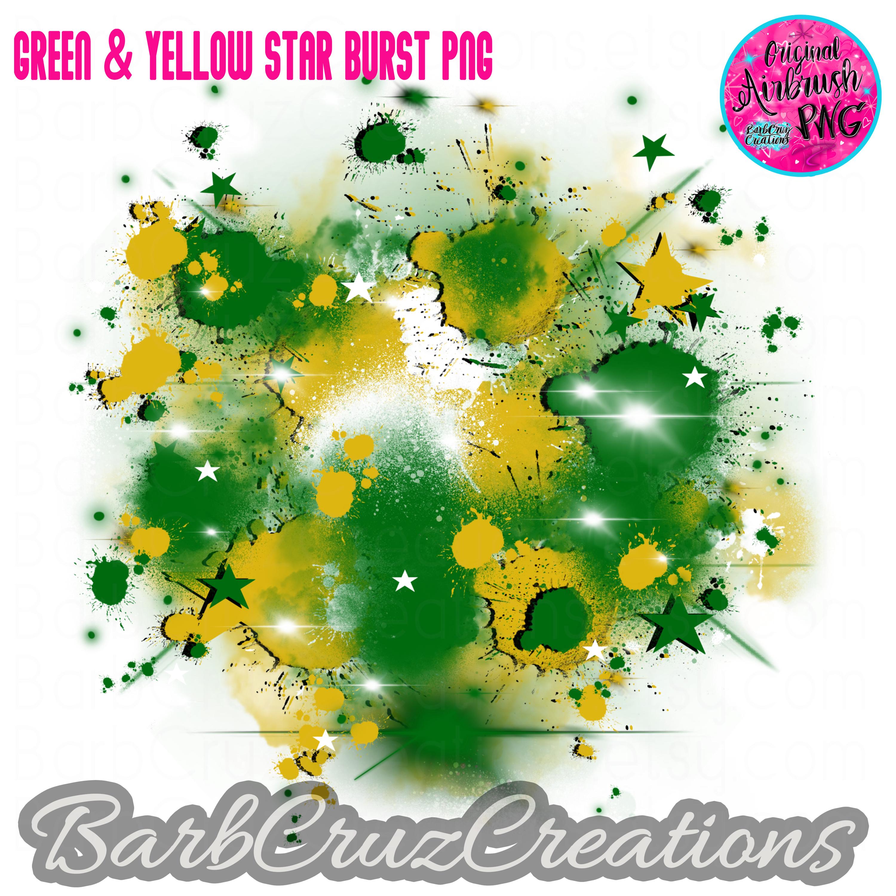 Airbrush png, green, yellow Star Burst, Digital Airbrush, clipart, png, jpg, sublimation, shirt transfer, sports, birthday background