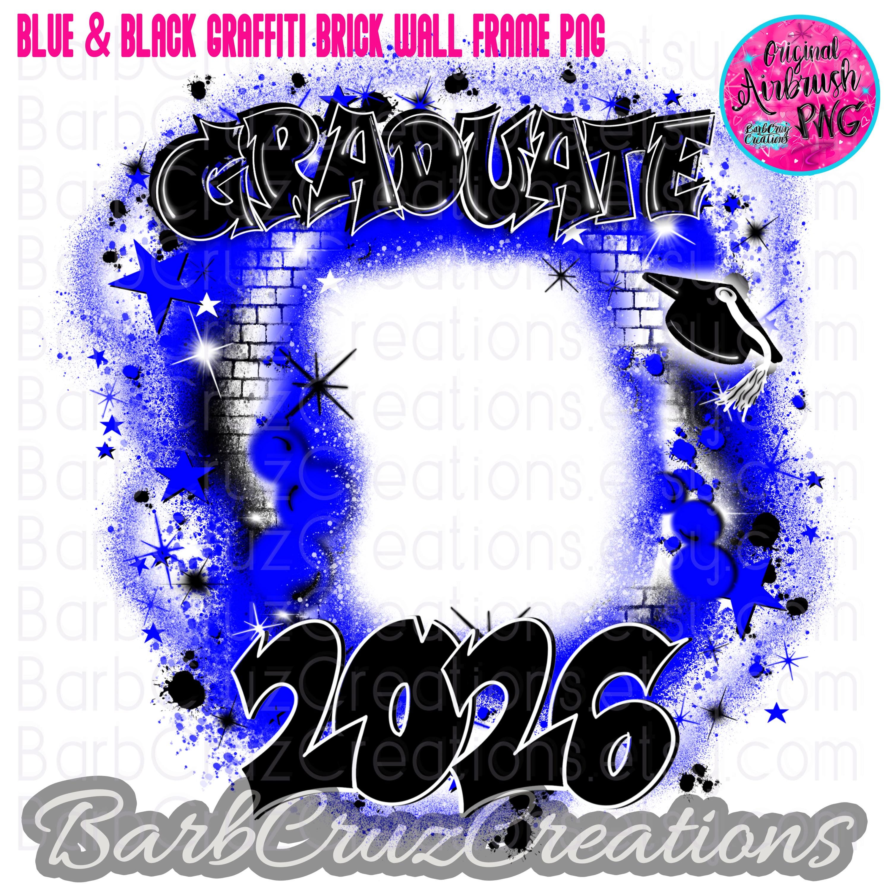 Graduate 2026, 2025, Blue Black Brick Wall Frame, Airbrush Frame Template, DTF, High School, College, Reunion, Senior, Graduation, set