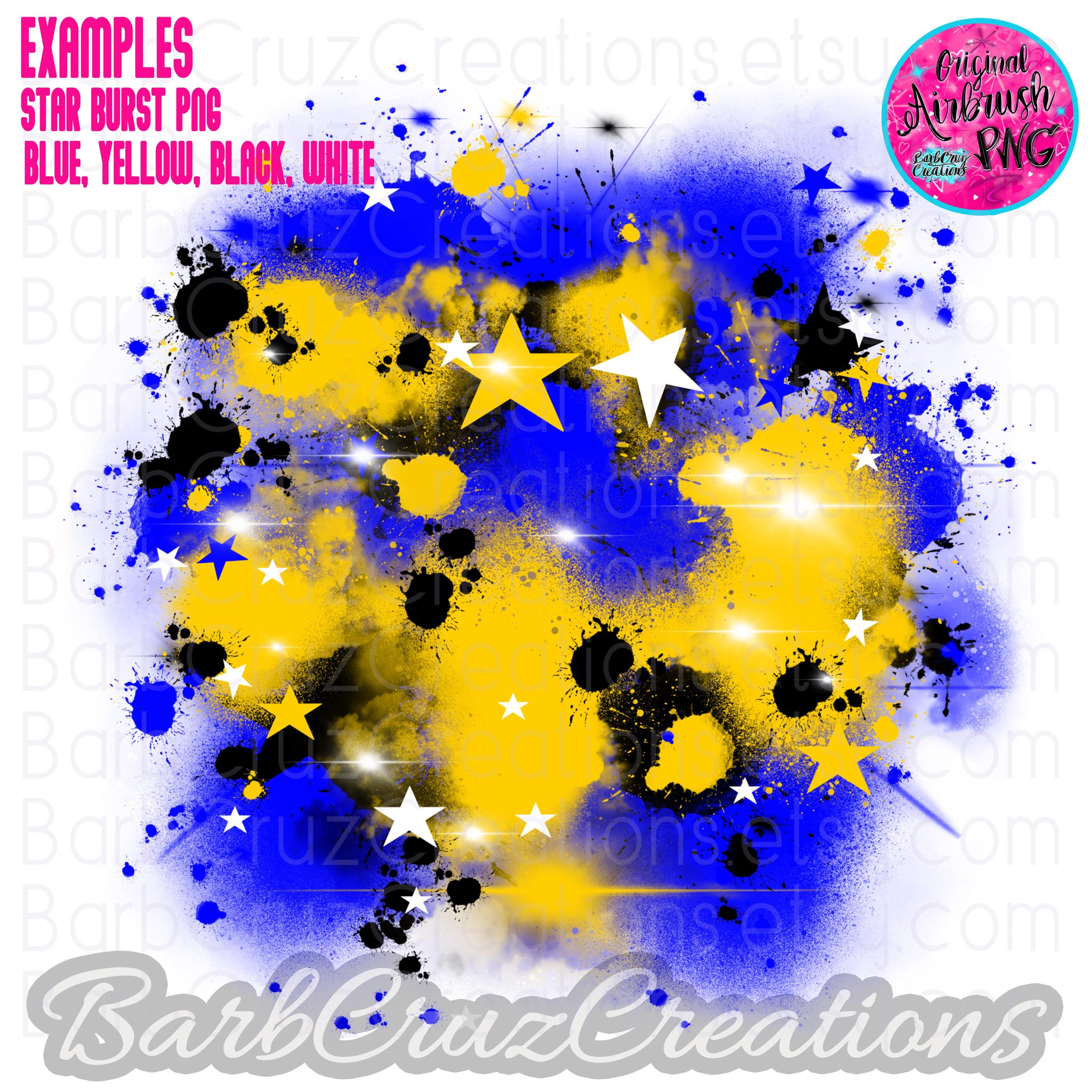 Airbrush png, blue, yellow, Star Burst, Digital Airbrush, clipart, jpg, sublimation designs, shirt transfer, sports, birthday background