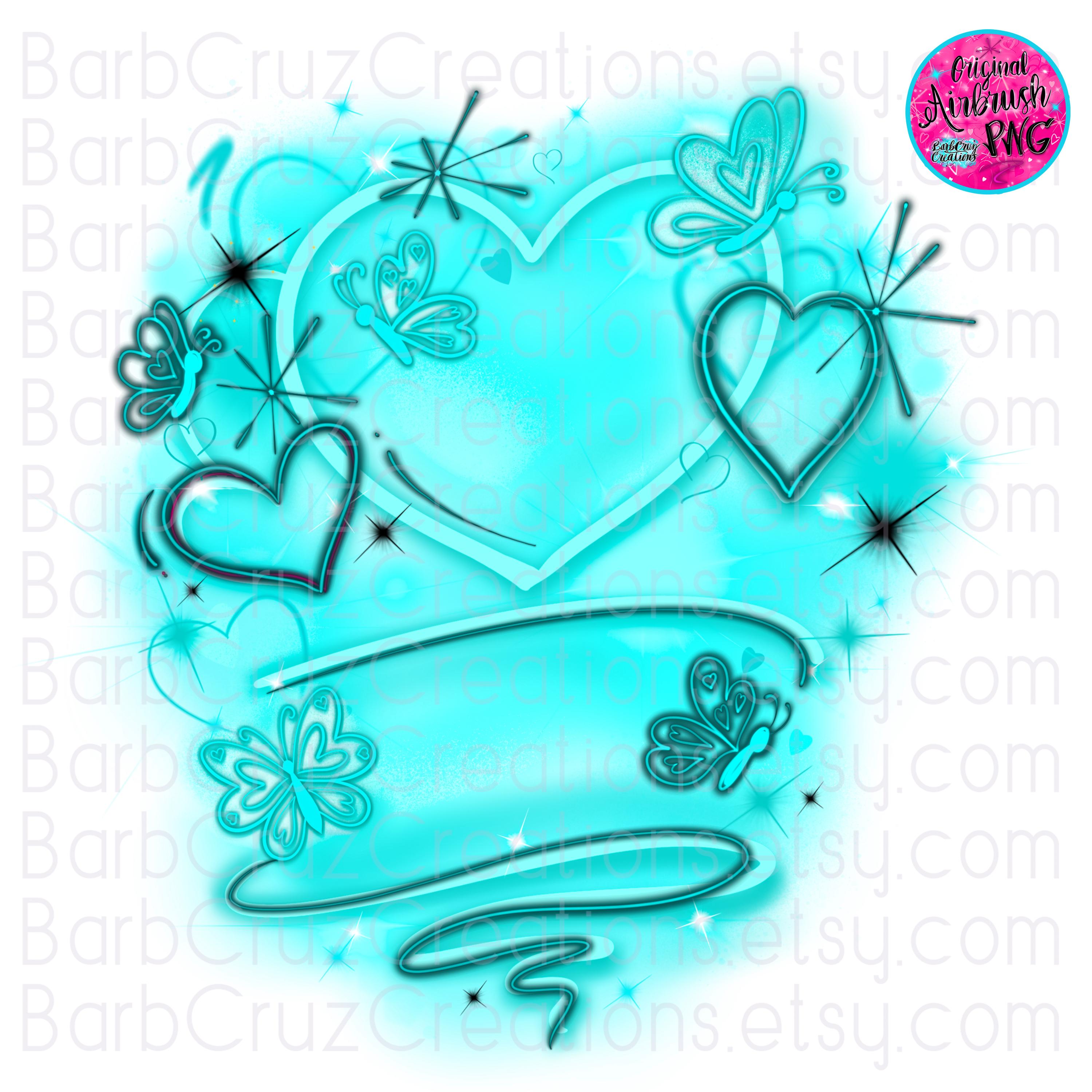 airbrush png, Hip Hop, Hearts, background png, butterfly, graffiti, old school, sublimation, love, retro, 90's vintage, butterflies, Teal