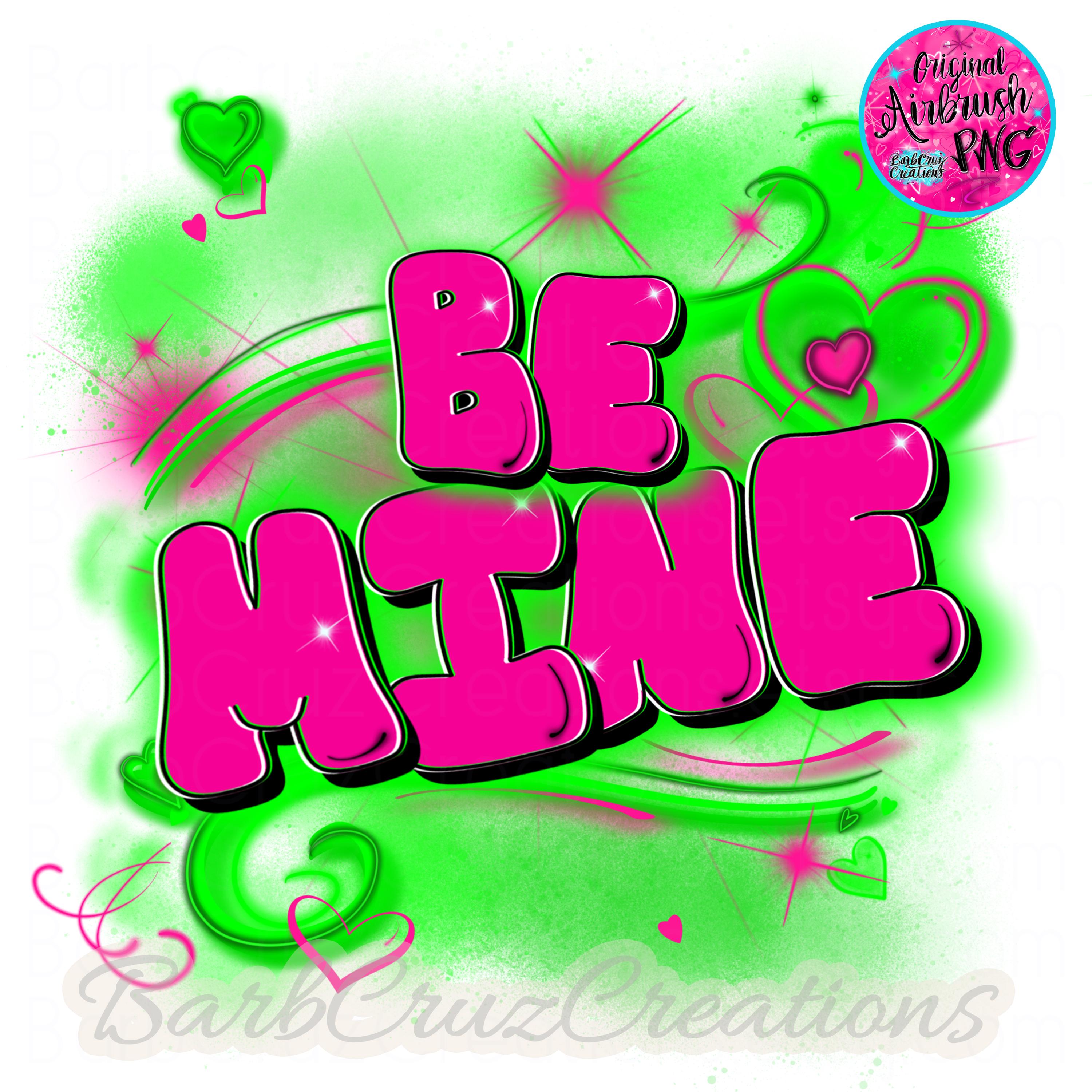 Airbrush Hearts PNG, Pink and Green, Retro 90s Design, Valentine's Day, Airbrush png, Graffiti fun png, sublimation, dtf, Be mine, loved