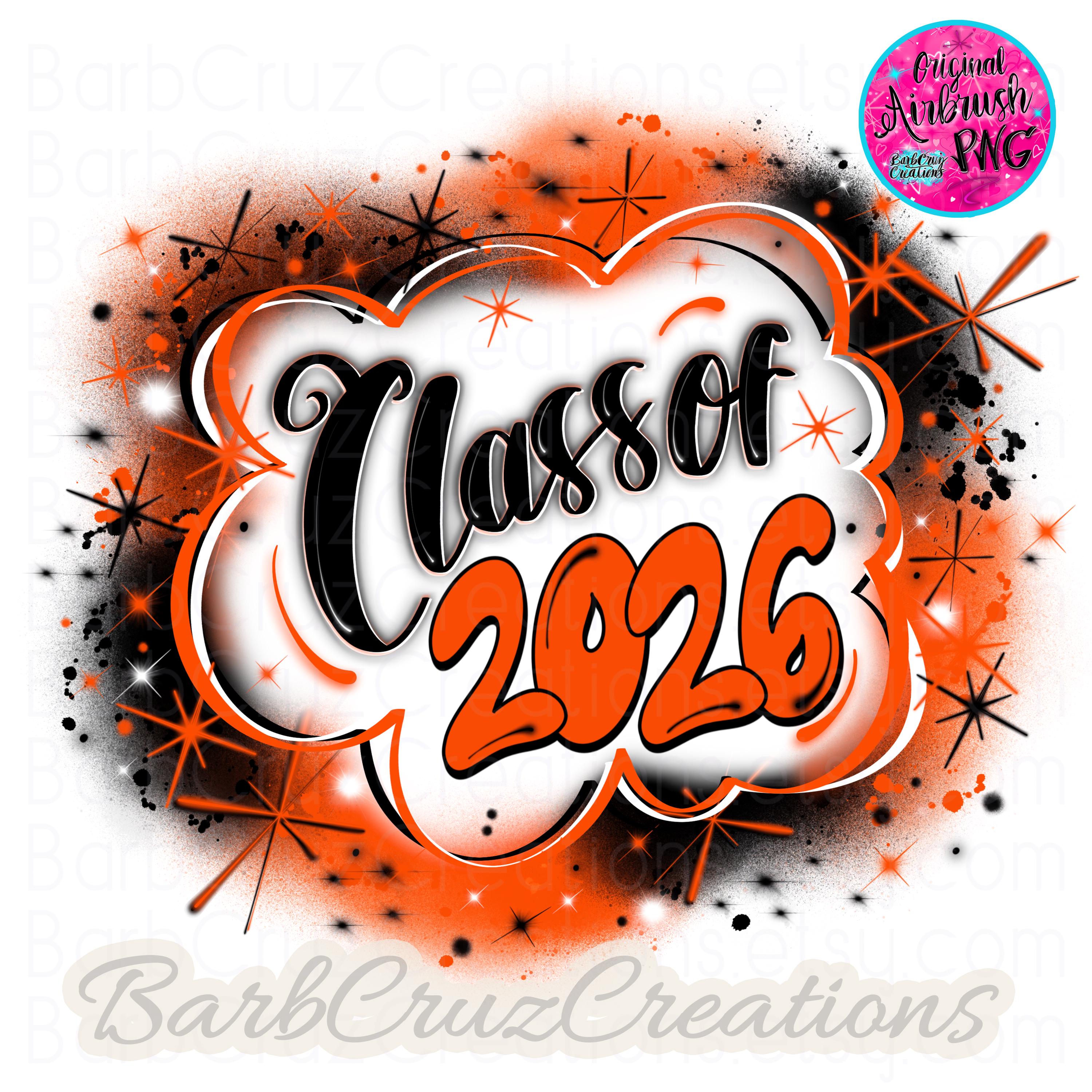 Airbrush Class of 2026 PNG, Graffiti Art Sublimation (Digital Download) Airbrush png, Class of 2025, Senior, DTF, Graffiti, orange, graduate