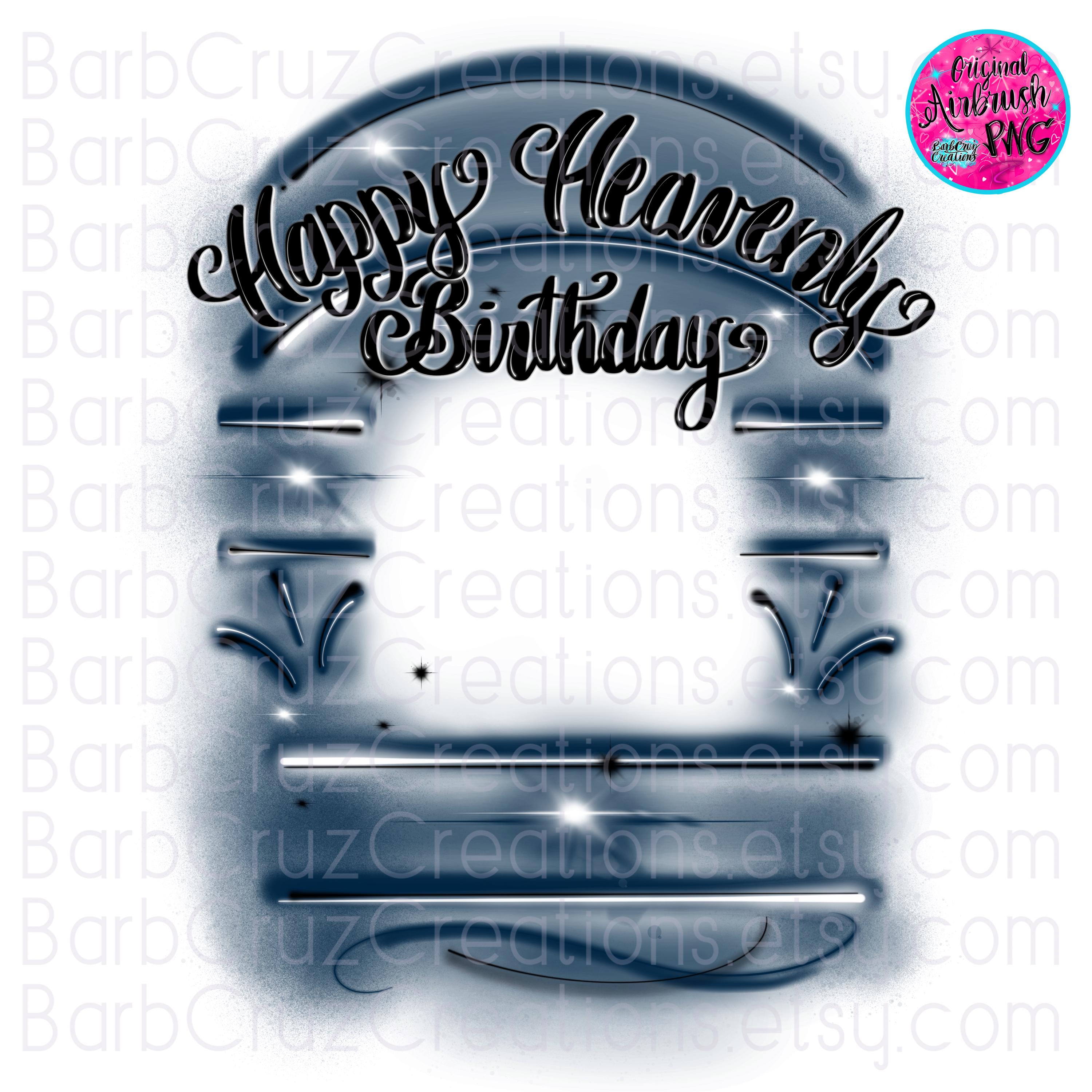 Airbrush png, Happy Heavenly Birthday, RIP, Airbrush Frame, In Memory of, Sublimation Designs, DTF, Template, Custom, memorial, Dark Blue
