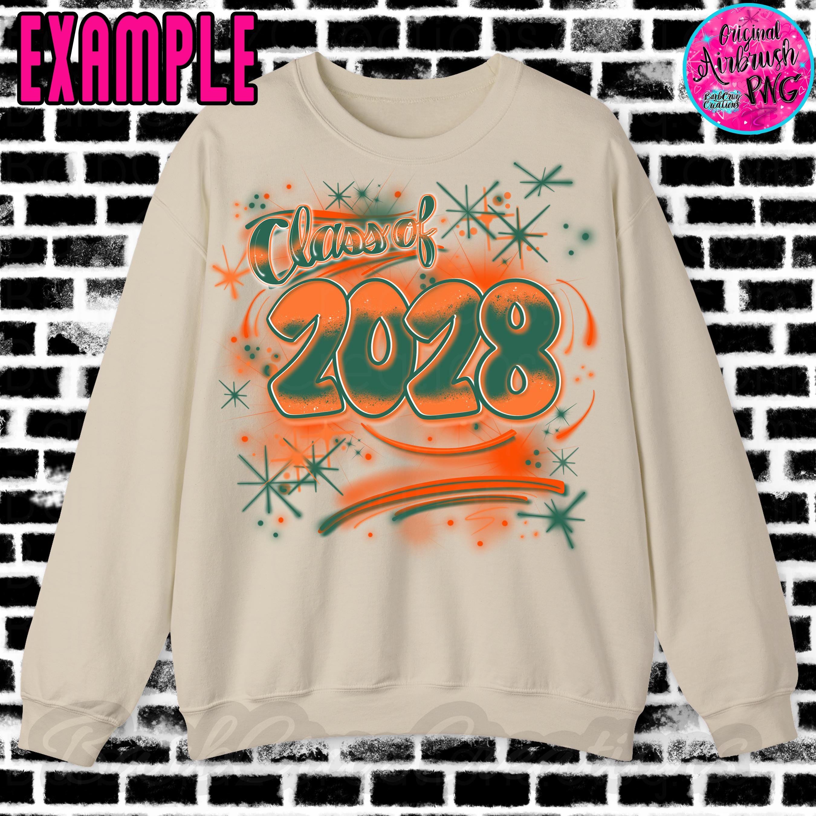 Airbrush png, Class of 2028, orange & green, Senior, Digital Airbrush, Graffiti designs, Sublimation, Graduate, school reunions, class of