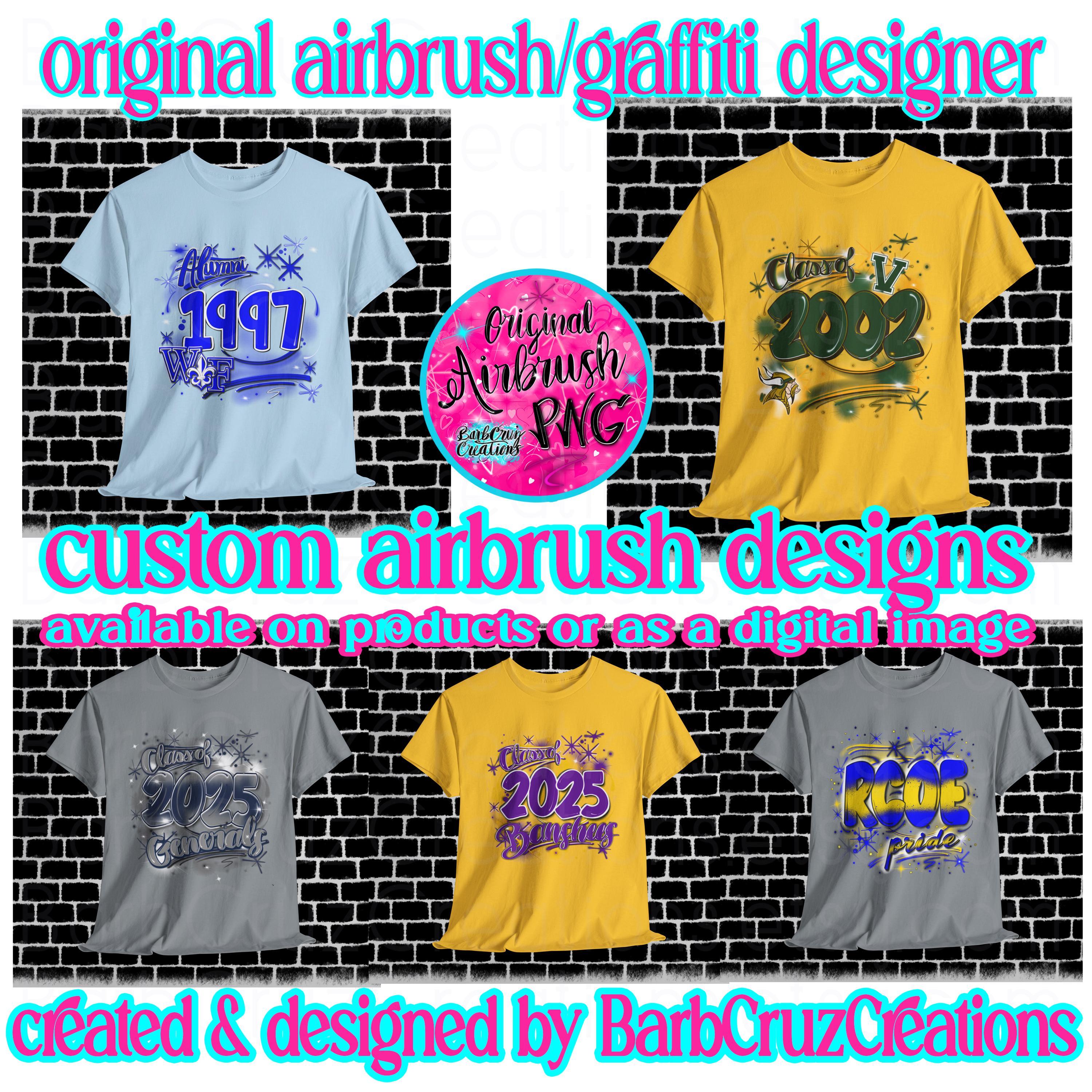 Thank you for ordering with me, I’m super excited to create your airbrush design & custom shirt!!! This purchase is for 4 custom airbrushed digitally tshirts. You can choose from any design in my shop and colors/designs/sizes can be mixed matched.