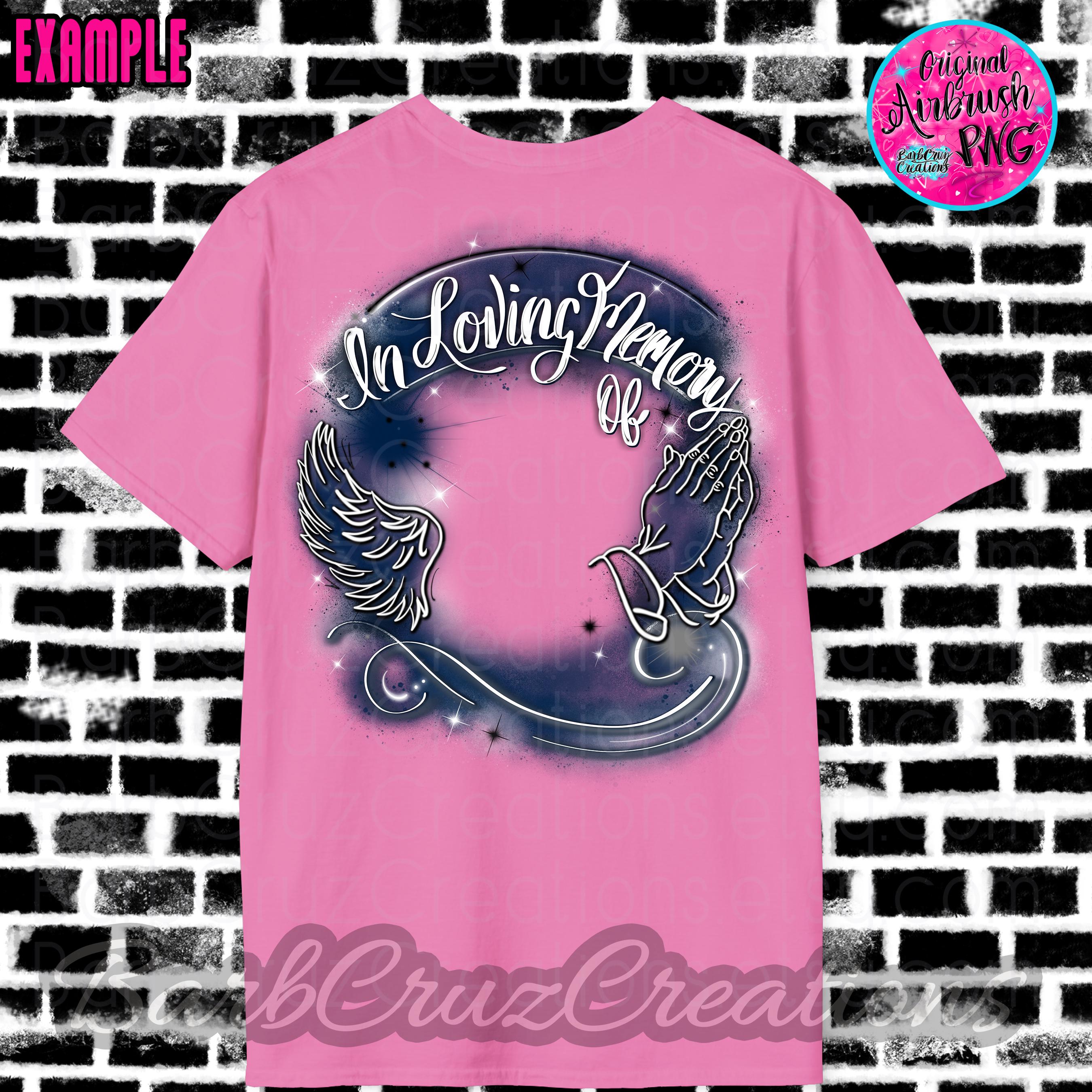 Airbrush png, Siempre en Nuestro Corazones, Always in my heart Spanish png, In loving Memory of, RIP, White, Light Blue Airbrush Frame, DTG