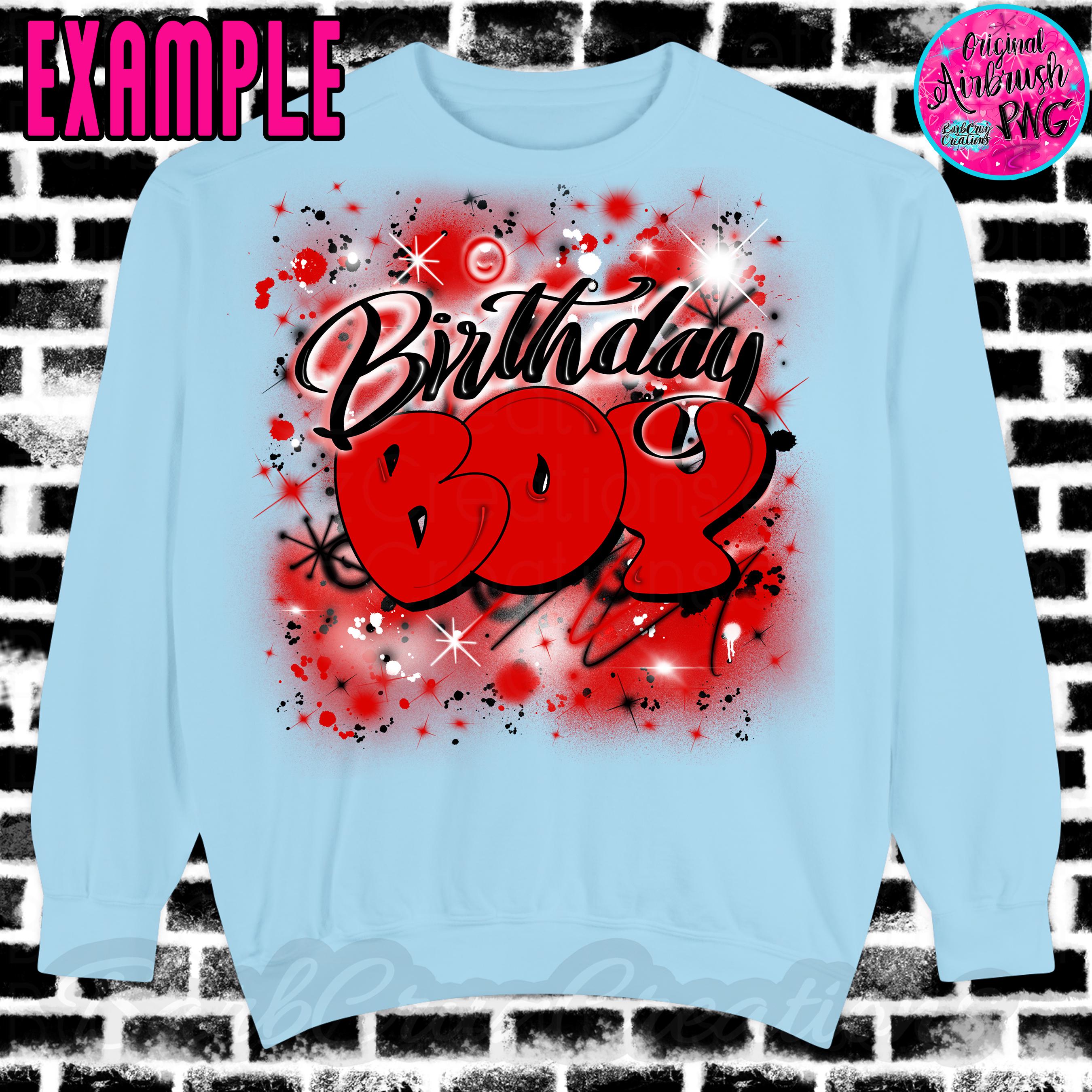 Airbrush png, Birthday Girl, Boy red, black, add age, sublimation, retro birthday Shirt, Backdrop, Party Invitation 90s, hip hop, old school