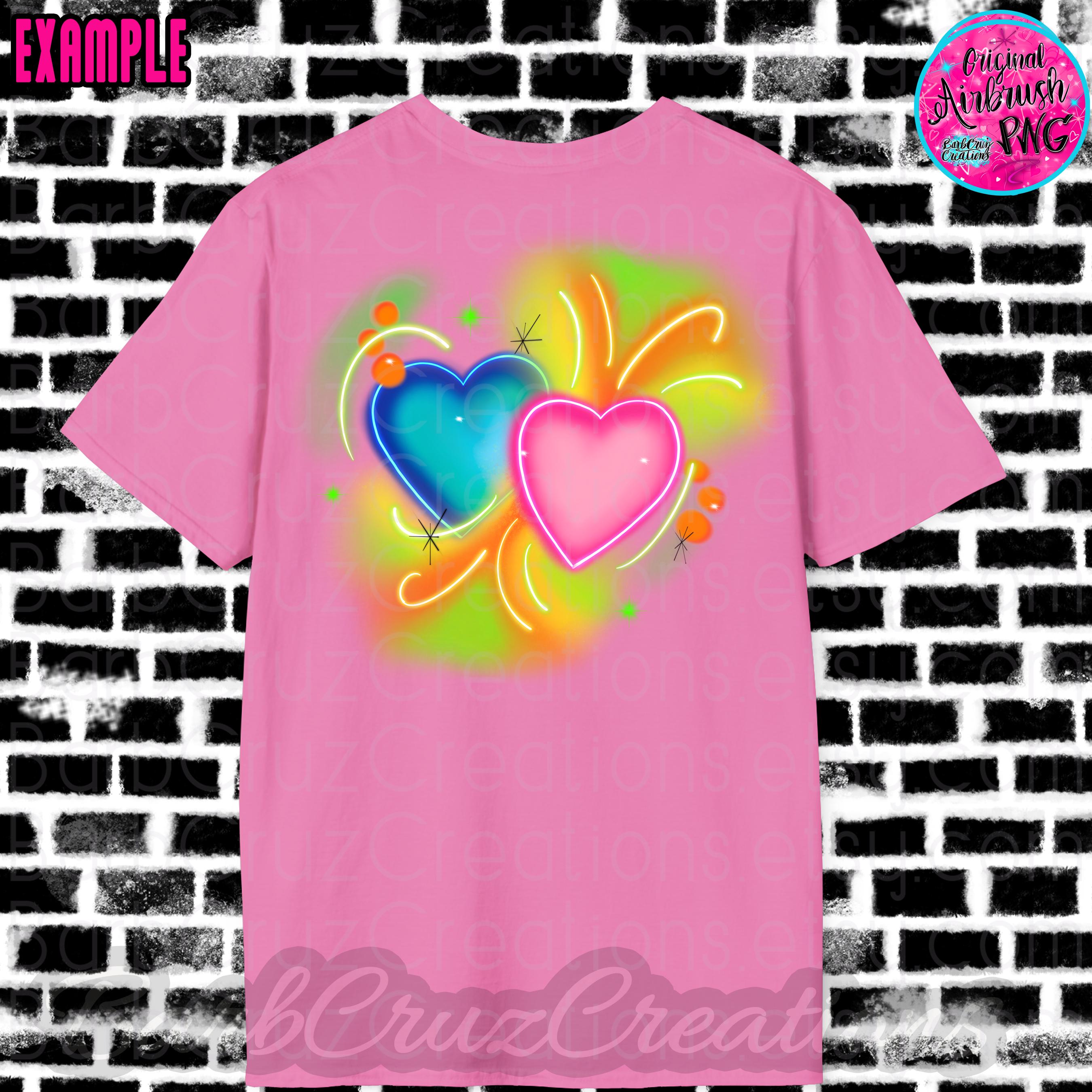 Please choose your airbrush digital design from any of the pre made backgrounds, I can add the name, date, short message, or year to your shirt OR choice from any design in my shop.