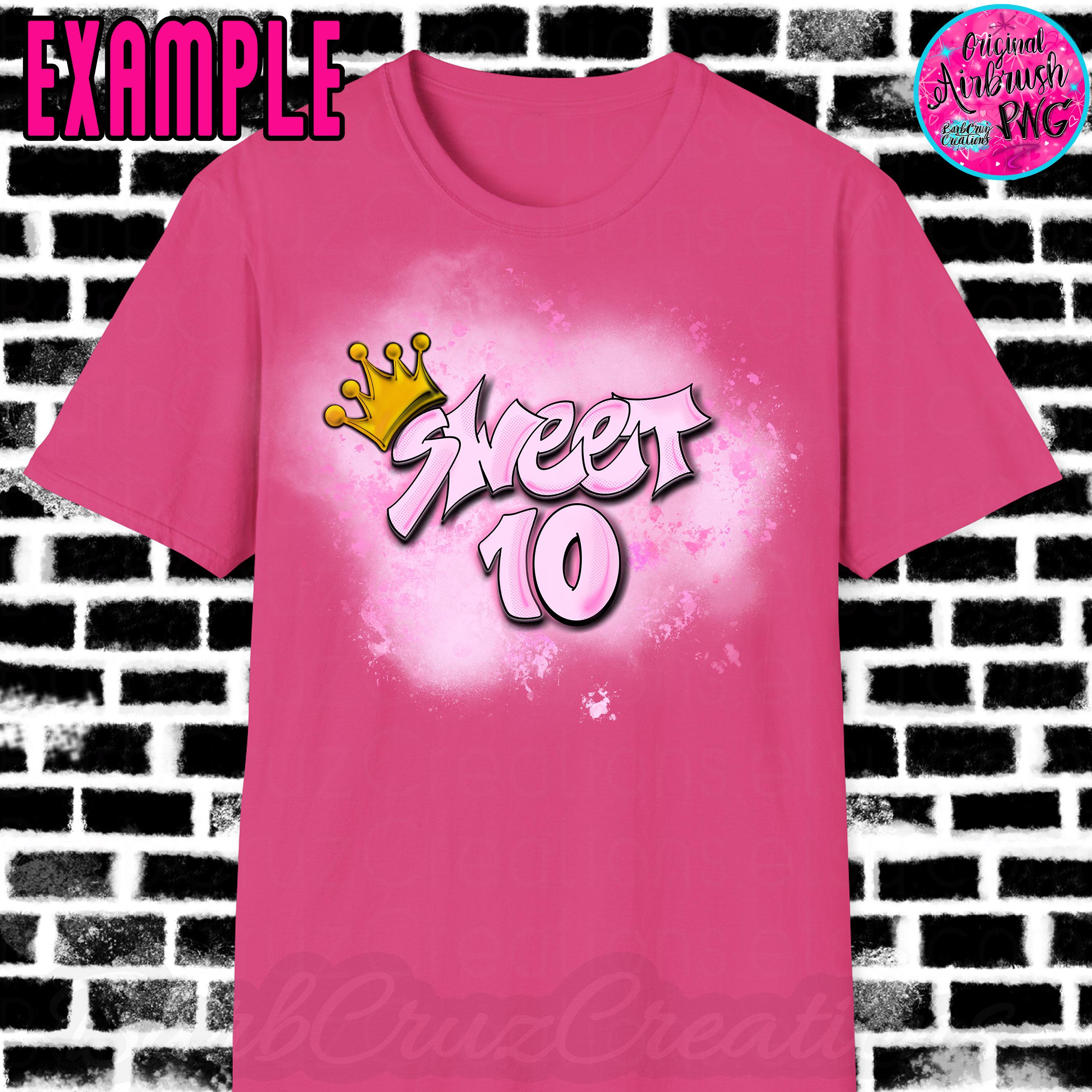 Airbrush png, Trendy Sweet 10th Birthday png, Light Soft Pink, Tenth, bday, crown, Birthday Shirt, Sublimation Designs, Digital, 10th bday