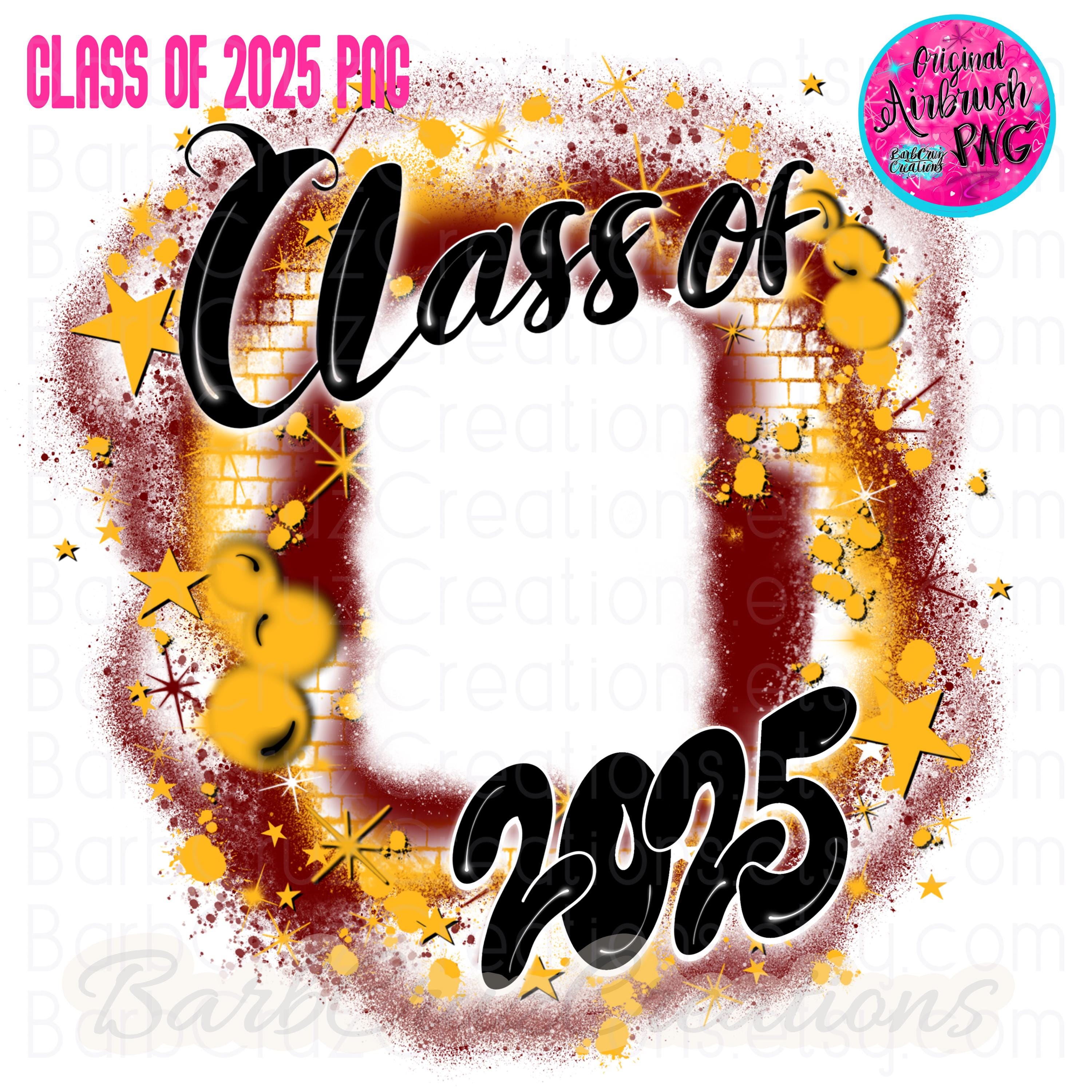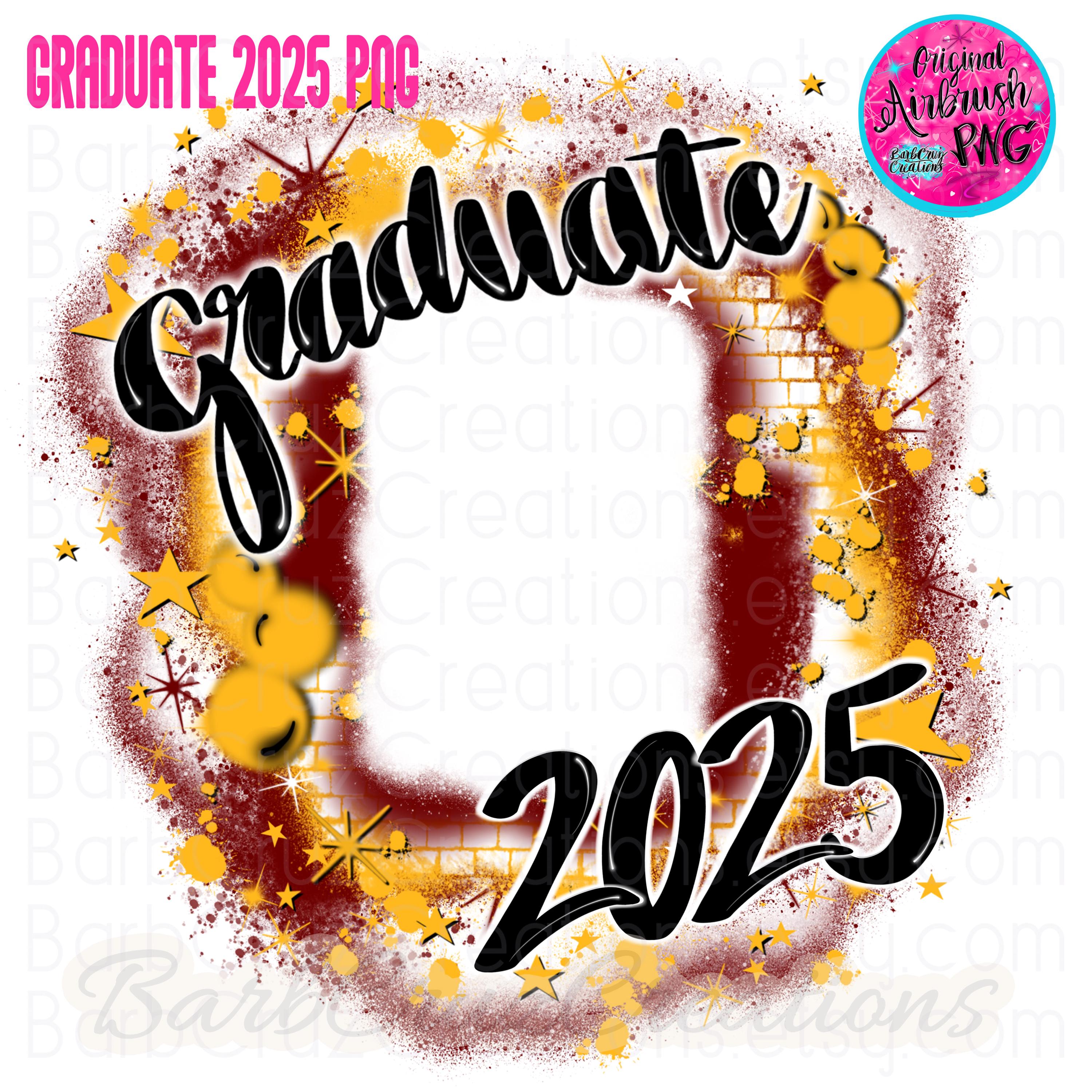 Airbrush png, Graduate 2025, Red, Gold, Brick Wall, Frame, Spray Paint, Frame Template, DTF, High School, Reunion, Senior, Graduation