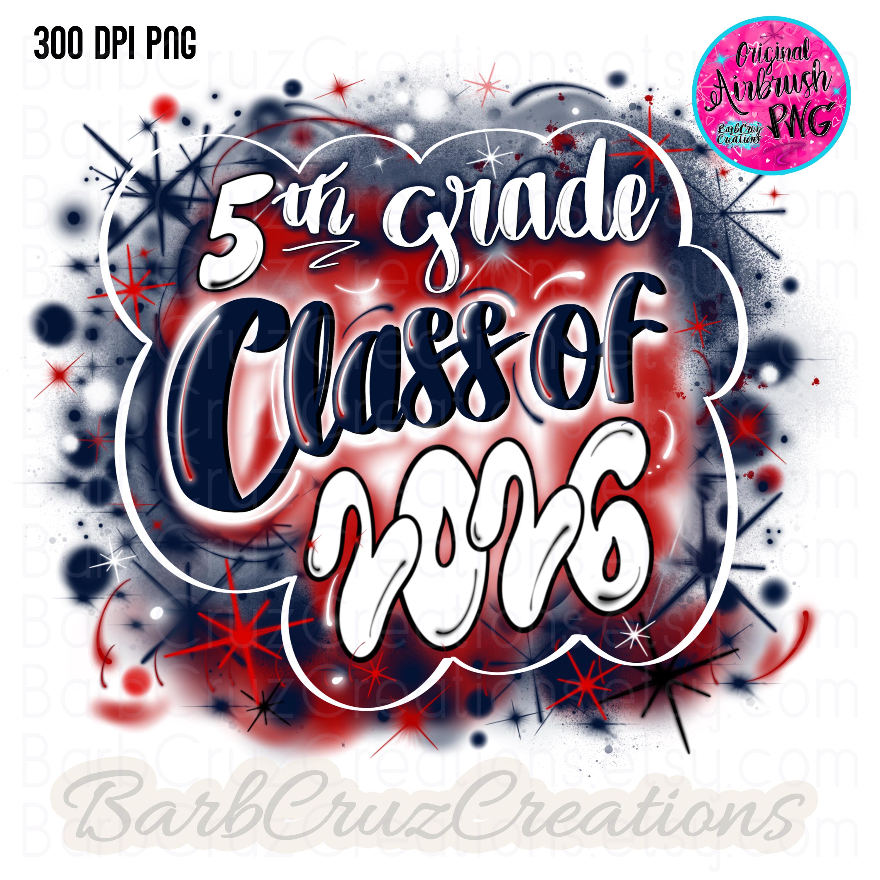 Airbrush Class of 2026 PNG, 5th Grade, Red Blue Graffiti (Digital Download), Airbrush png, Class of, 5th grade, Graduate, Sublimation