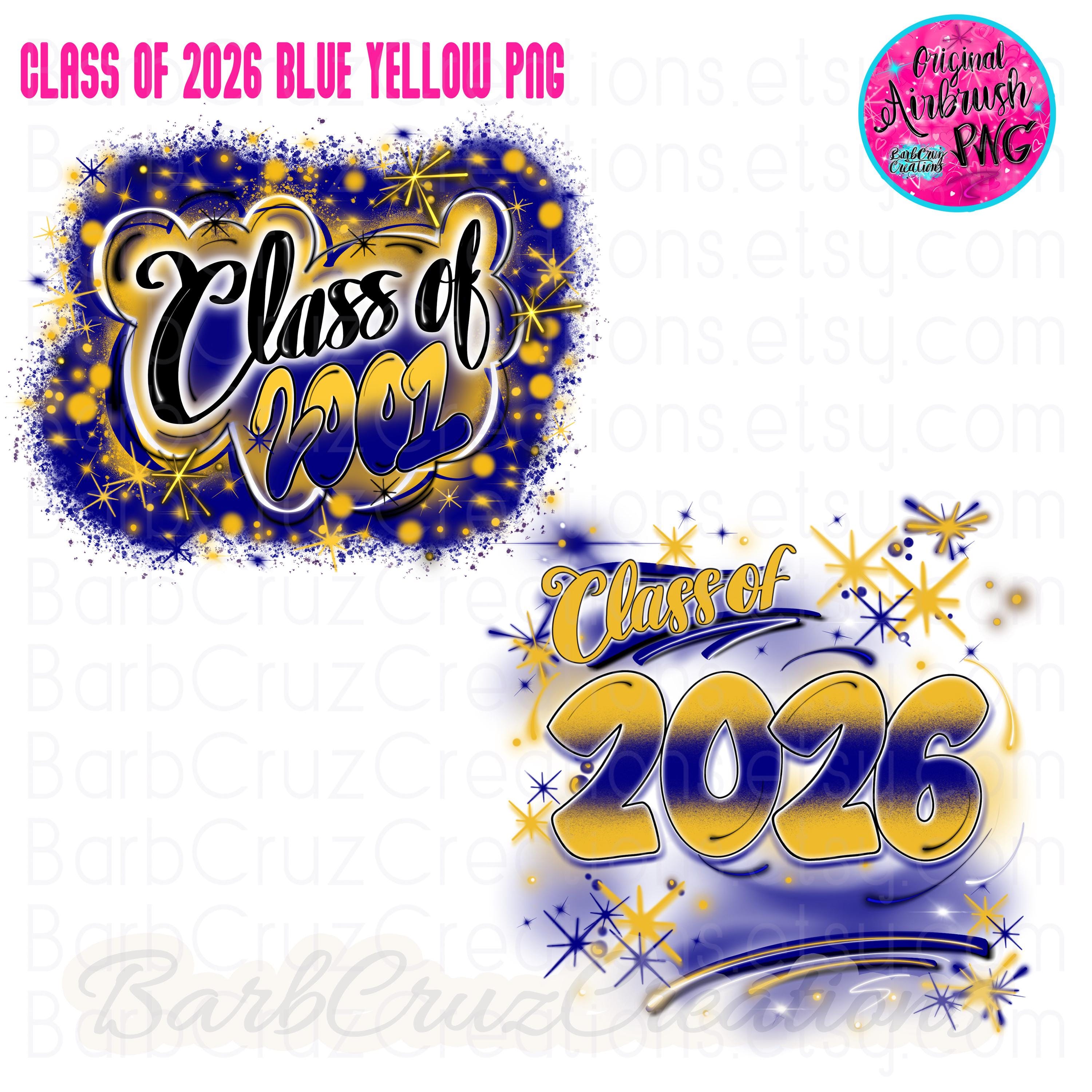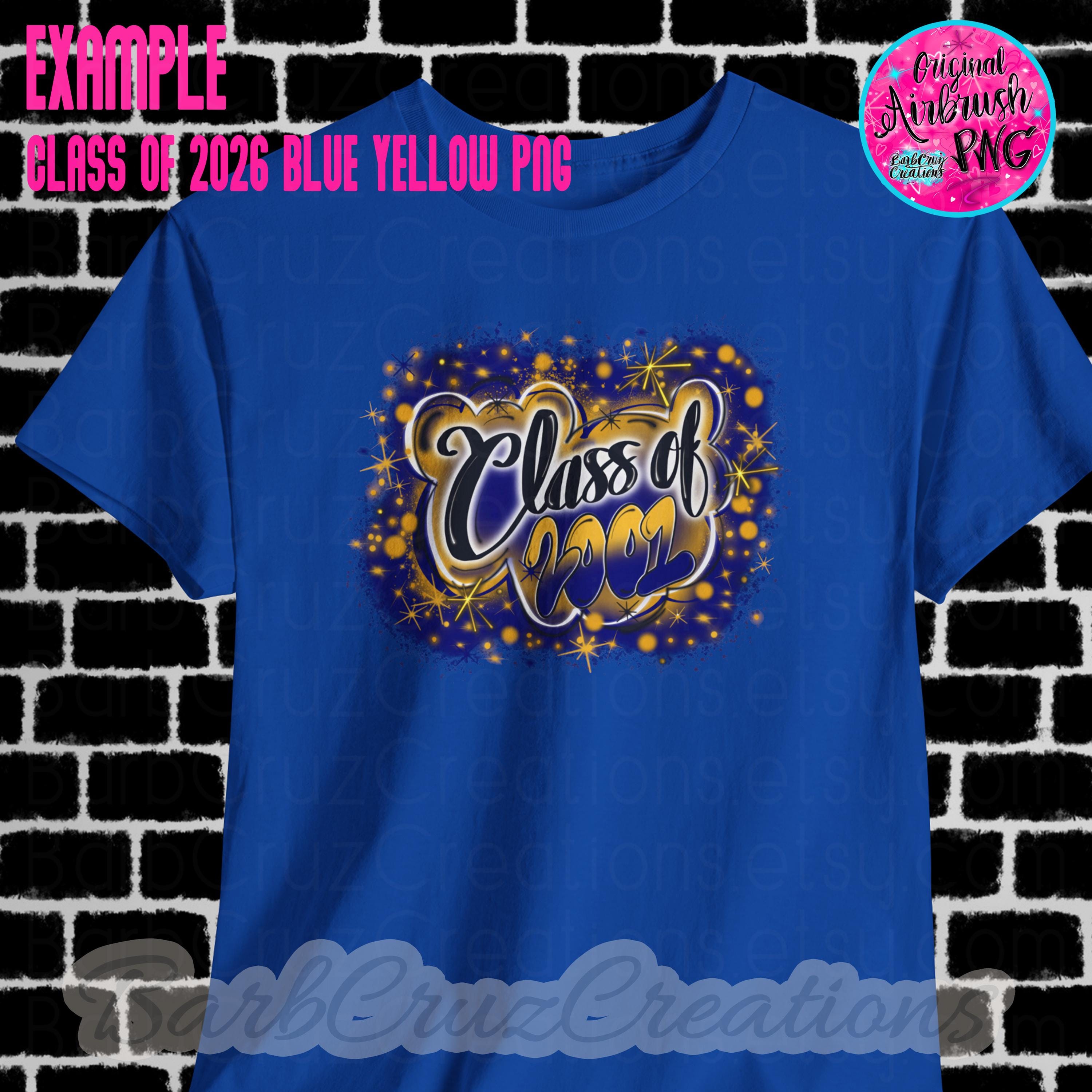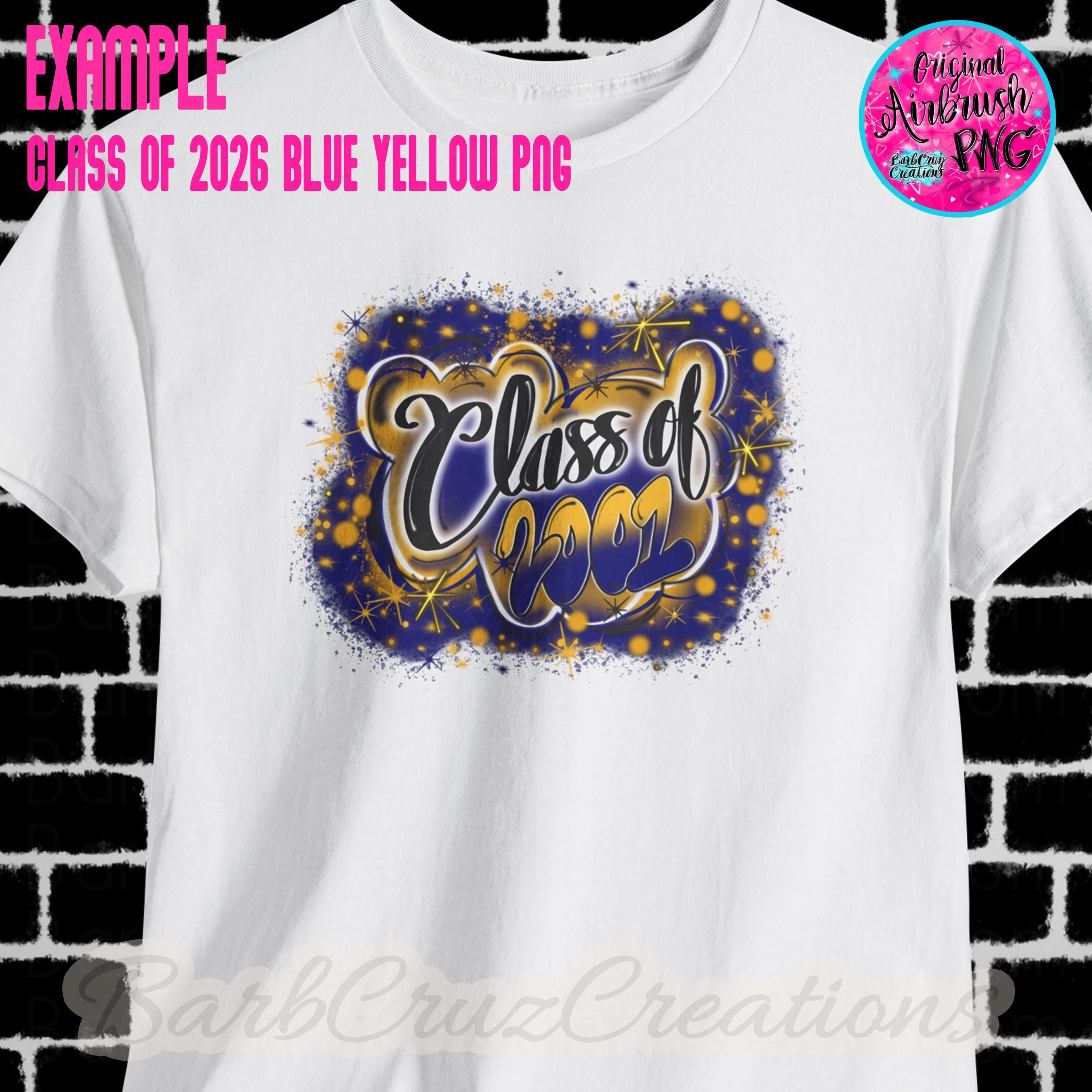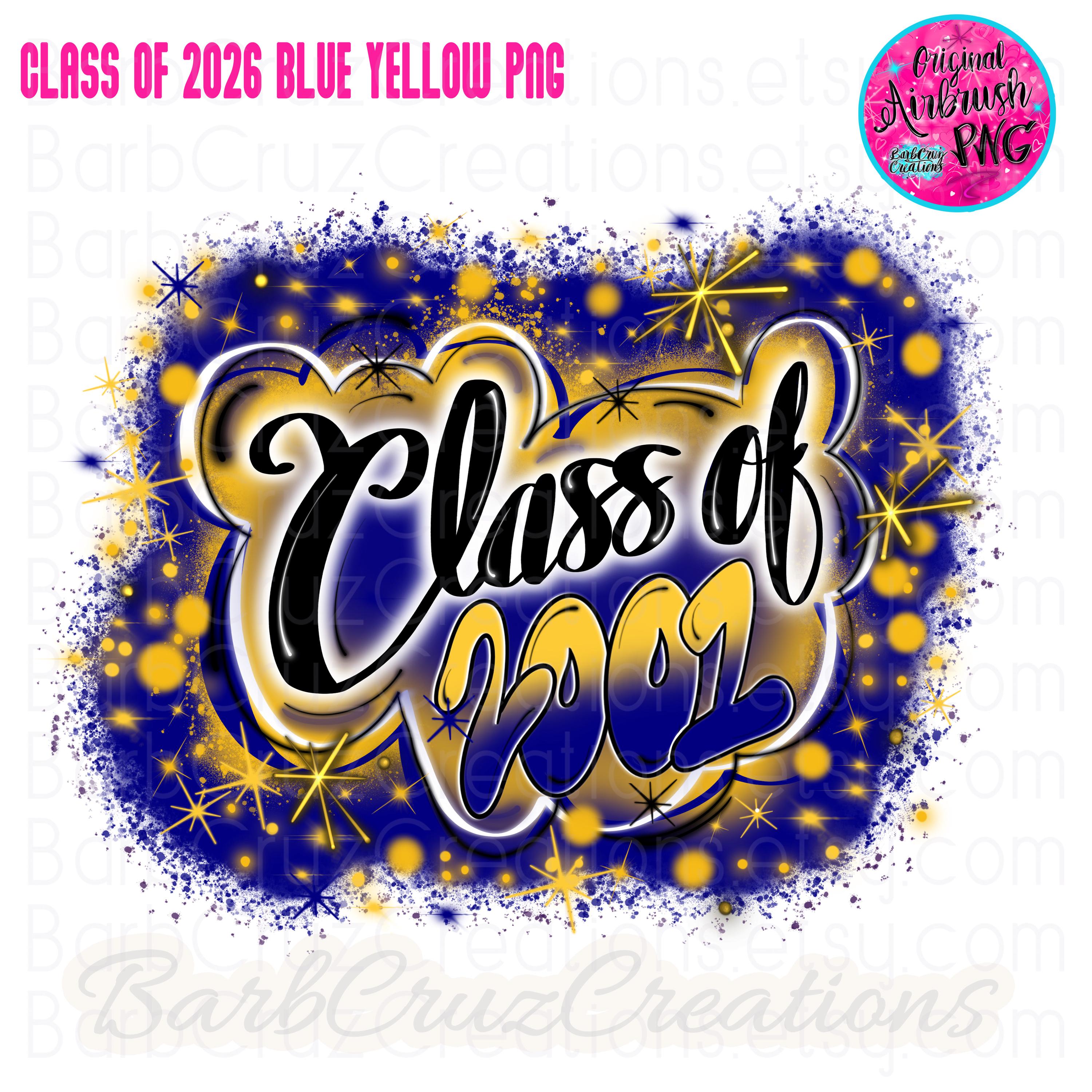 Airbrush png, Class of 2025, 2026 blue, yellow, Sublimation Design, Digital Download, Graffiti Shirt png, High School Senior, College, DTG