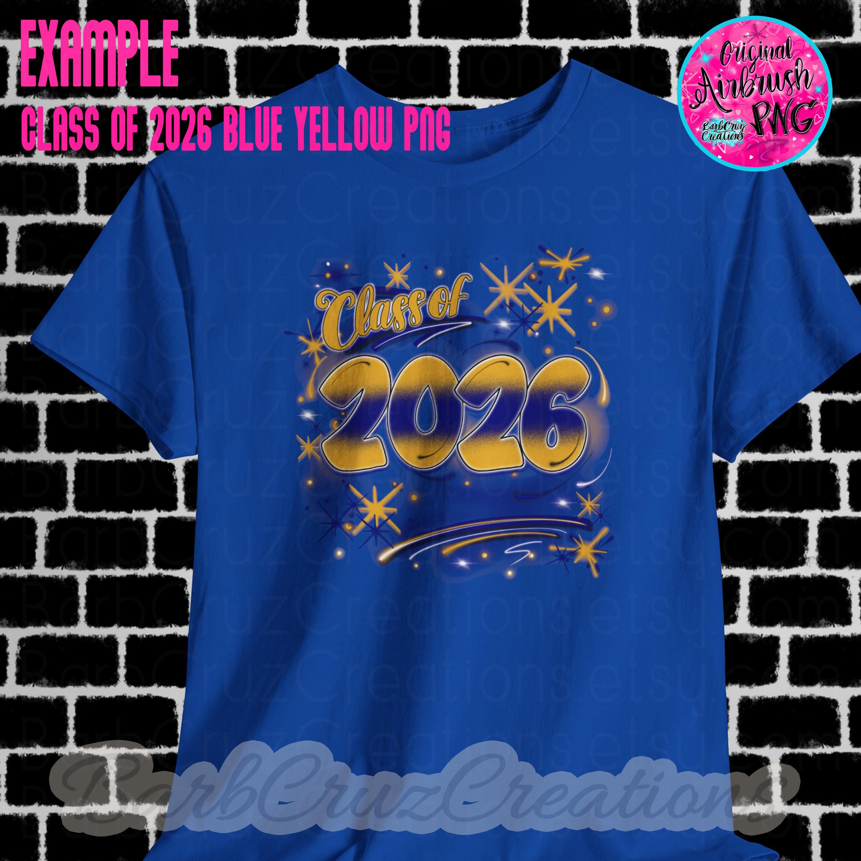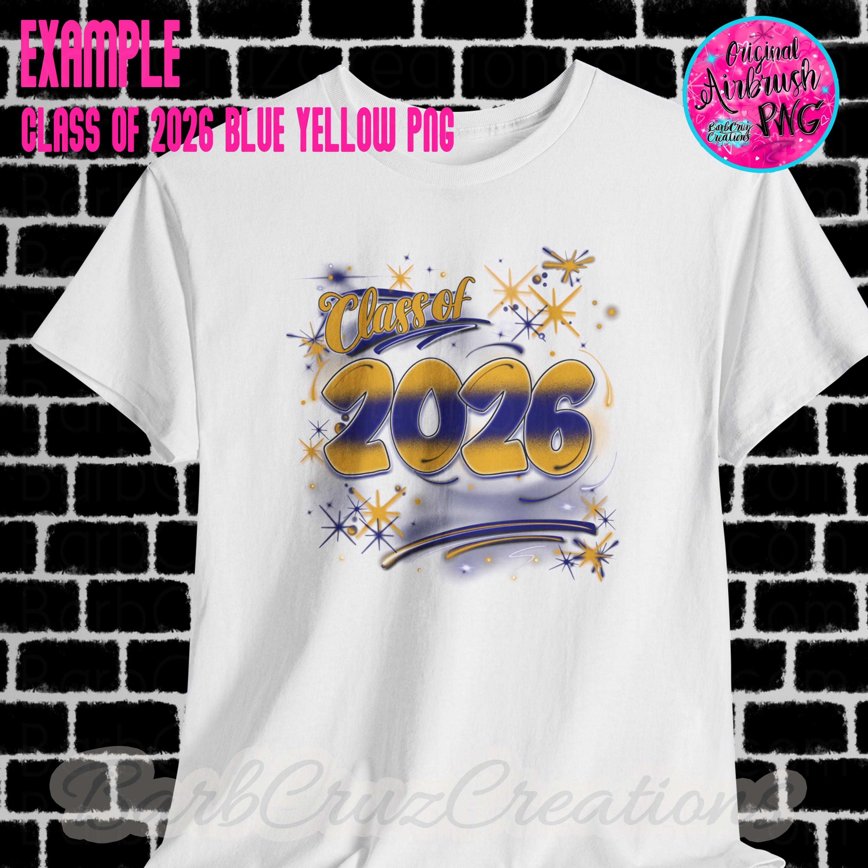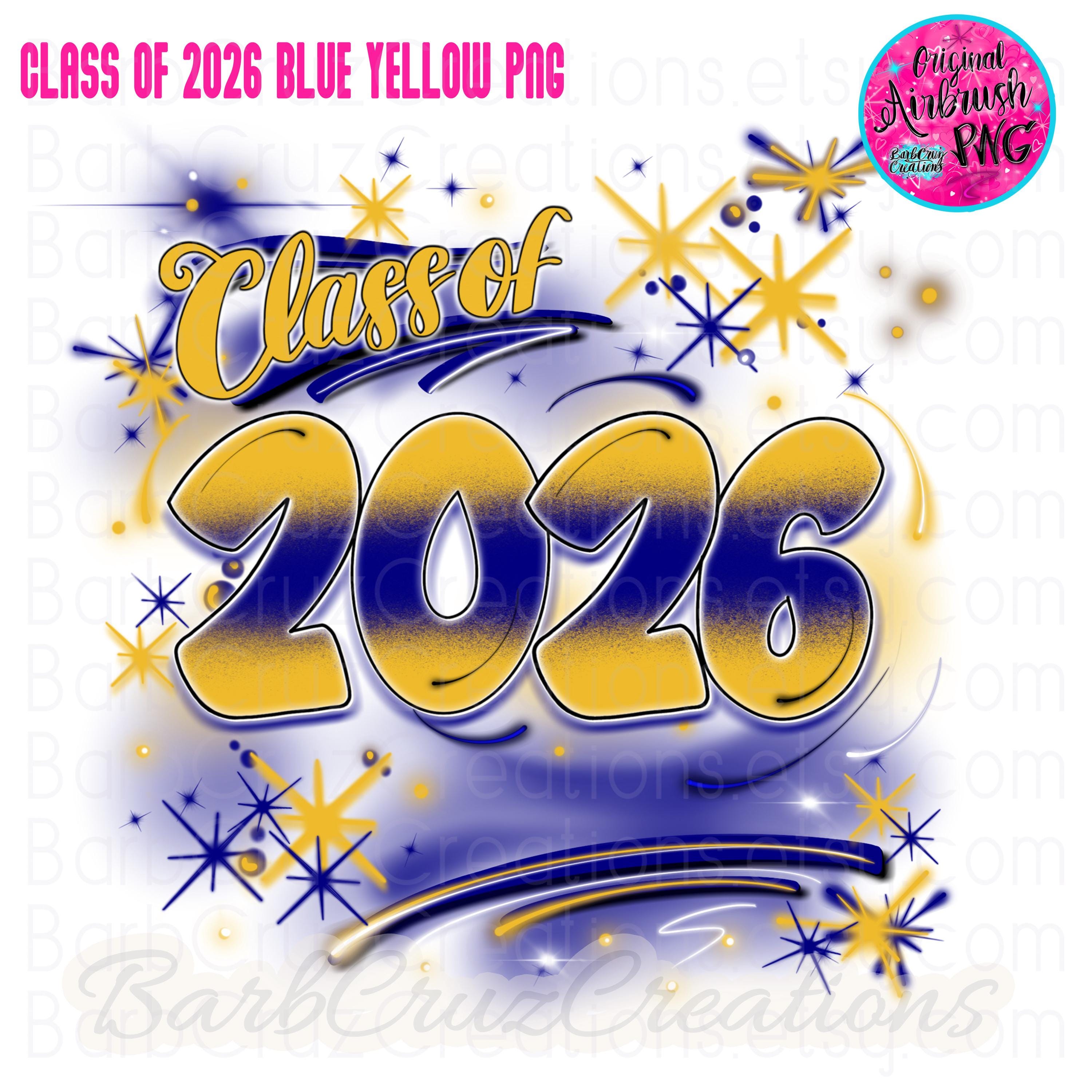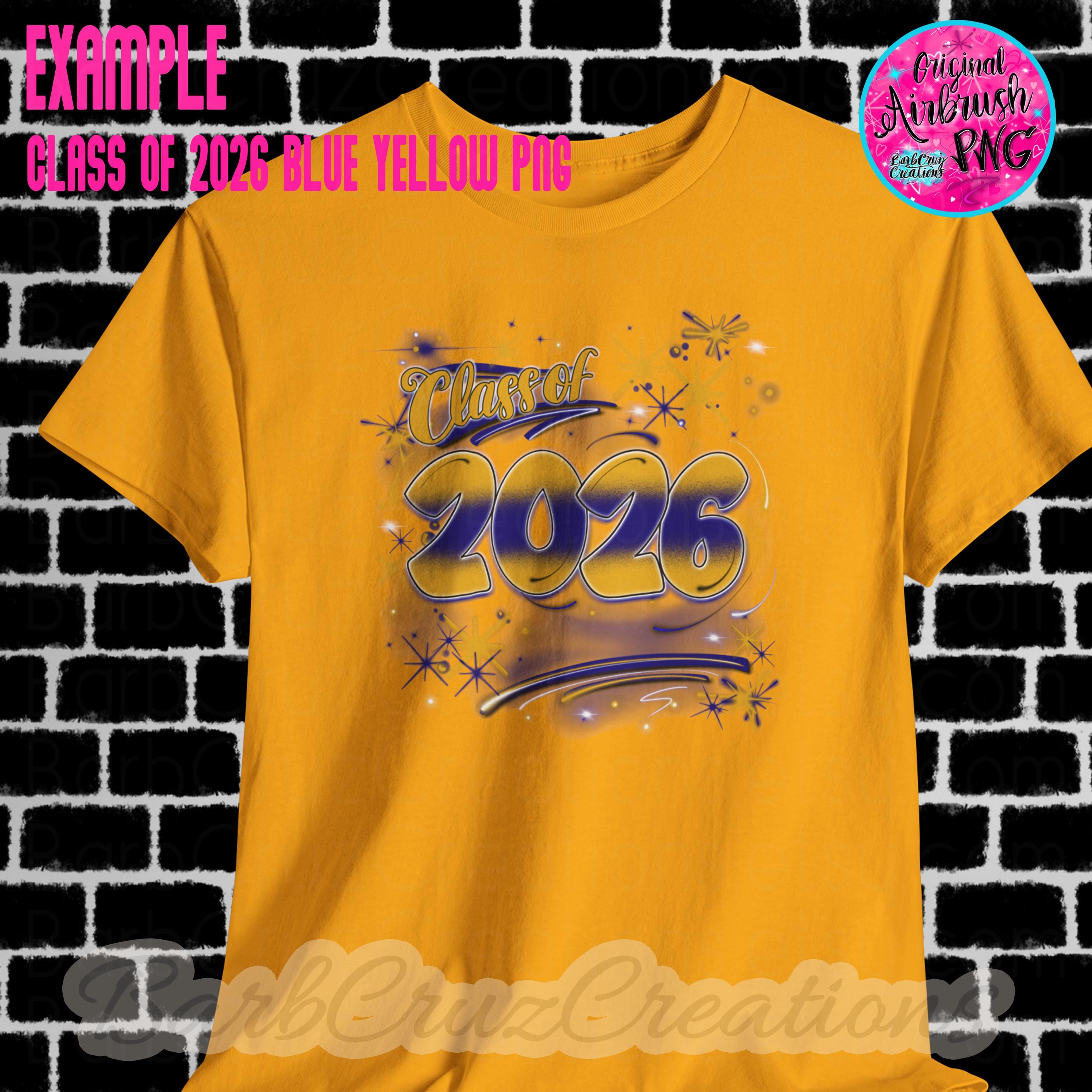 Airbrush png, Class of 2025, 2026 blue, yellow, Sublimation Design, Digital Download, Graffiti Shirt png, High School Senior, College, DTG