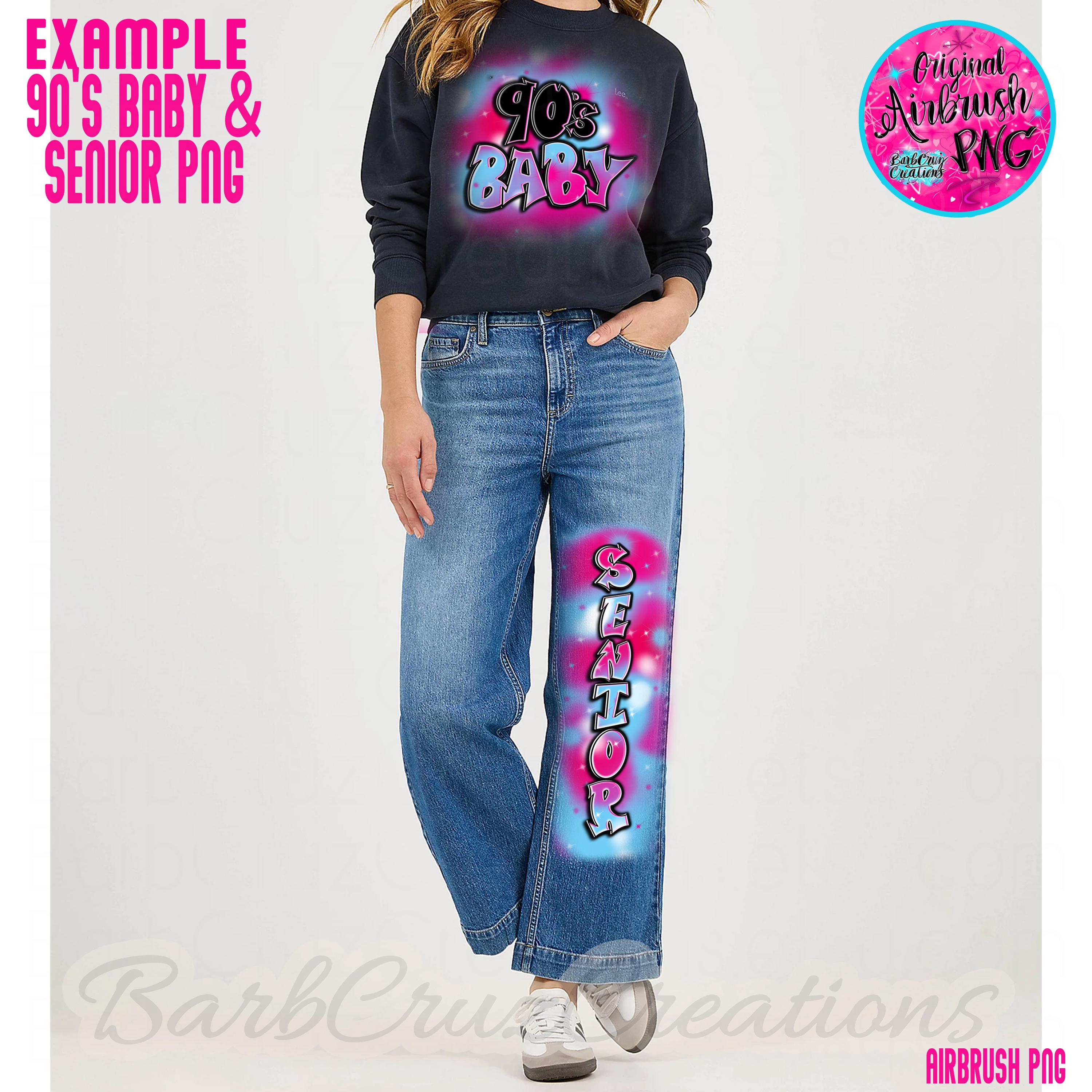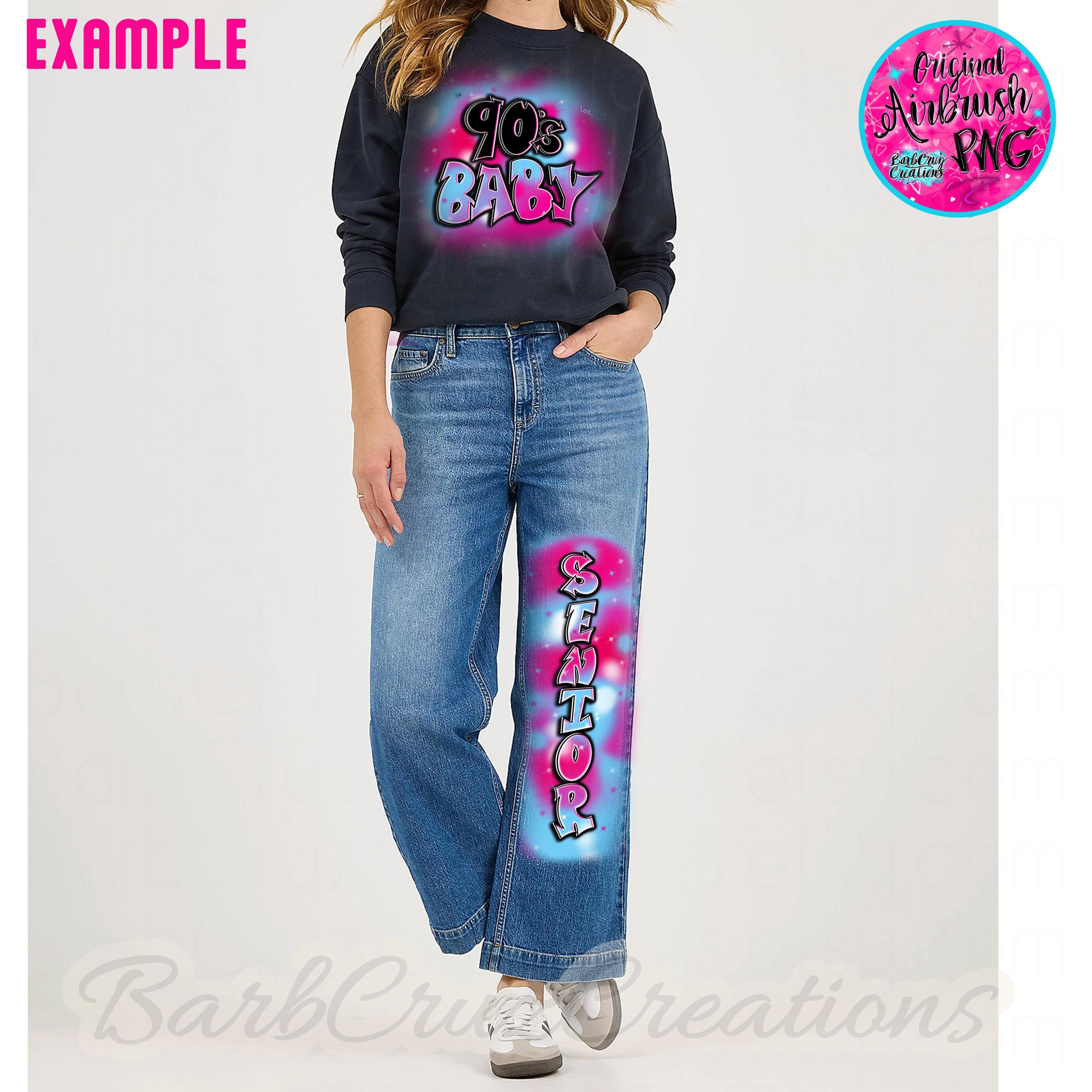 Grad, Graduate, Senior, 1990, 90's Baby, Class of, PNG, Airbrush png, Sublimation Designs, Graffiti, High School, College, pink, blue, pants