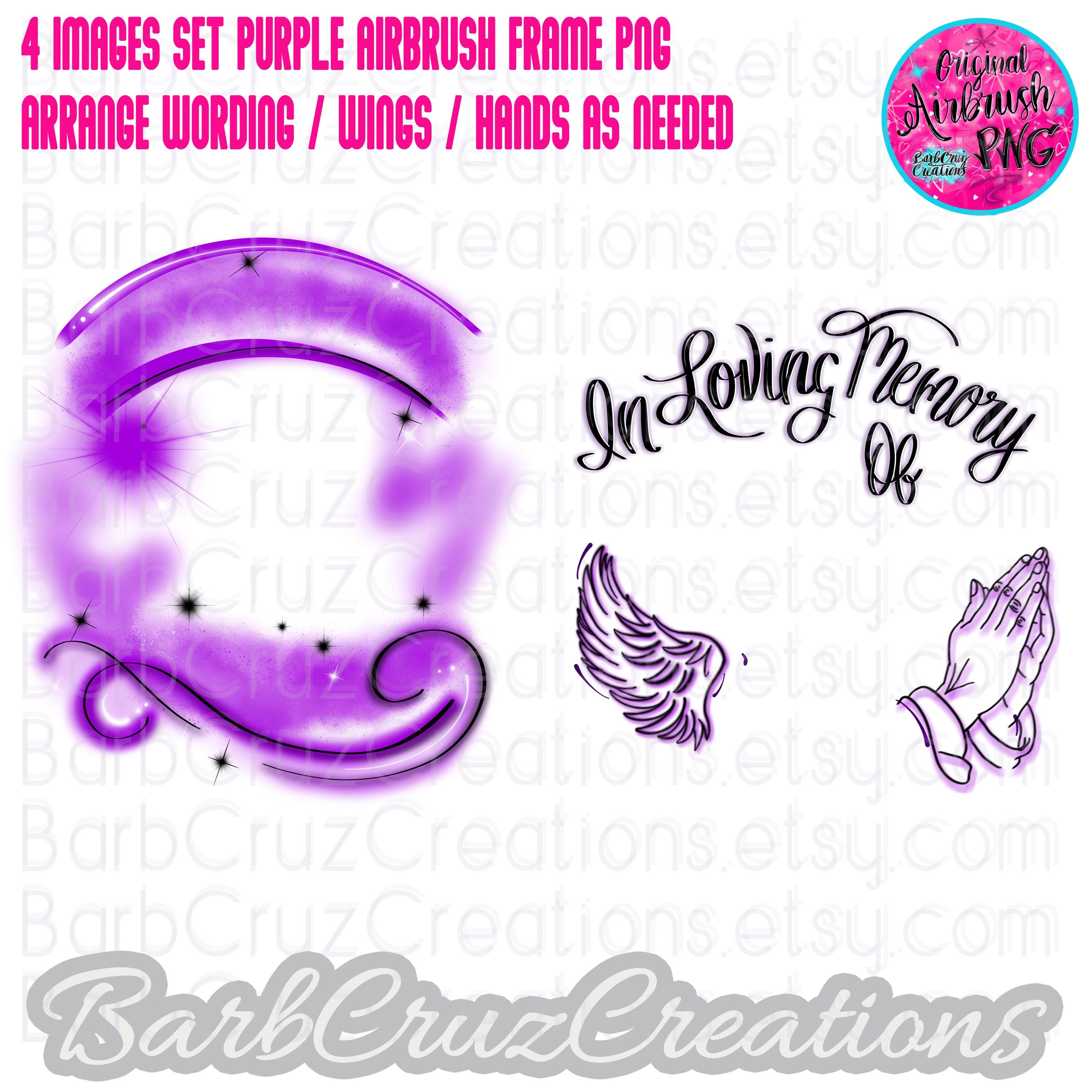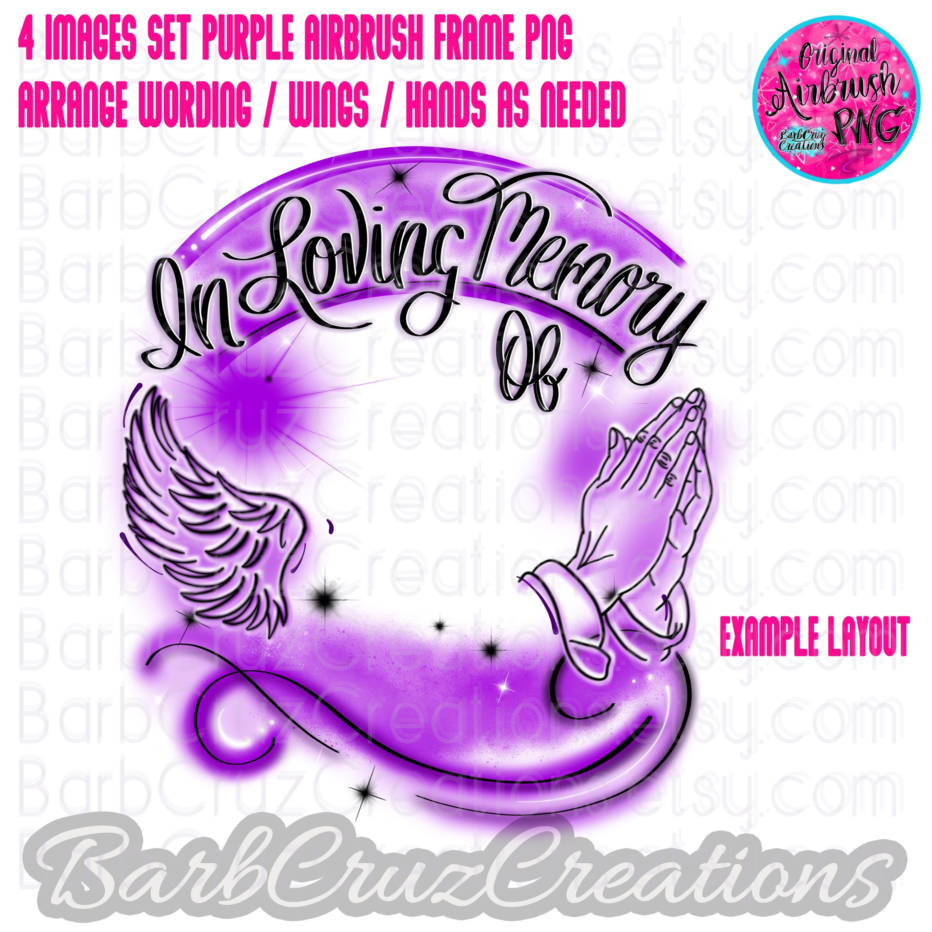 Airbrushed Purple Frame, Wing, Hands, In loving Memory of lettering png images included - arrange them as you desire. / examples are not included