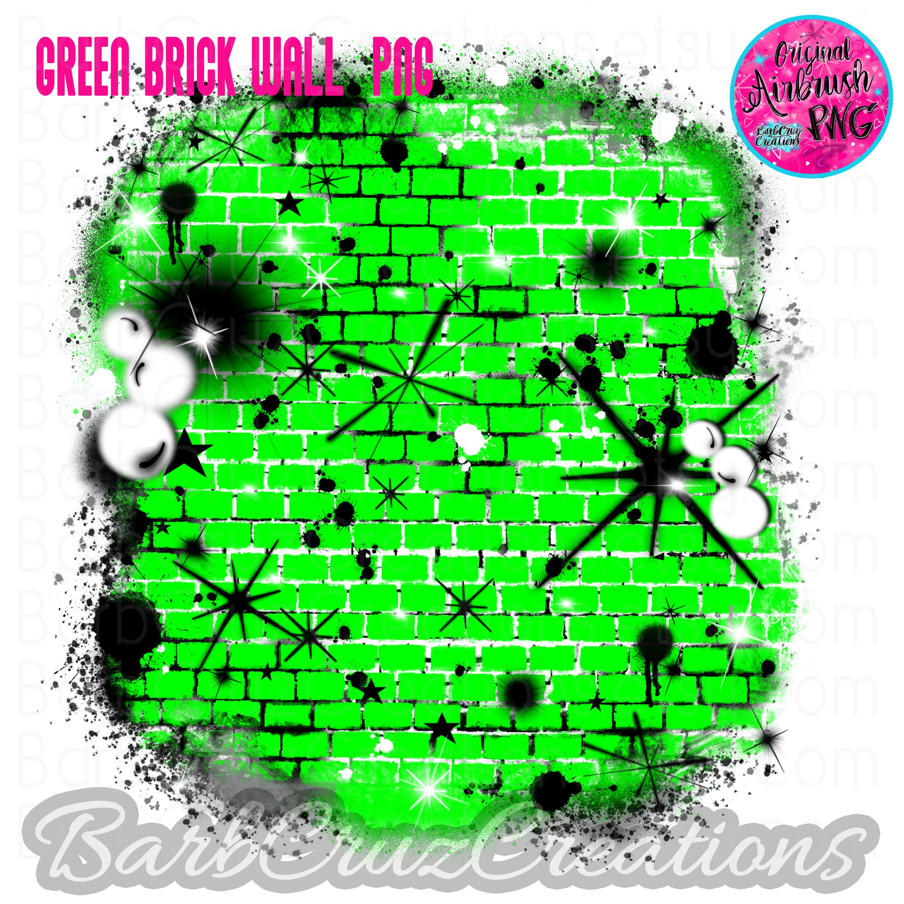 Airbrush Brick Wall Green Background PNG