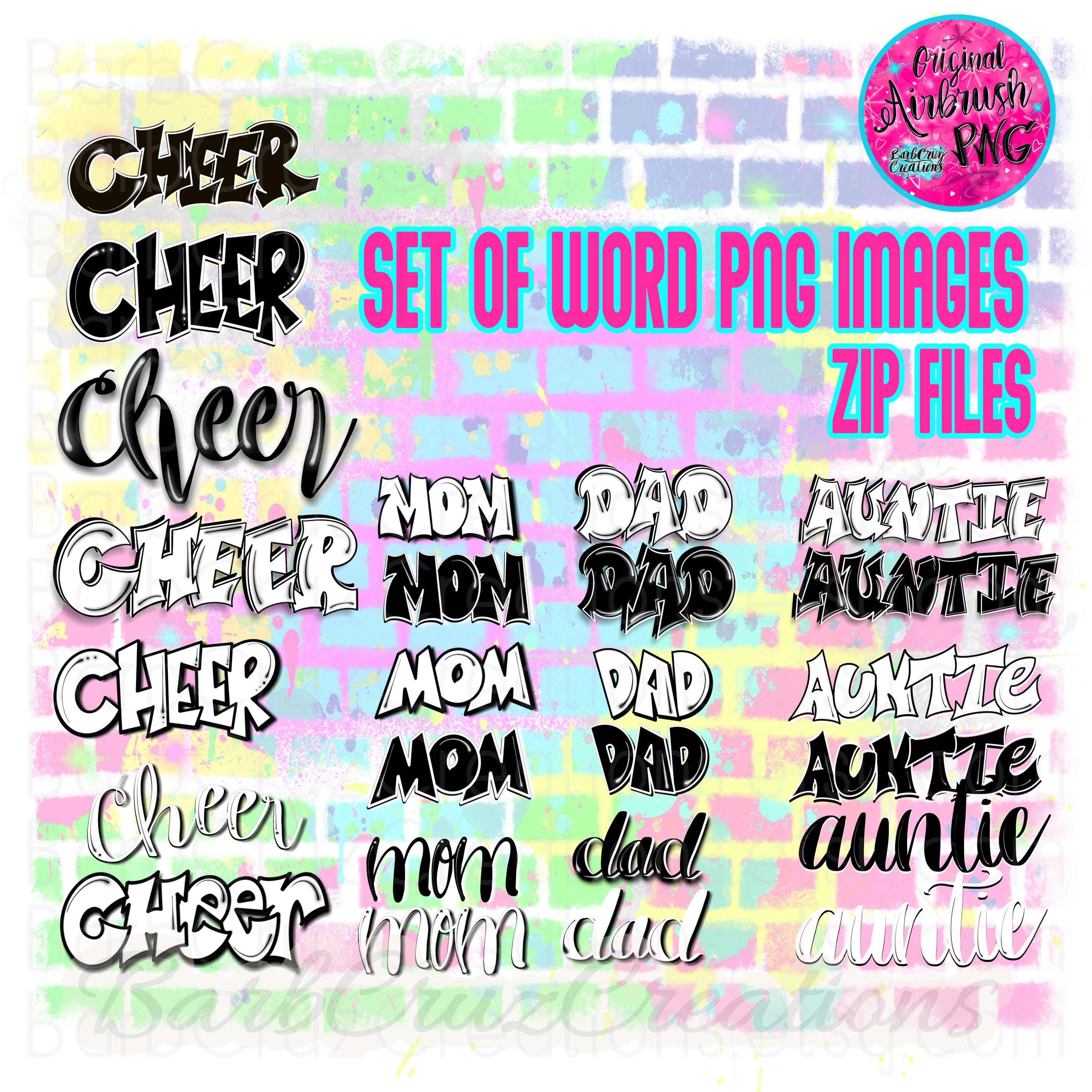 Cheer, Mom, Dad, & Auntie lettering / words only png images