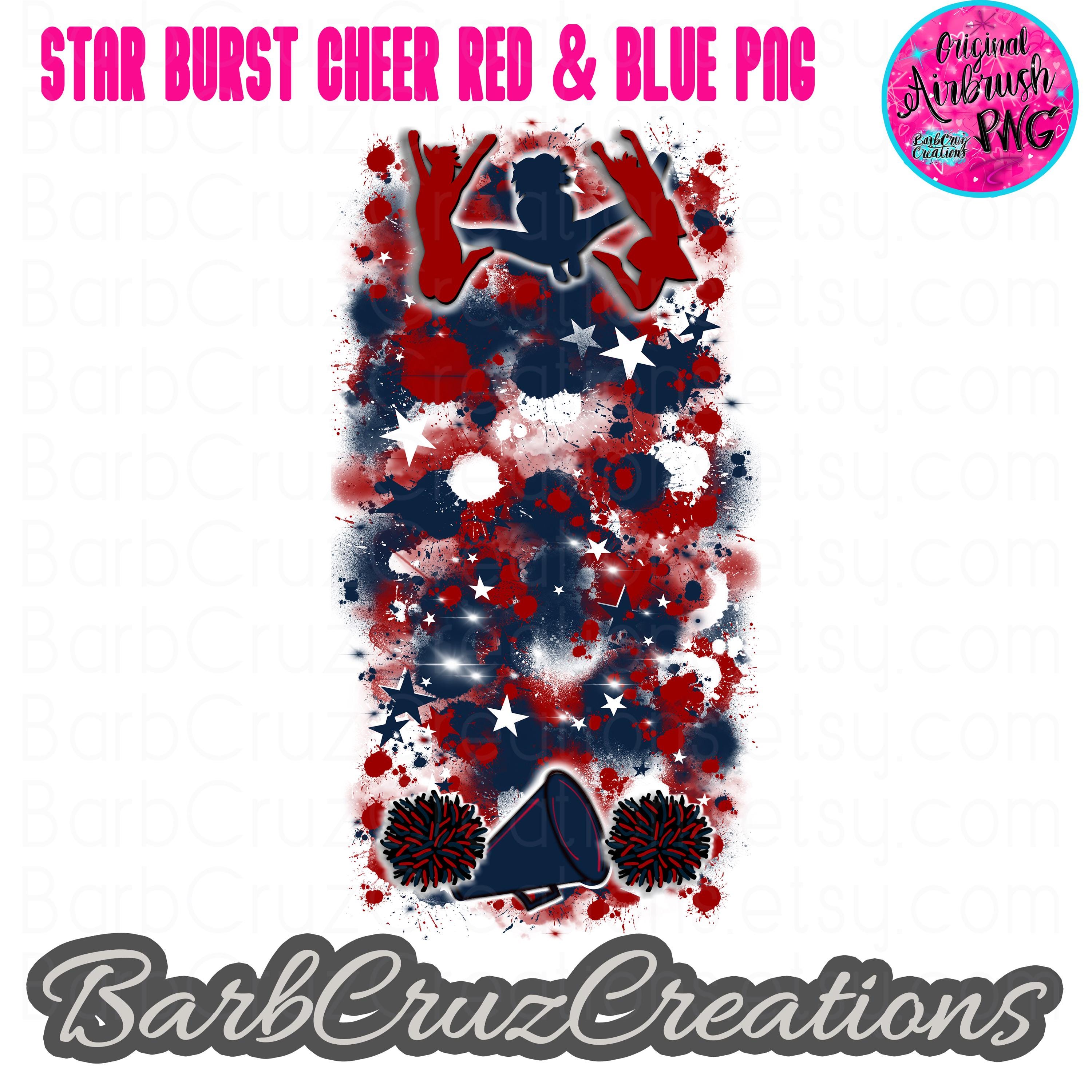 Airbrush Blue & Red LONG Star Burst png - examples not included
