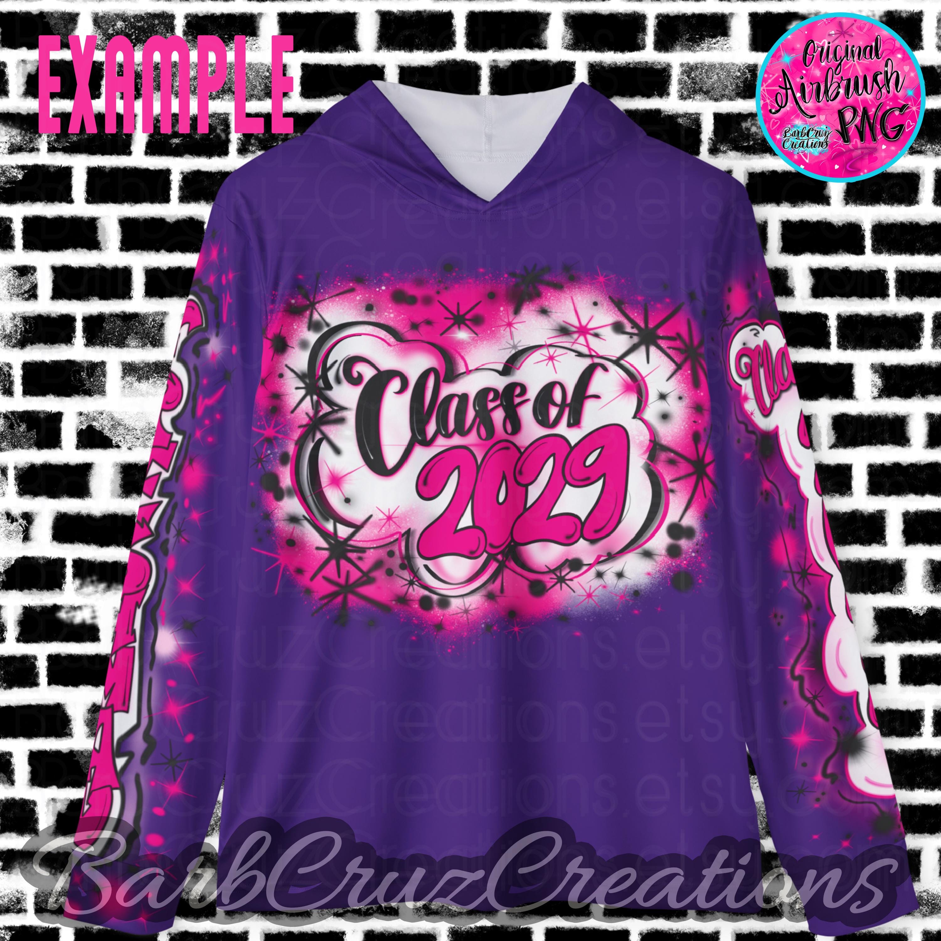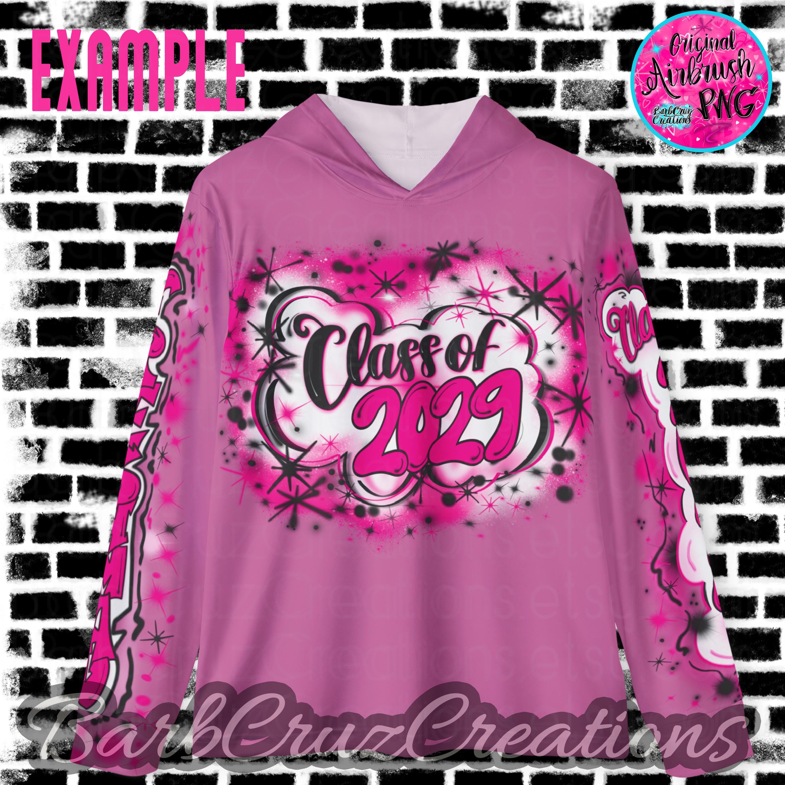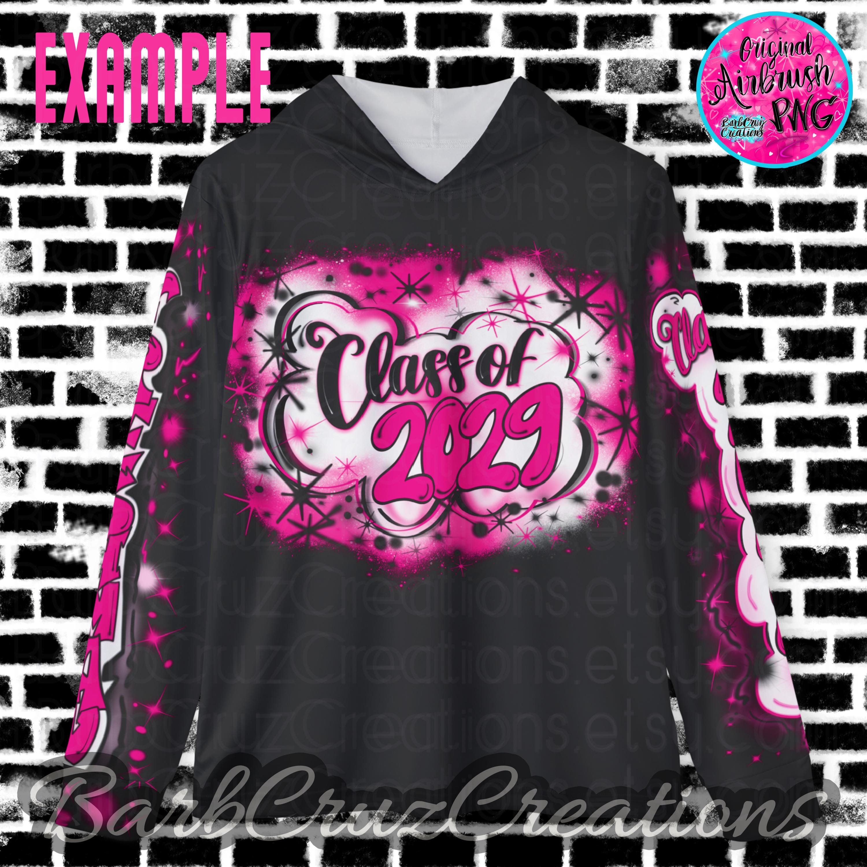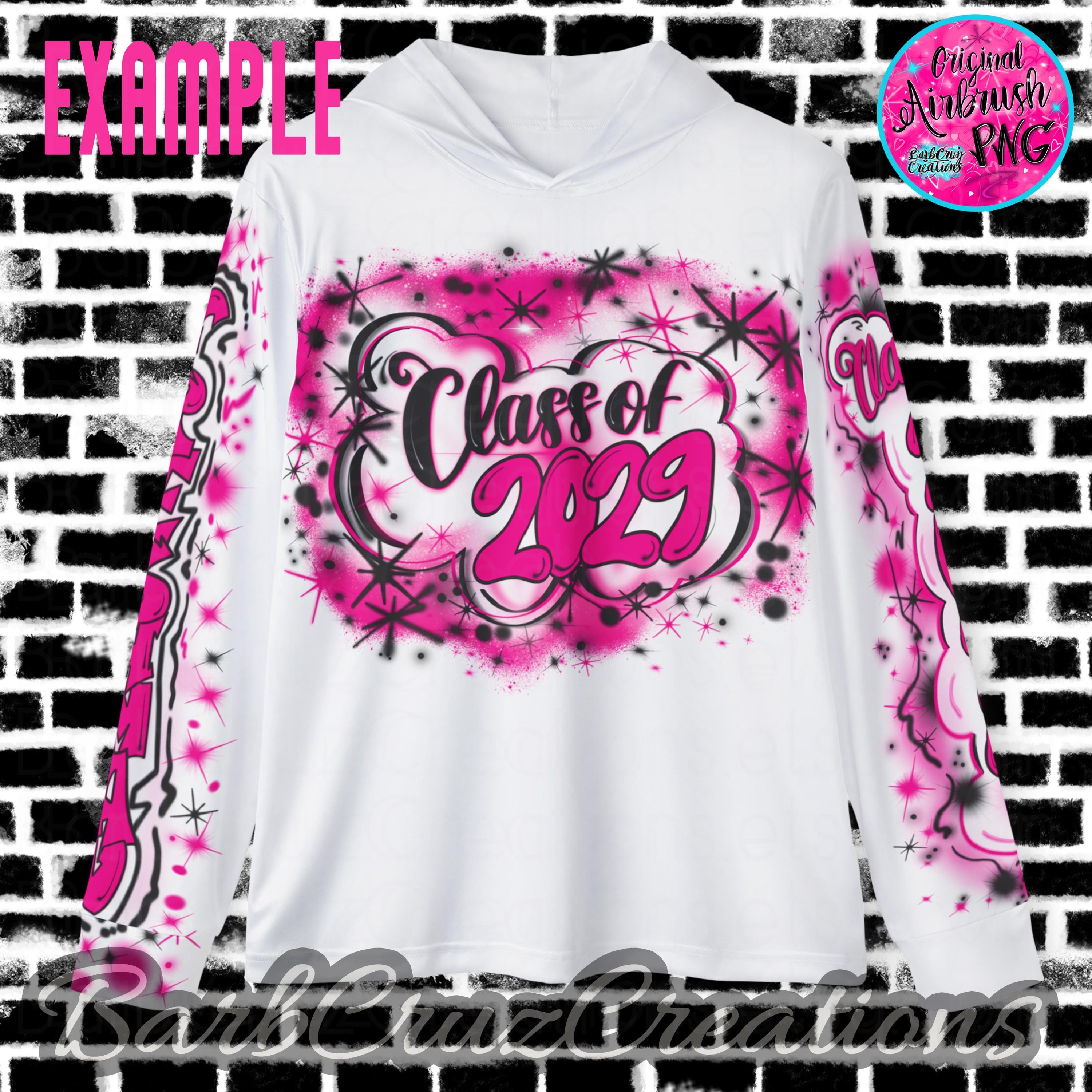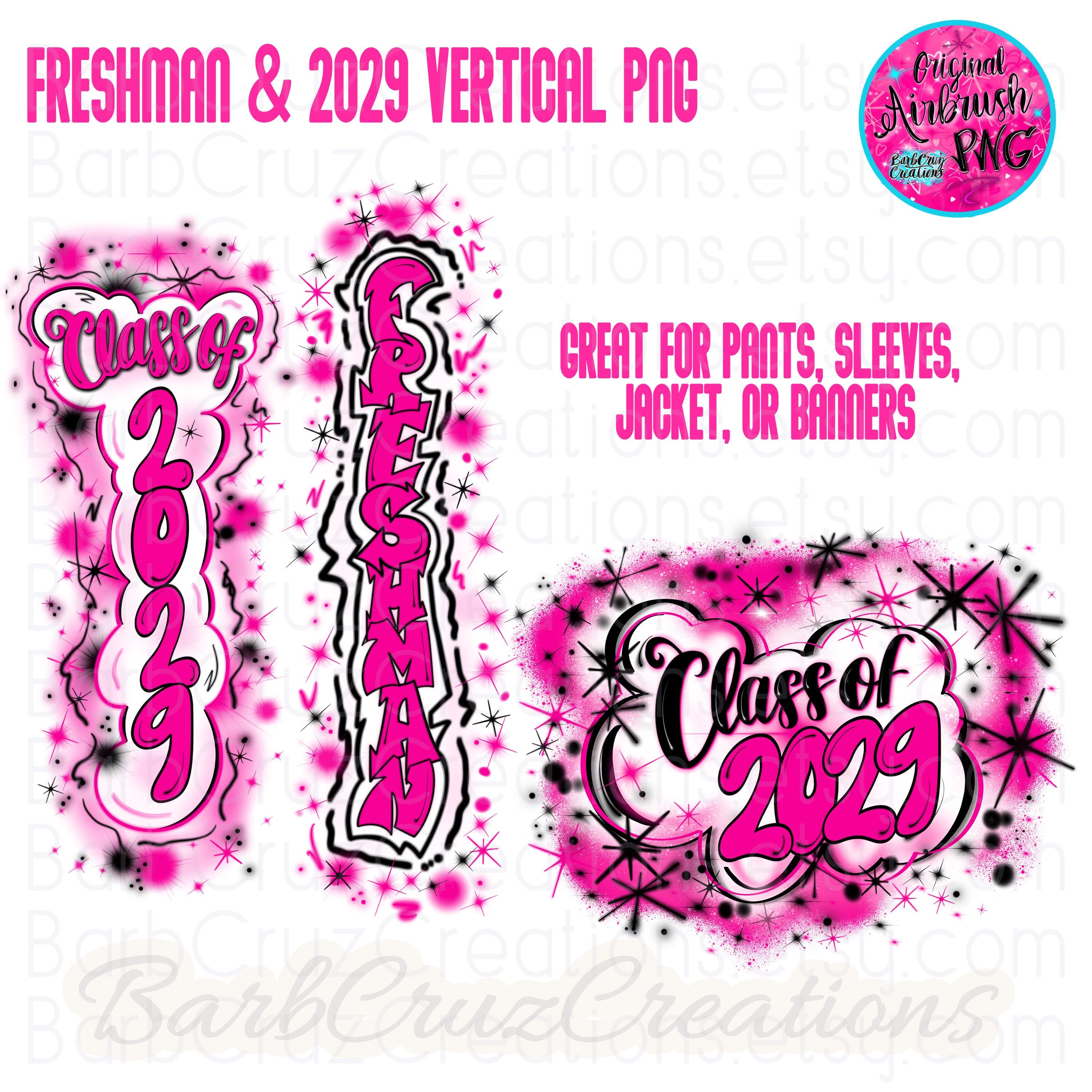 Airbrush png, Freshman, 2029, Graffiti, Class of, Heat Transfer, High School Senior, College Senior, pink, pant leg, sleeves design vertical
