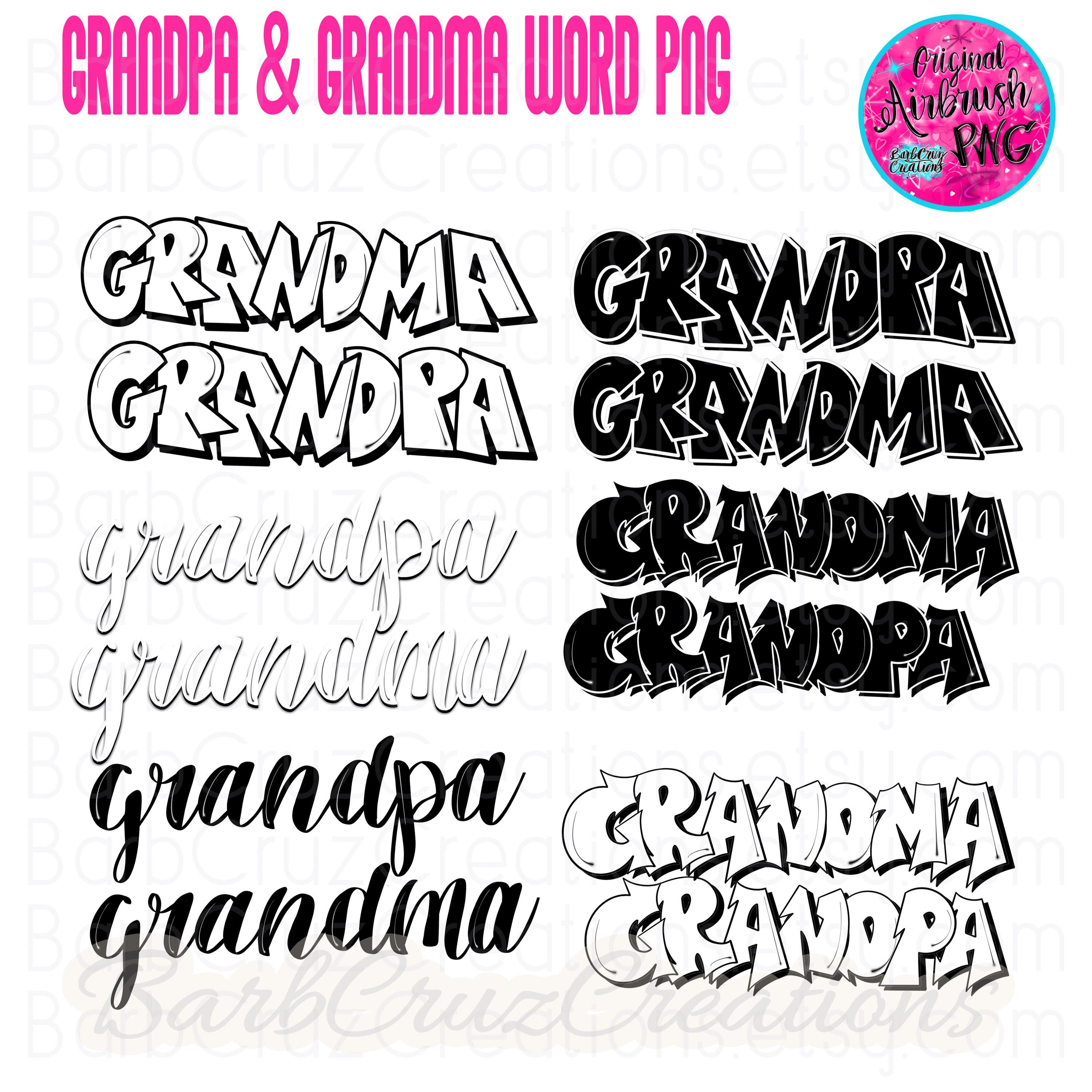 Grandpa, Grandma, Lettering, png, Graffiti word images, Lettering for Invitations, cards, Sublimation Design, Add to background, clipart
