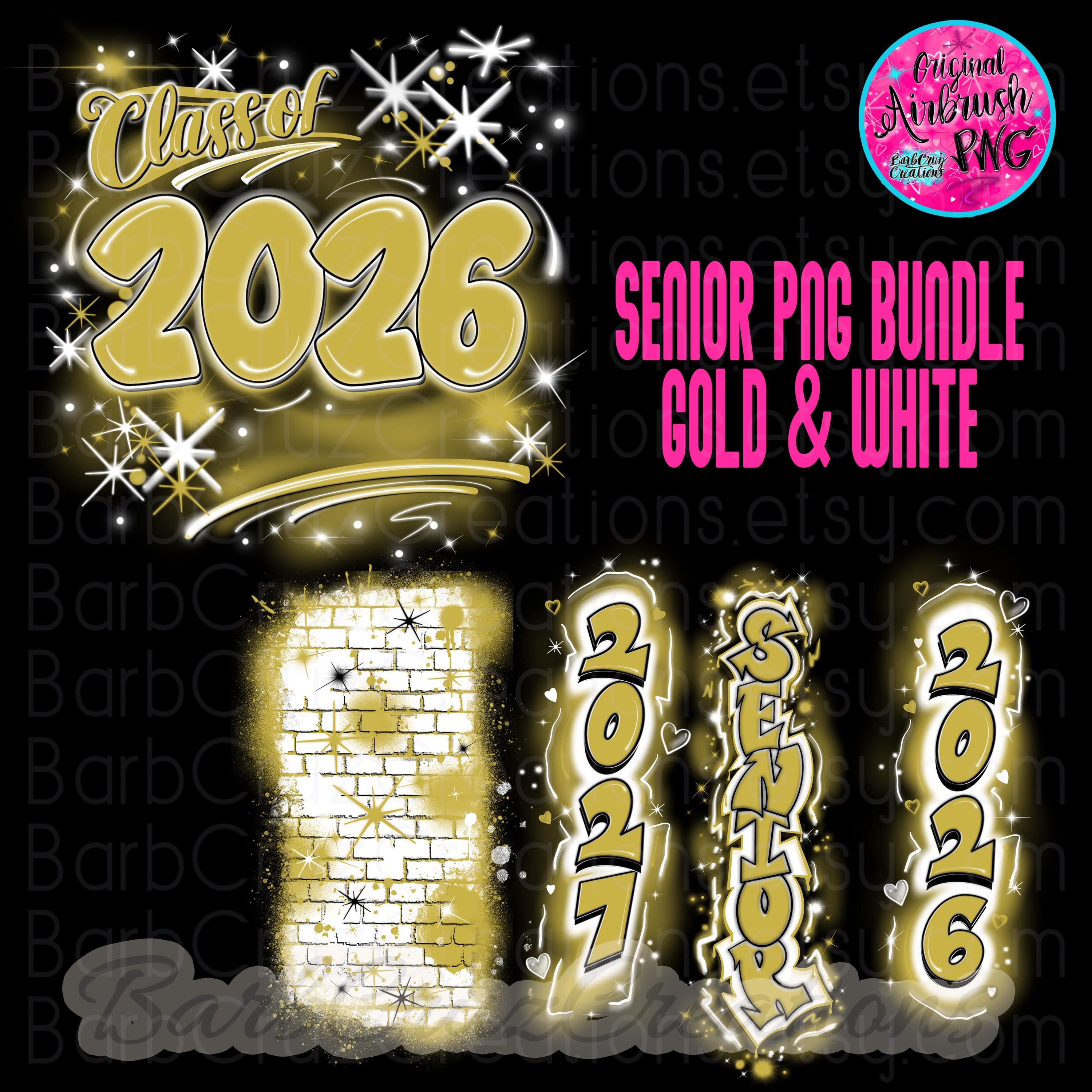 Airbrush png, Senior, Class of 2026, Graffiti designs, Heat Transfer, High School Senior, College, gold, pant leg, sleeve design vertical