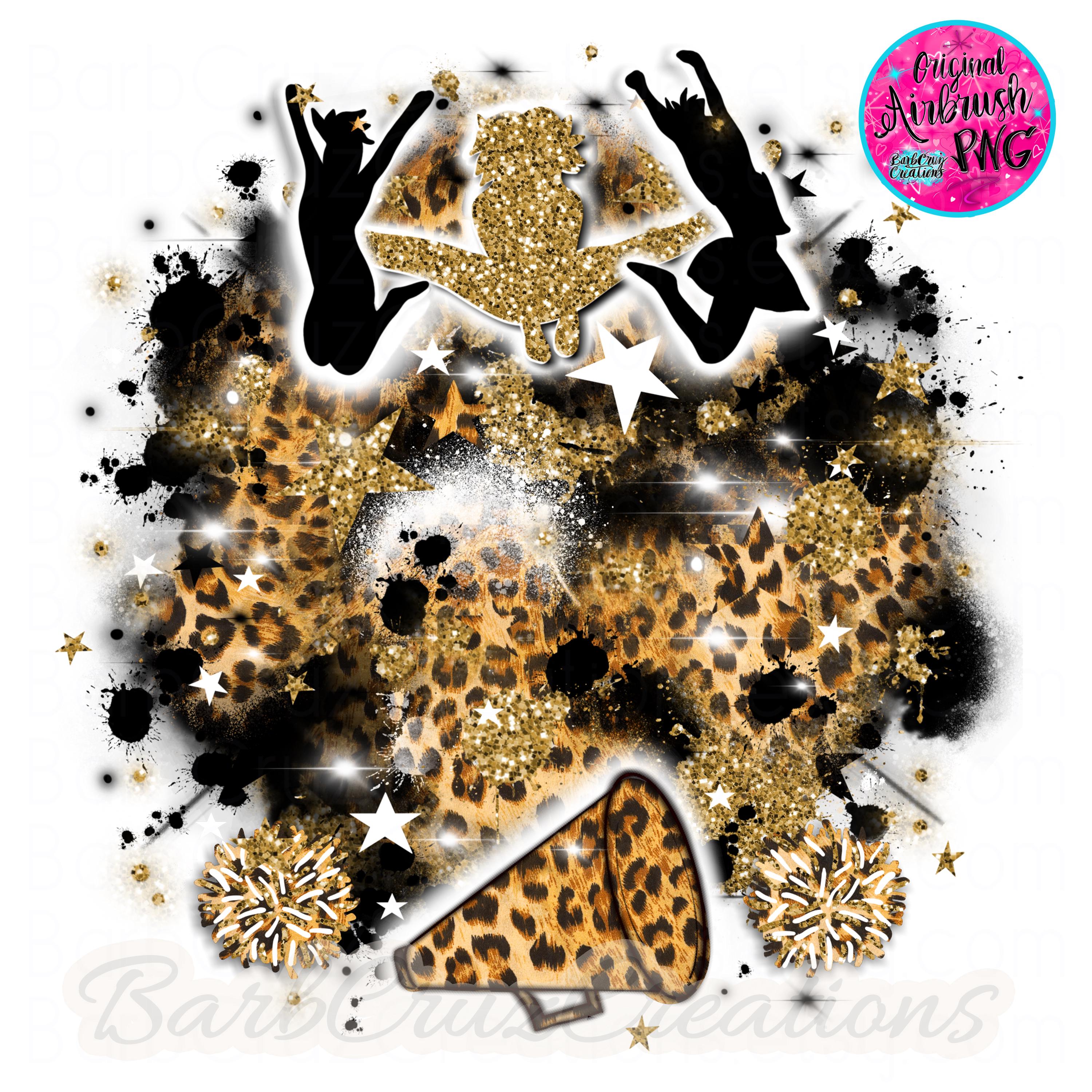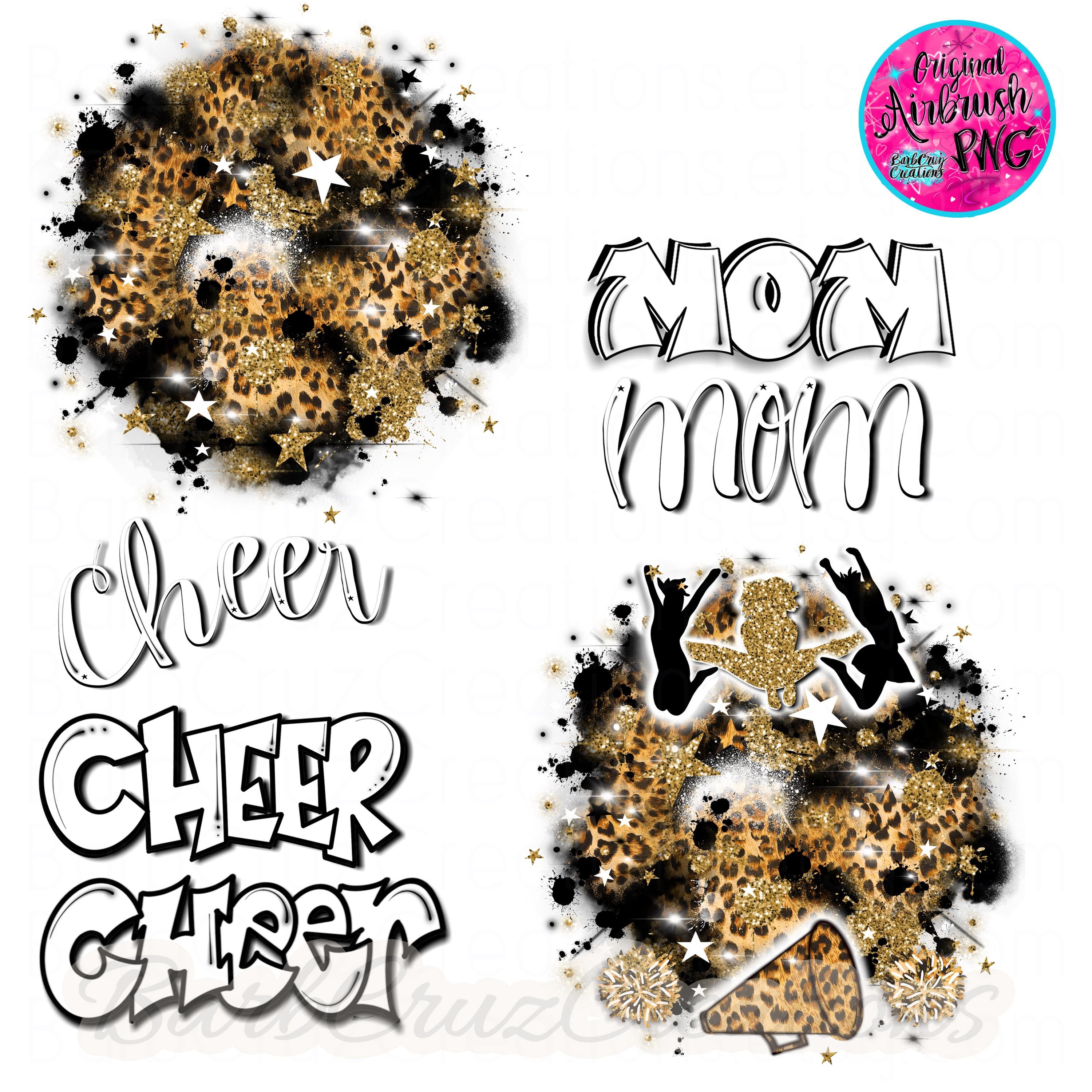 Leopard Print, Cheer, mom, Cheerleader, designs, Cheer Shirt, Cheer Team shirt, Sports Team Airbrush, Airbrush png, Sublimation Design, gold