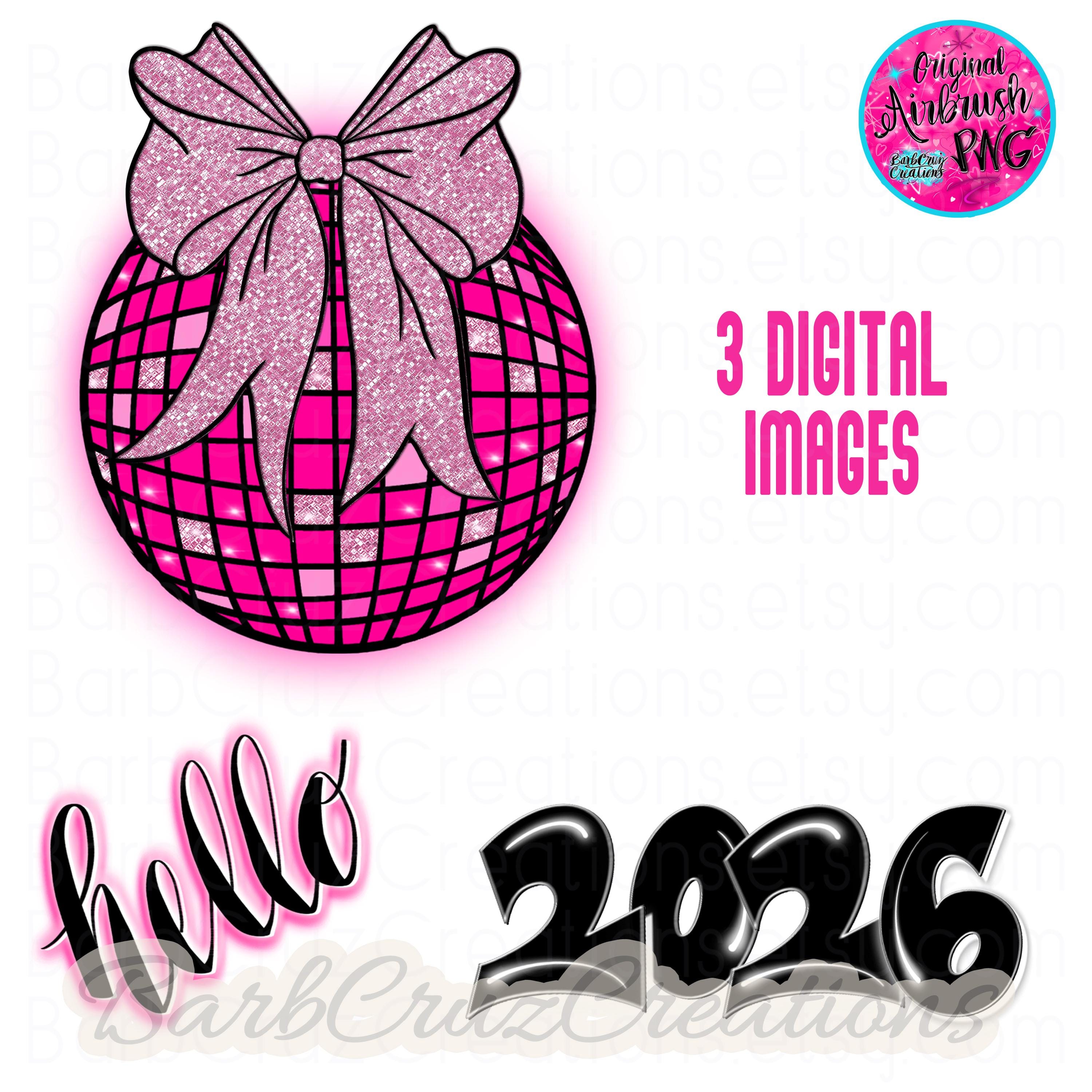 Airbrush Pink 2026, 2025 disco ball png & with background 4 images