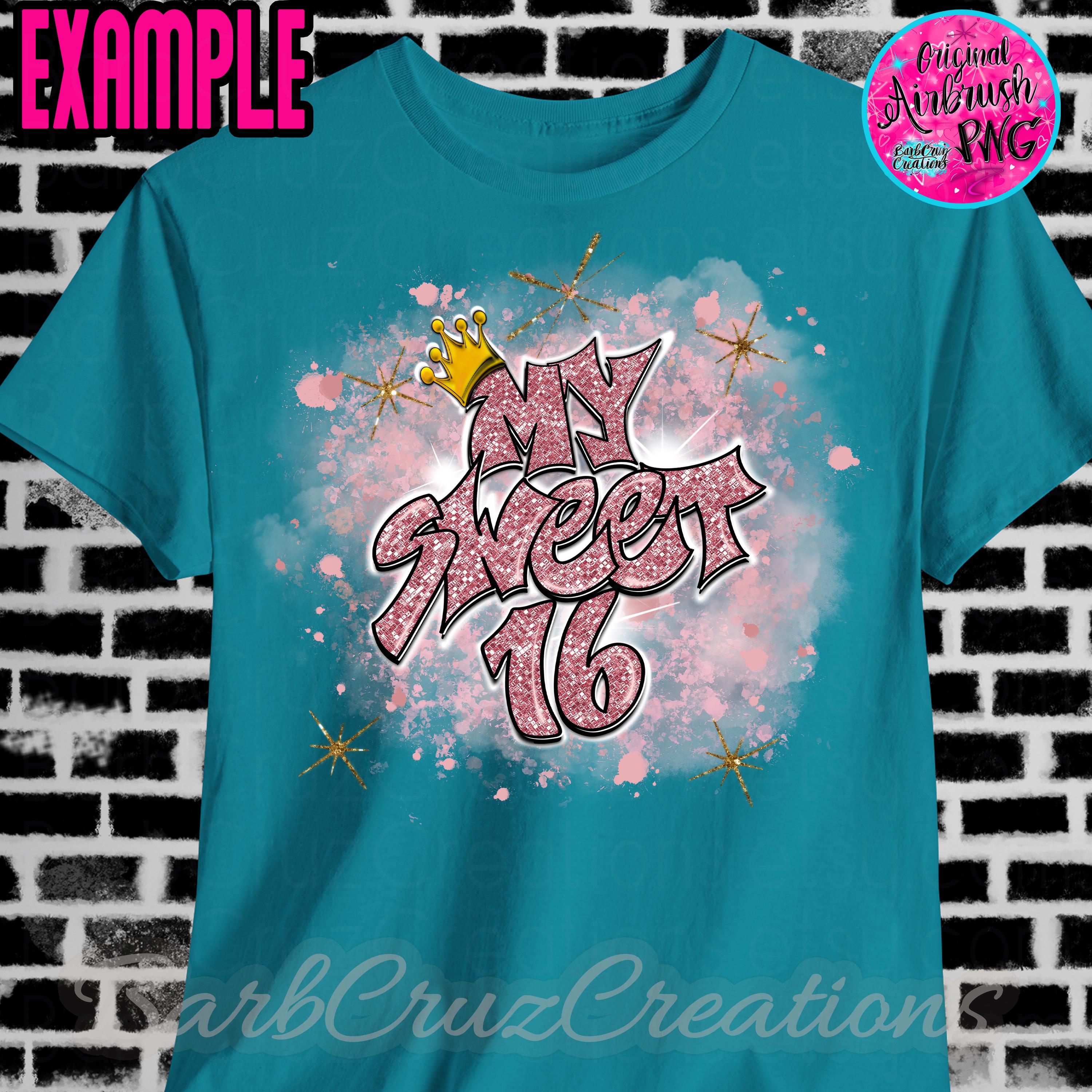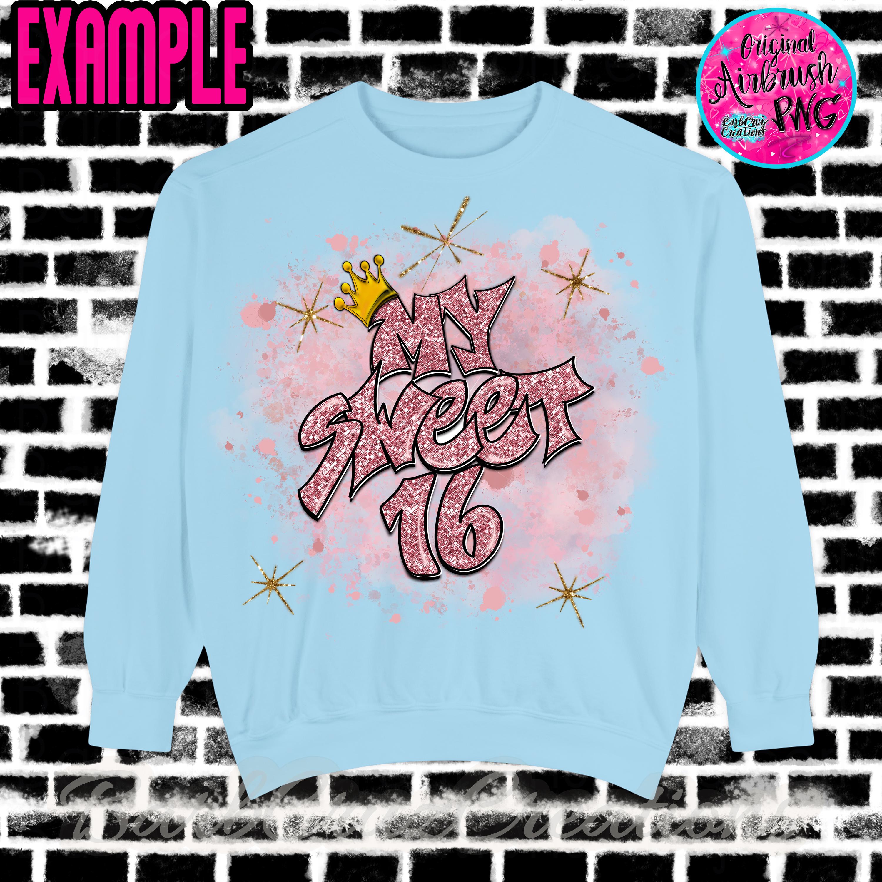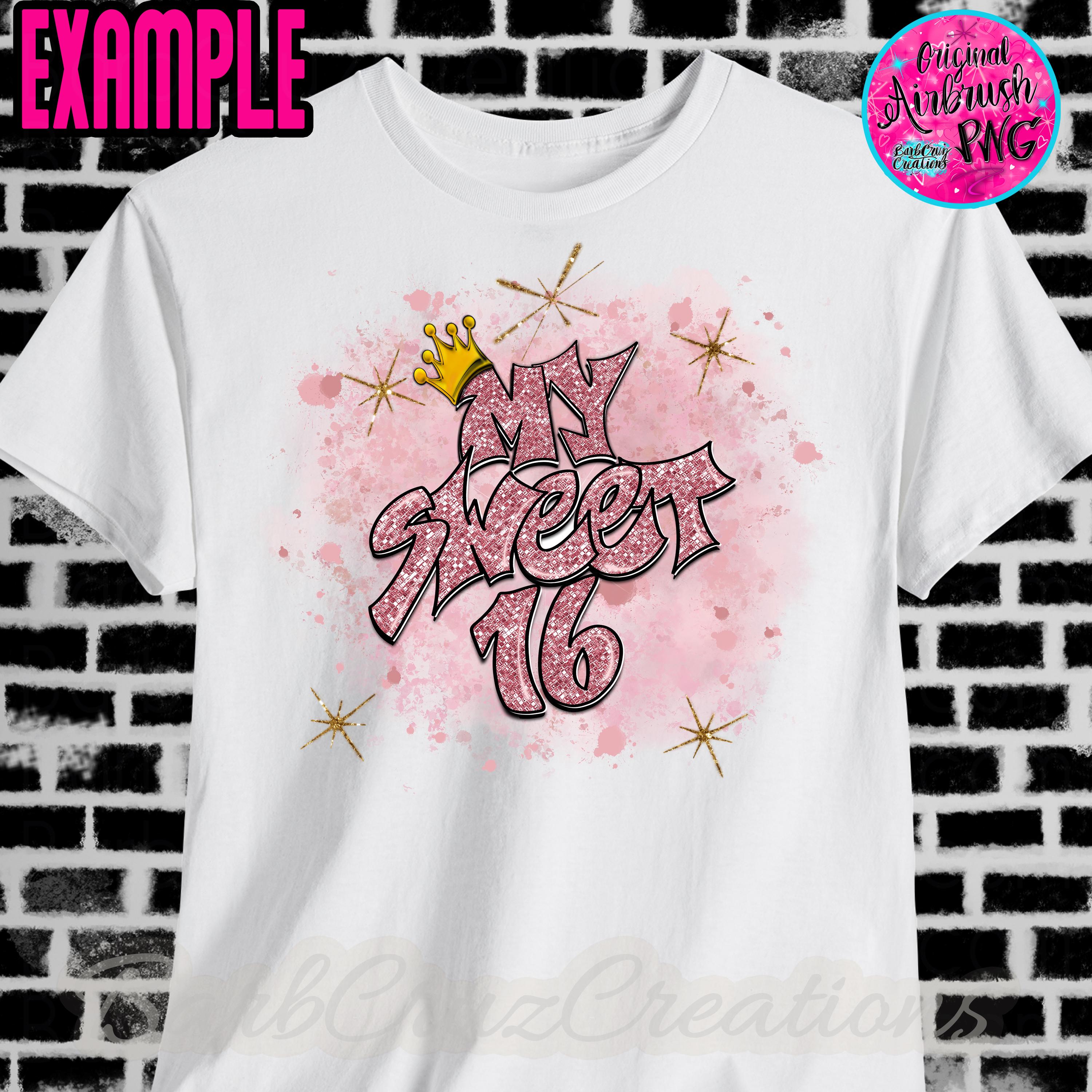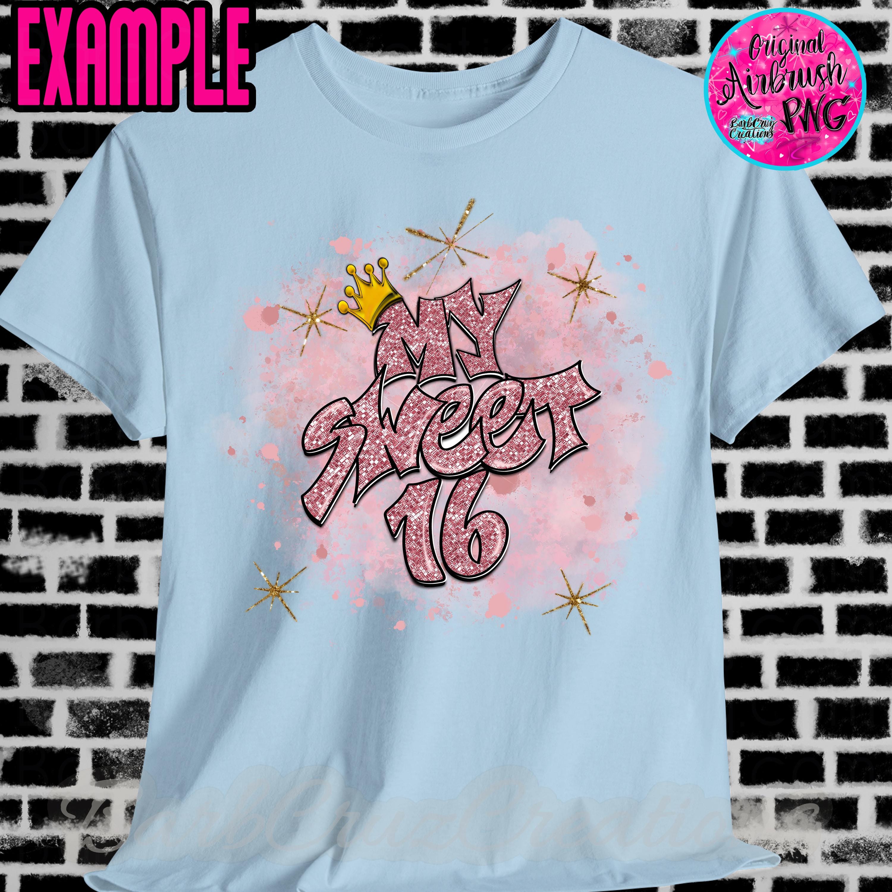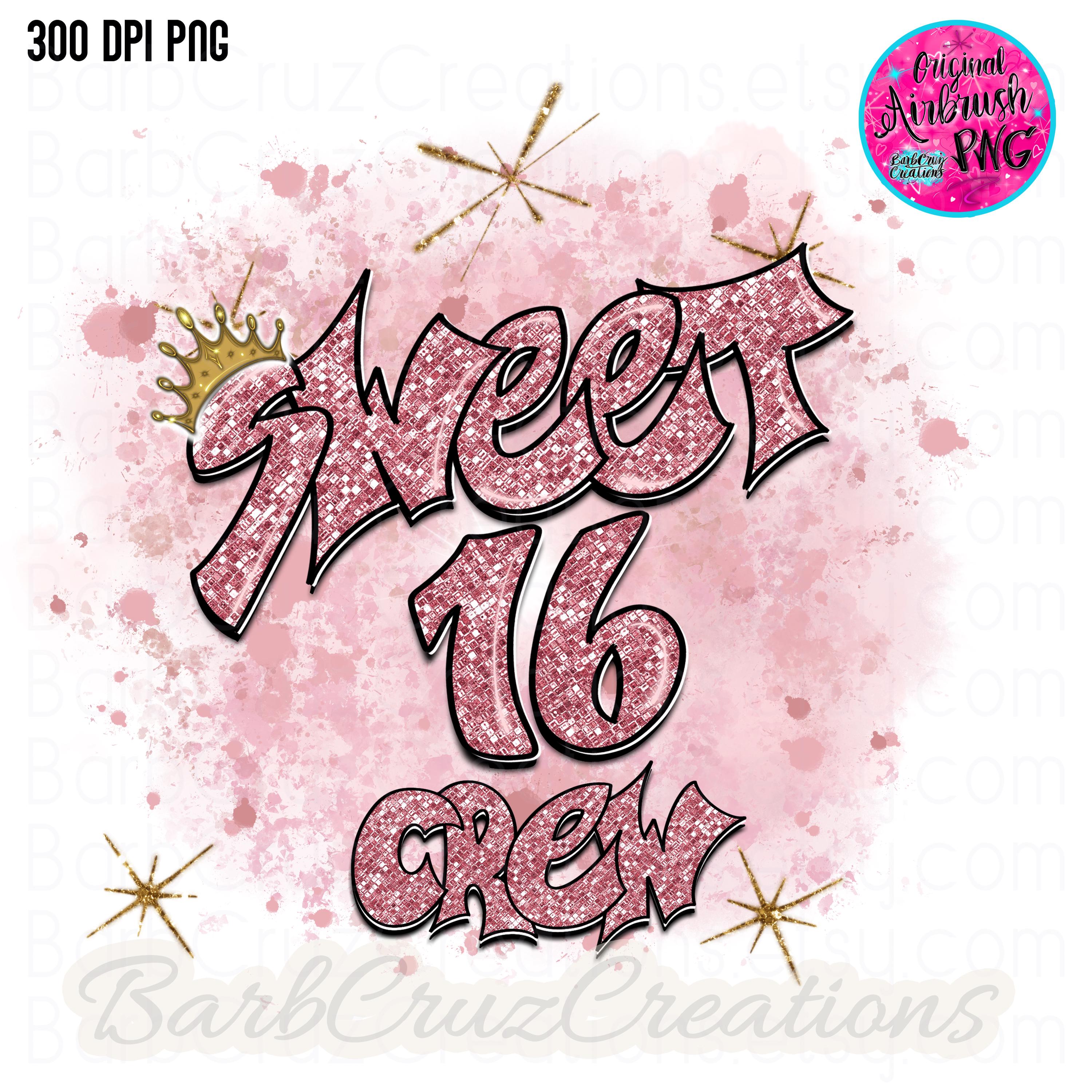 Pink My Sweet 16 Birthday Image, Sixteen bday, crown, Rose Gold, Birthday Crew, Airbrush png, Party, Sublimation Designs, Digital Downloads,