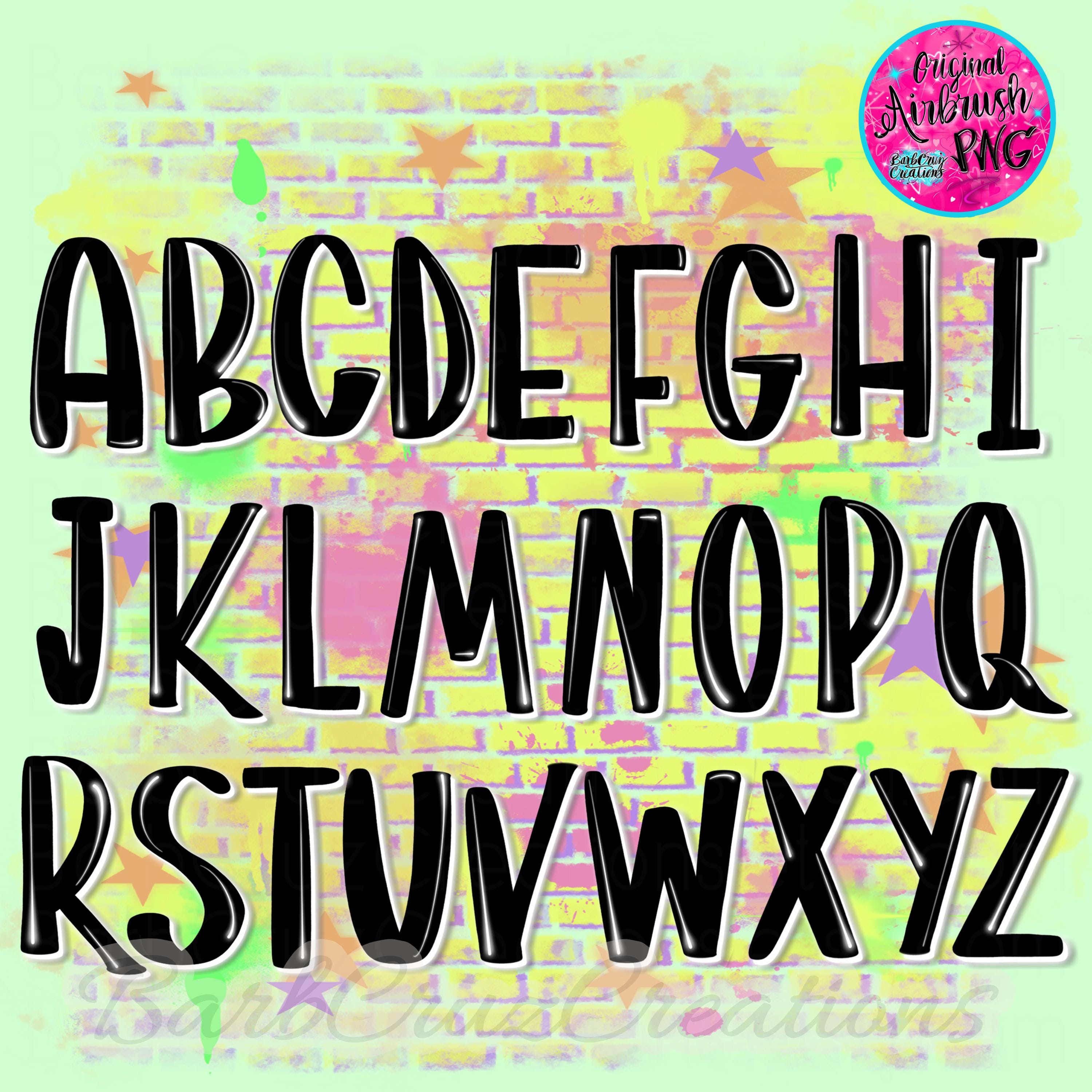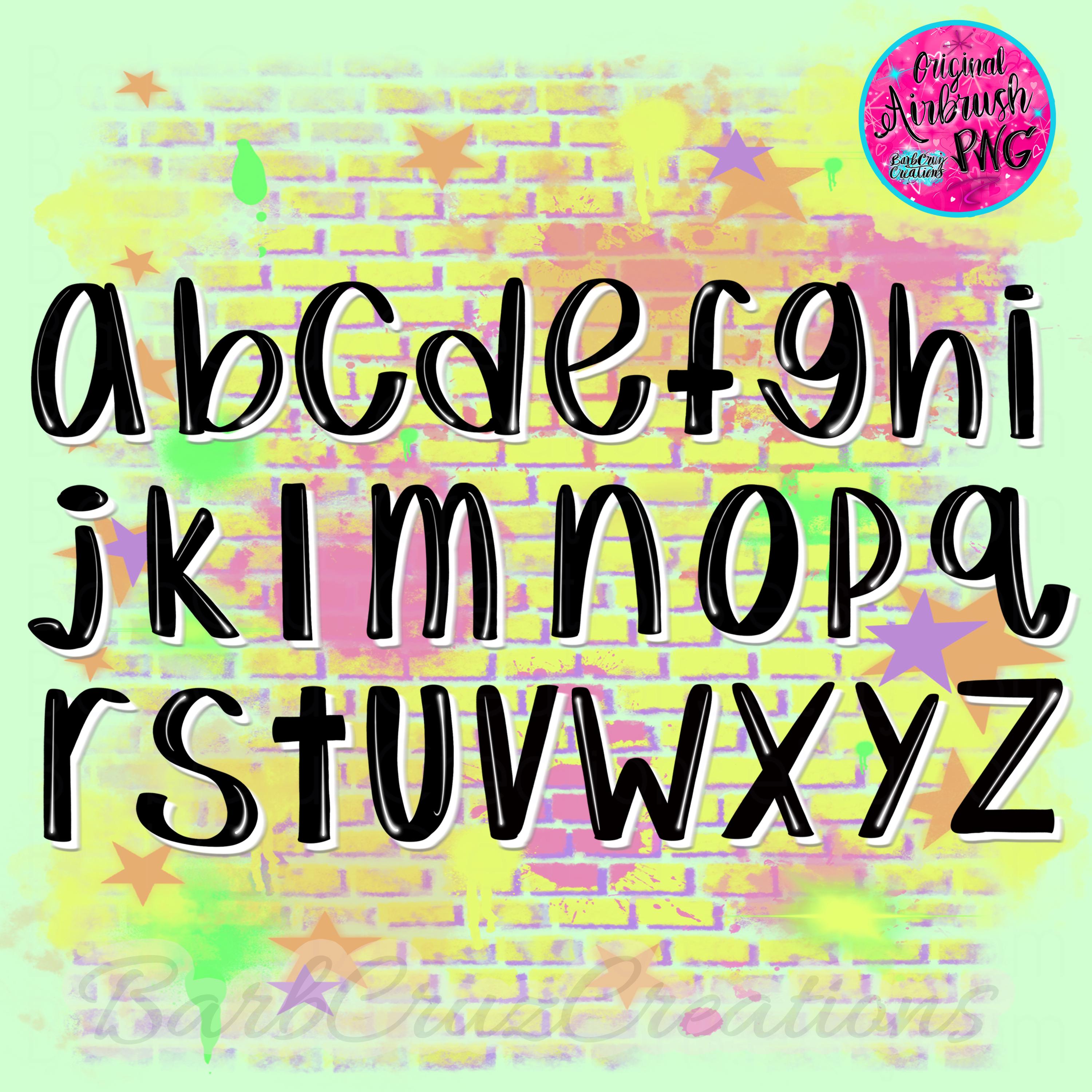 Lower Case Lettter, Graffiti Letter, Alphabet, Black Airbrush Font, Sublimation Design, Digital Download, png, clipart, zip file, bundle