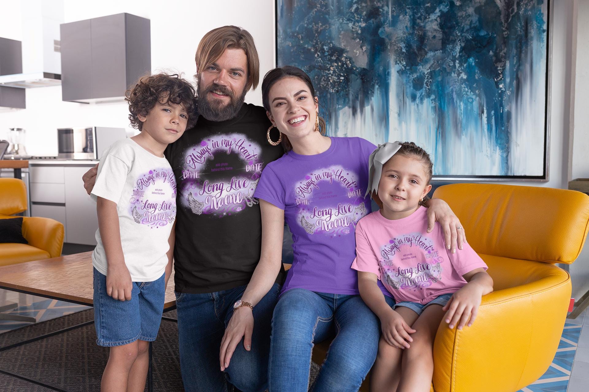 This digital downloads image is made for you to customize the image yourself by adding name & dates AND inserting a picture in the center using your own design programs. OR you can pay an additional fee to have me add the name, date, and photo. Please message me if you'd like to pay the additional fee and I can customize it for you.