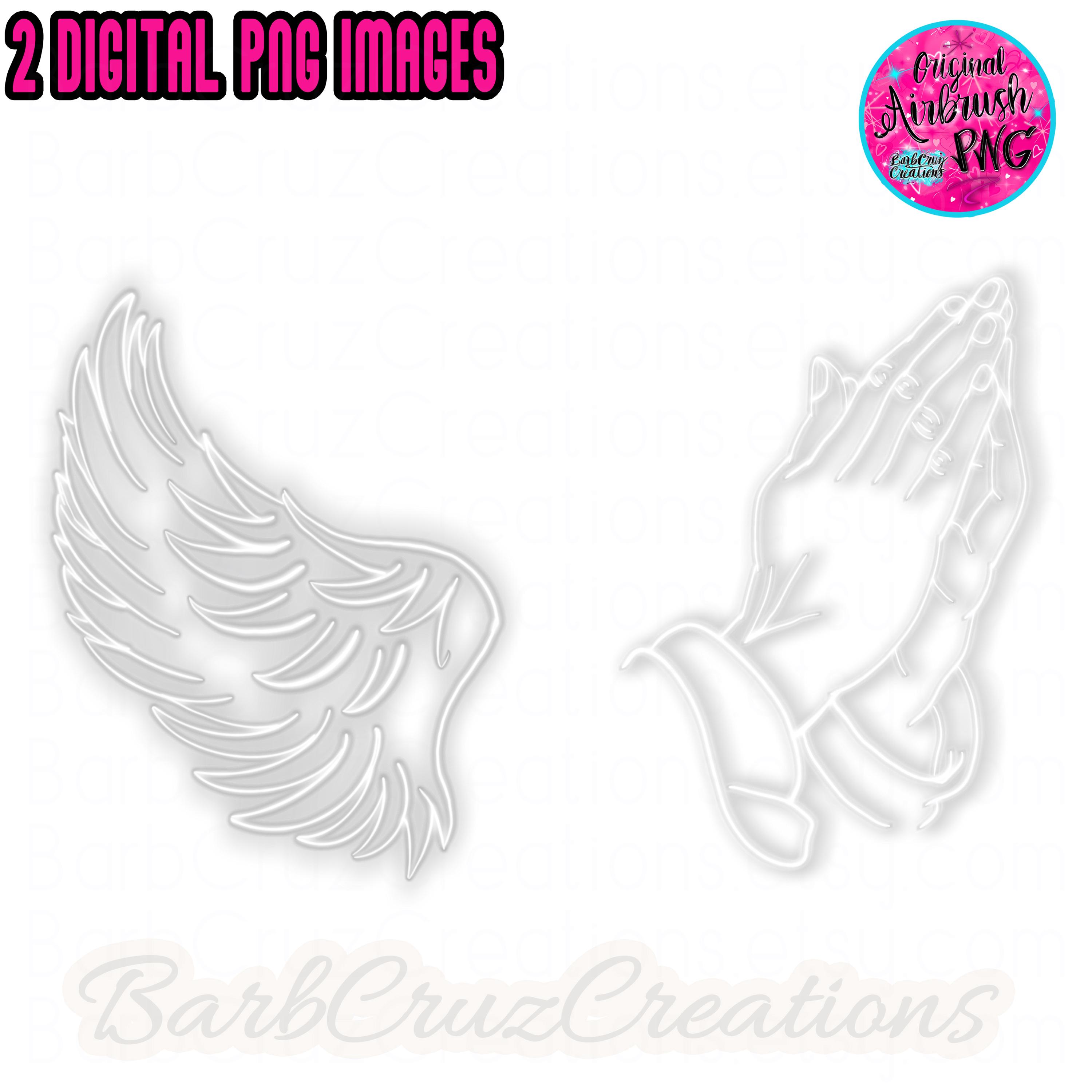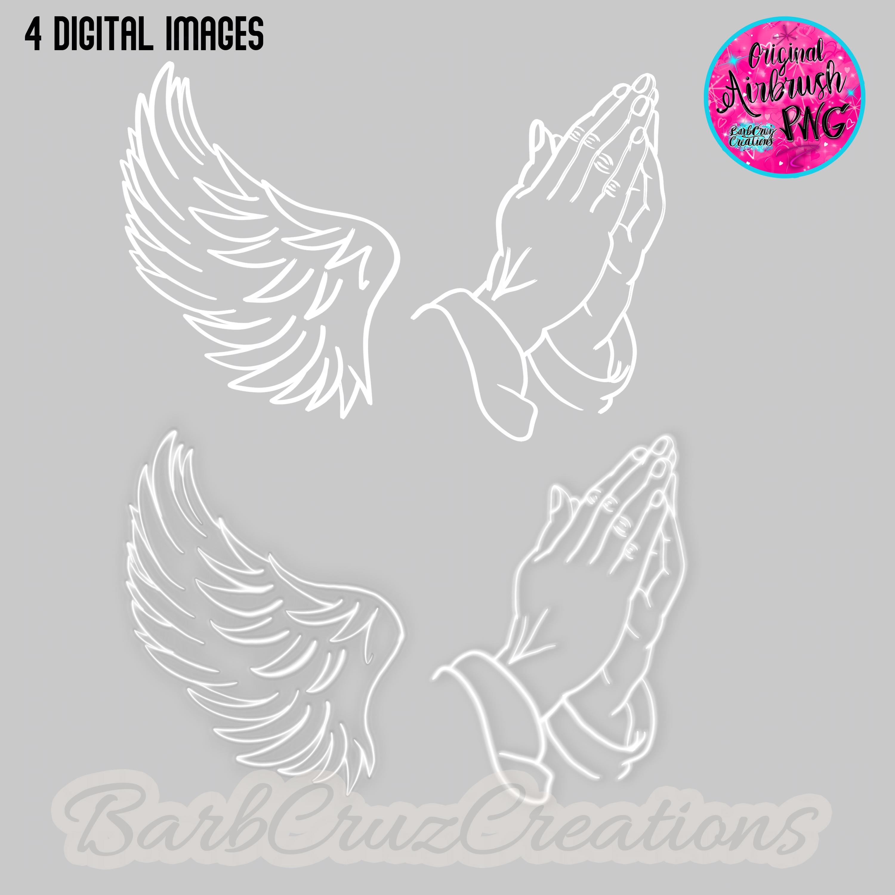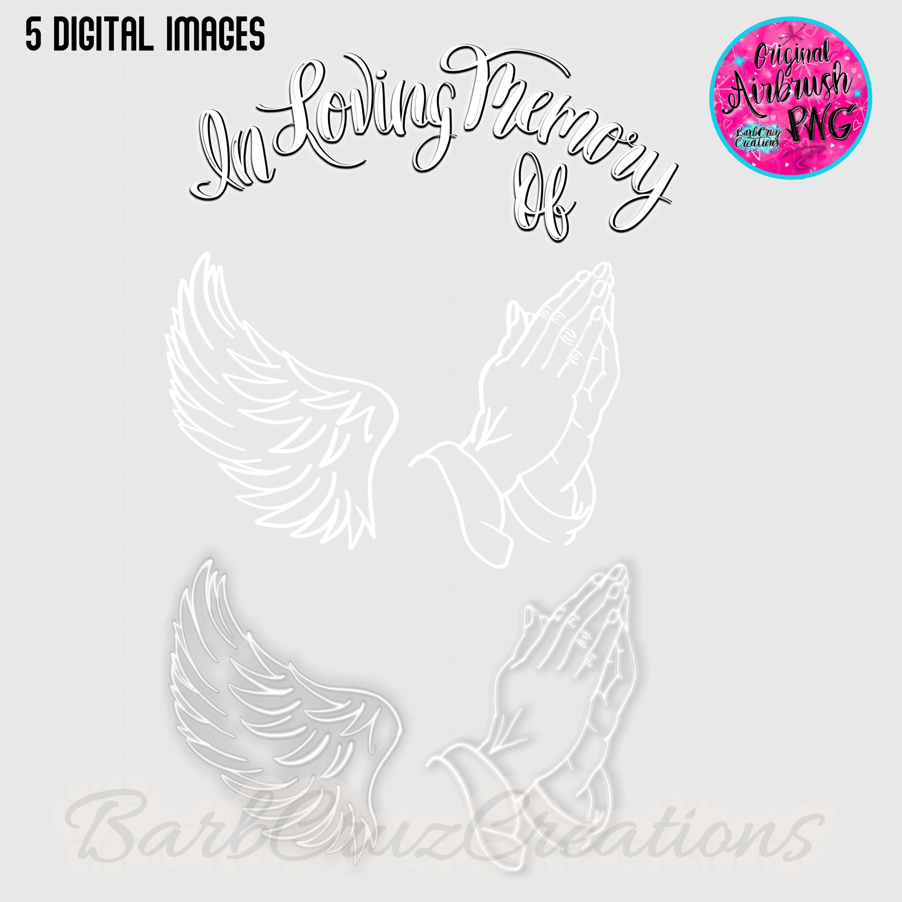 Airbrush png, In loving Memory of, White wing and praying hands images, Sublimation Designs, Digital, RIP, Memorial Shirt design